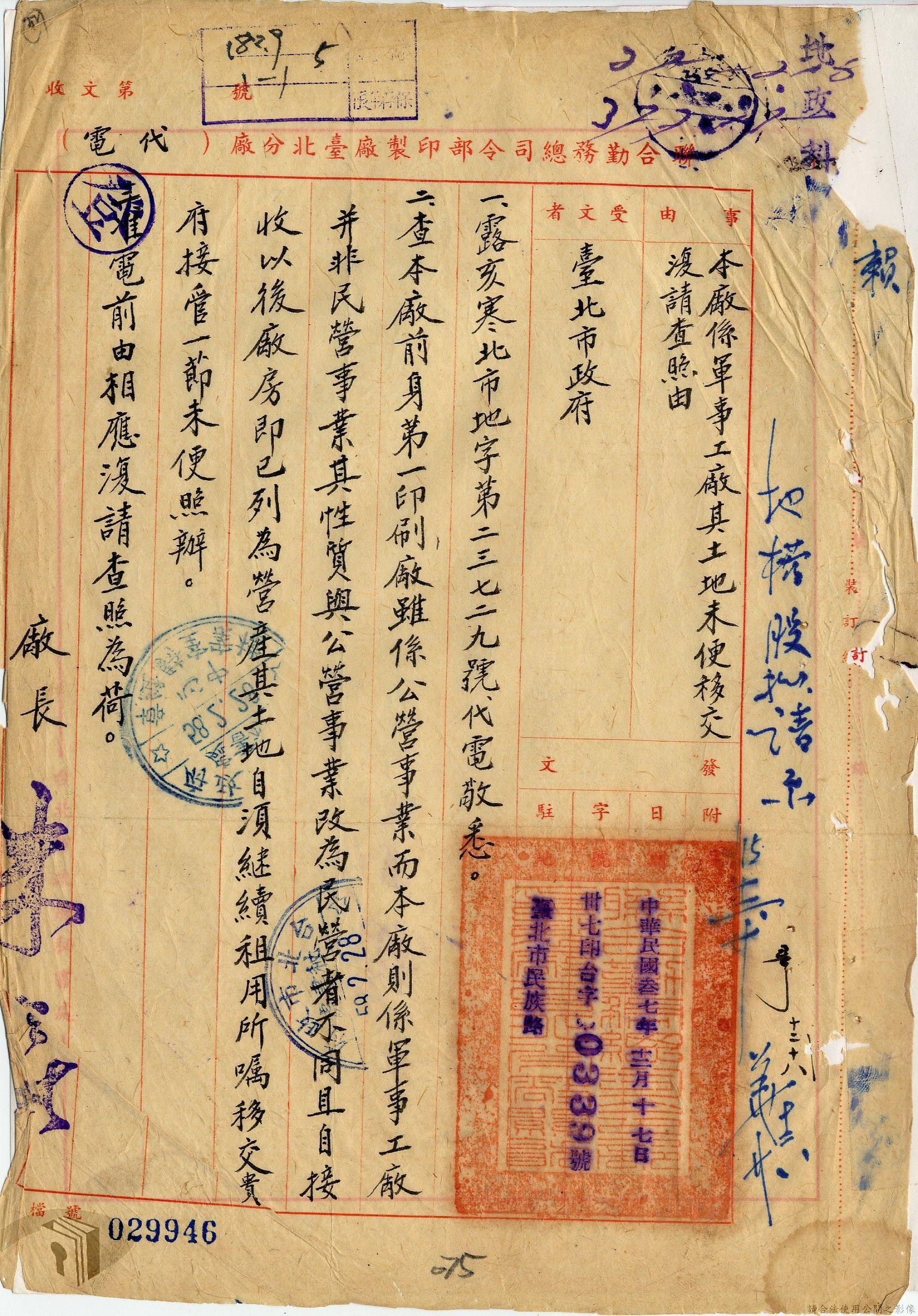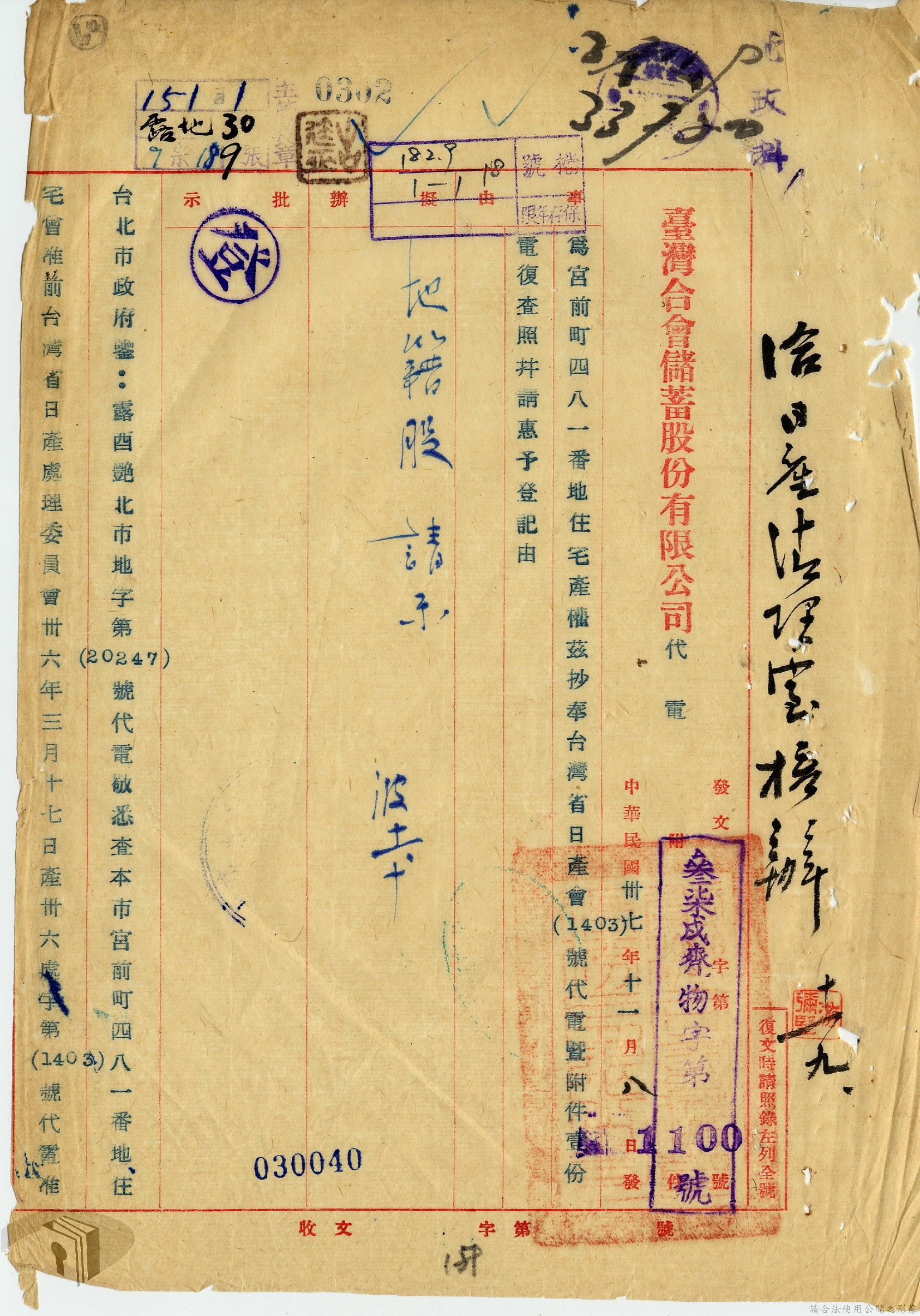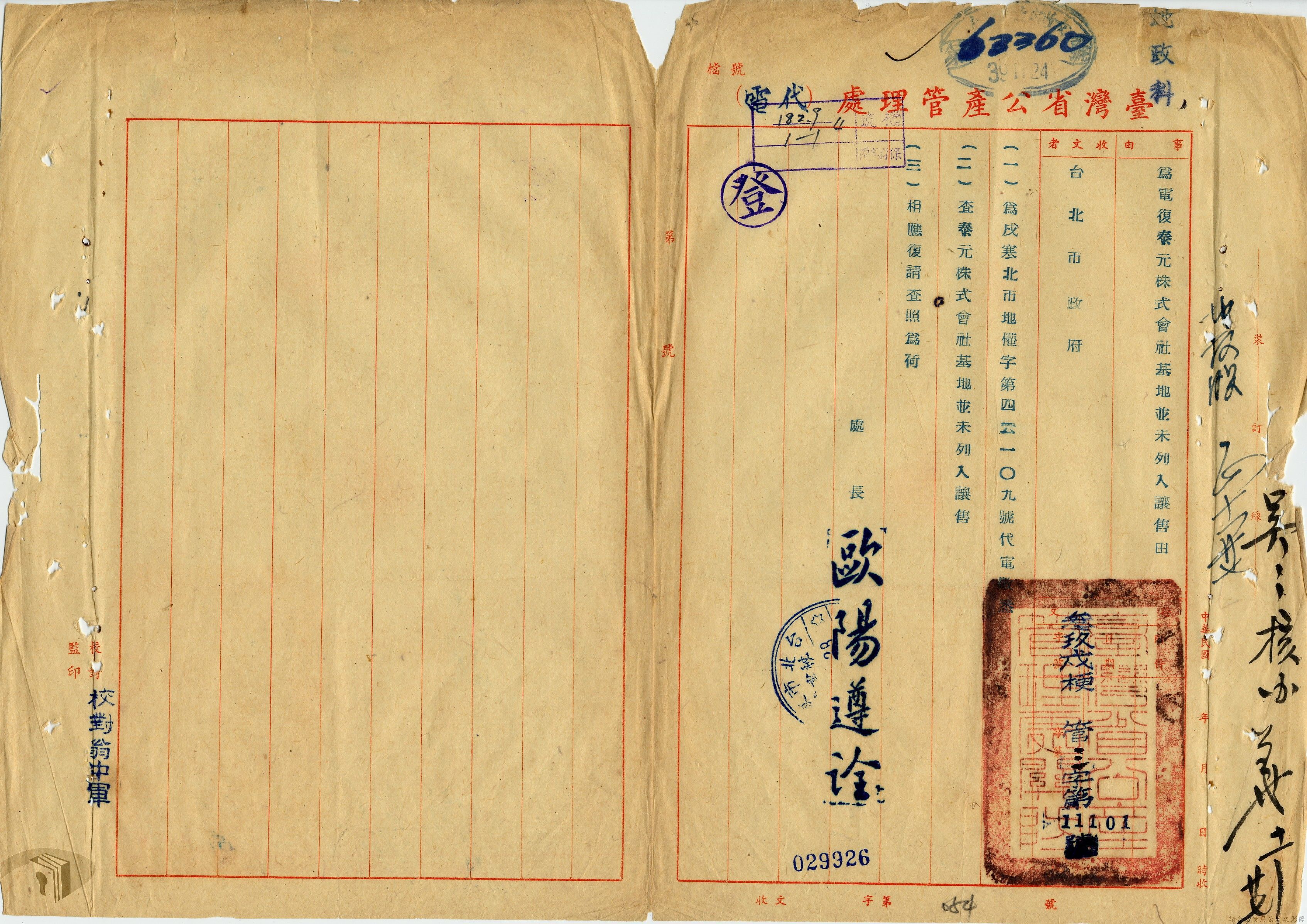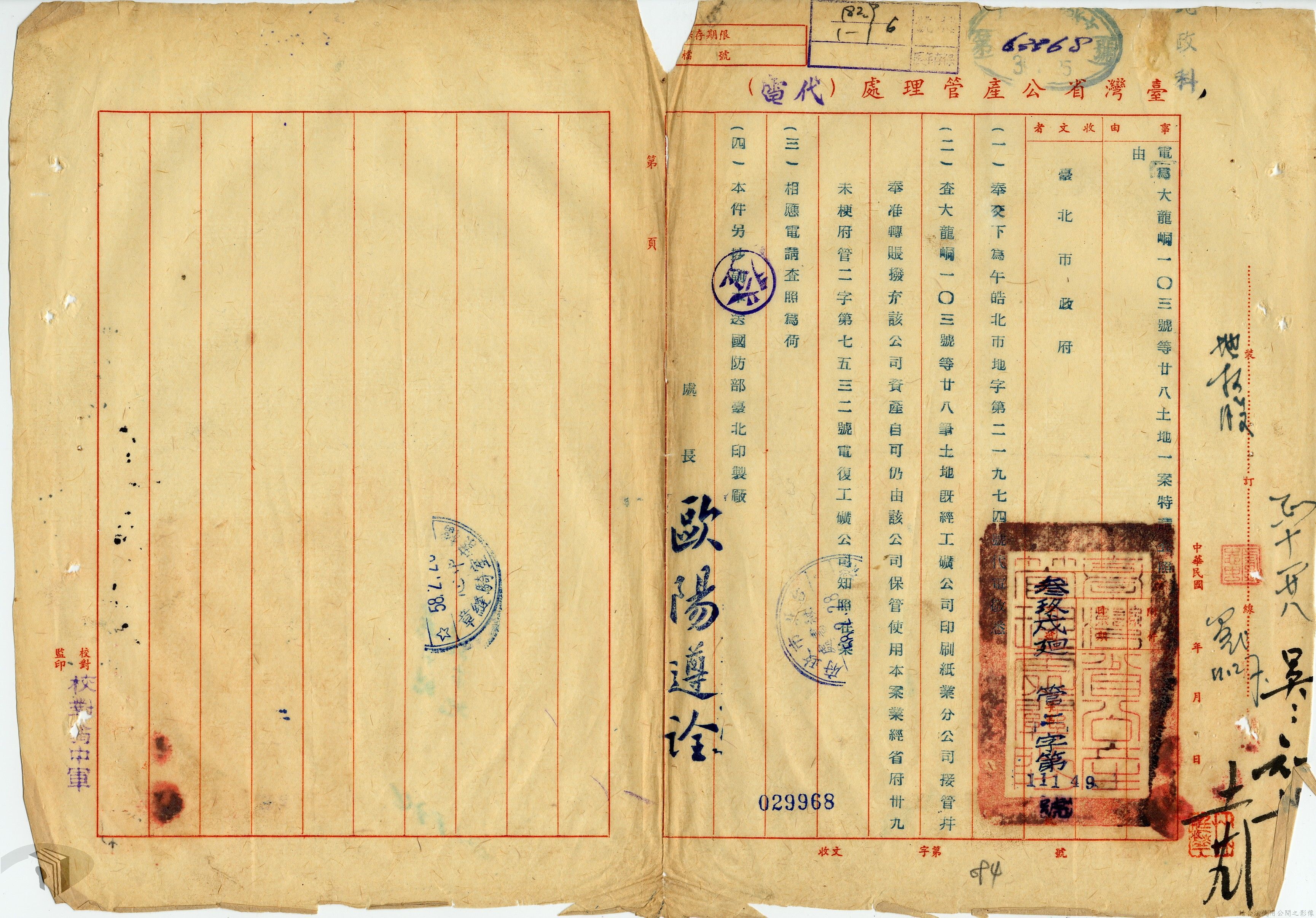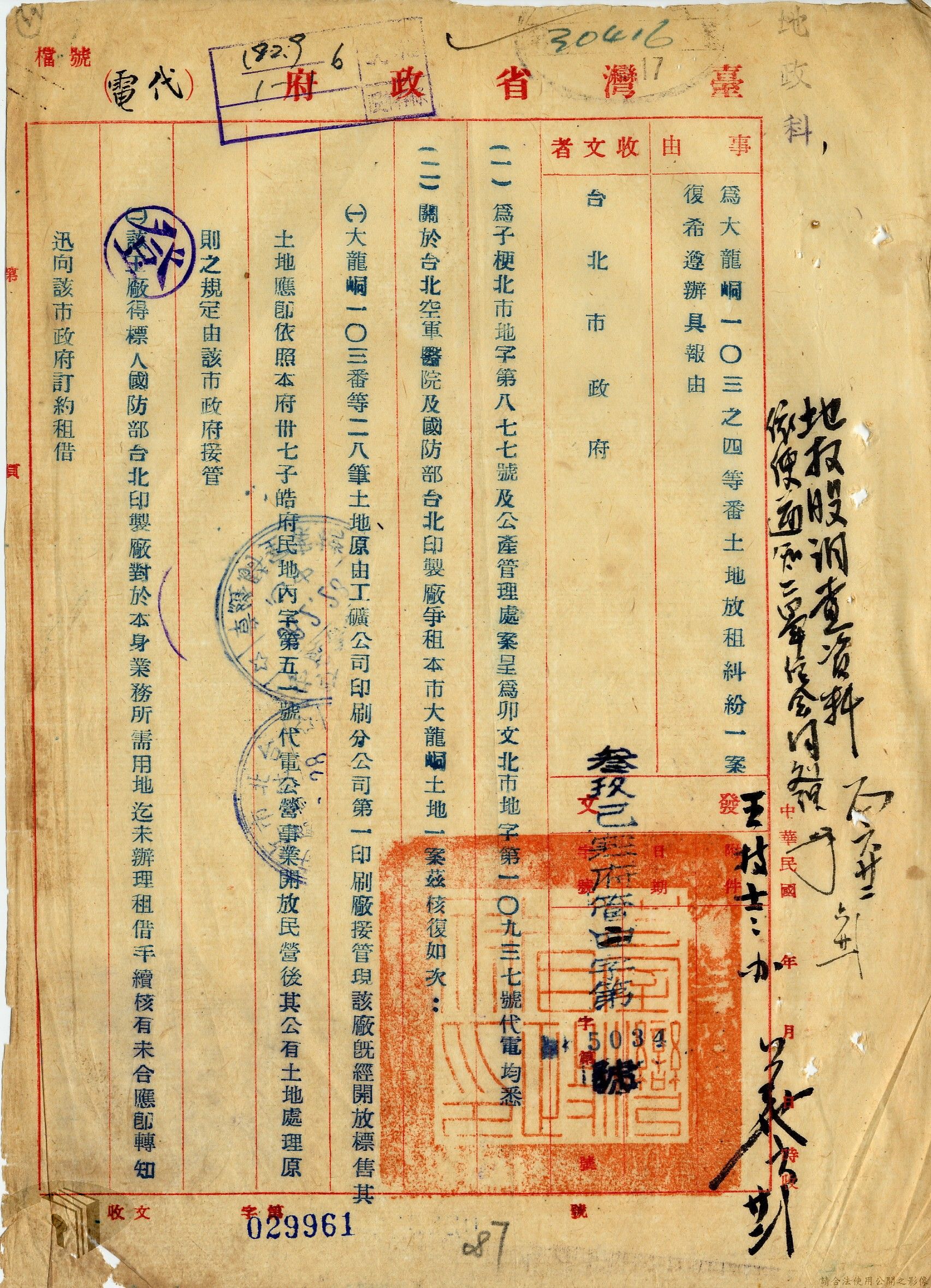 本案為36至40年間,有關臺北市政府於民國三十六年至三十九年間往來臺灣省政府等機關,處理企業與民間購置日產以及移轉過程產生的產權問題,包括臺灣茶葉企業股份有限公司及泰元會社等臺日合資企業,因為公地清查時被暫編為公有地的緣故,而請市府確認產權,經市府及臺灣省公產管理處查證屬實並確定未列入讓售;臺灣工礦公司將所屬第一印刷廠標售國防部聯勤總部,請市府派員辦理移交手續未果,工礦公司與國防部呈請儘速辦理土地租約定訂事宜;國防部臺北印製廠與臺北空軍醫院產生競租糾紛,省府批示由市府與雙方按需要情形劃定使用範圍;華南銀行以前身臺灣信託公司所持日人股份極少的理由,請將該股份暫視為民有,併附固有不動產及省人信託不動產統計表;臺灣住宅無盡會社函請市府及日產處理委員會請免予視為日產以明產權,併附所有會員住宅房屋已未接收清冊;臺灣合會儲蓄股份有限公司向市府陳報出售部分房屋予基督教神召會,並向市府申請產權登記﹔市民以承租的日產耕地因颱風造成面積流失,請市府派員調查及准予更正地籍資料或要求取消租約,或承租地遭人霸佔請市府出面處理,或要求確認其土地產權,並為市府覆文認可;市府依省政府命令,清查各區於日本統治時代的保甲擴充情形及數量,市府經各區公所統計並無日本統治時代的保甲土地。