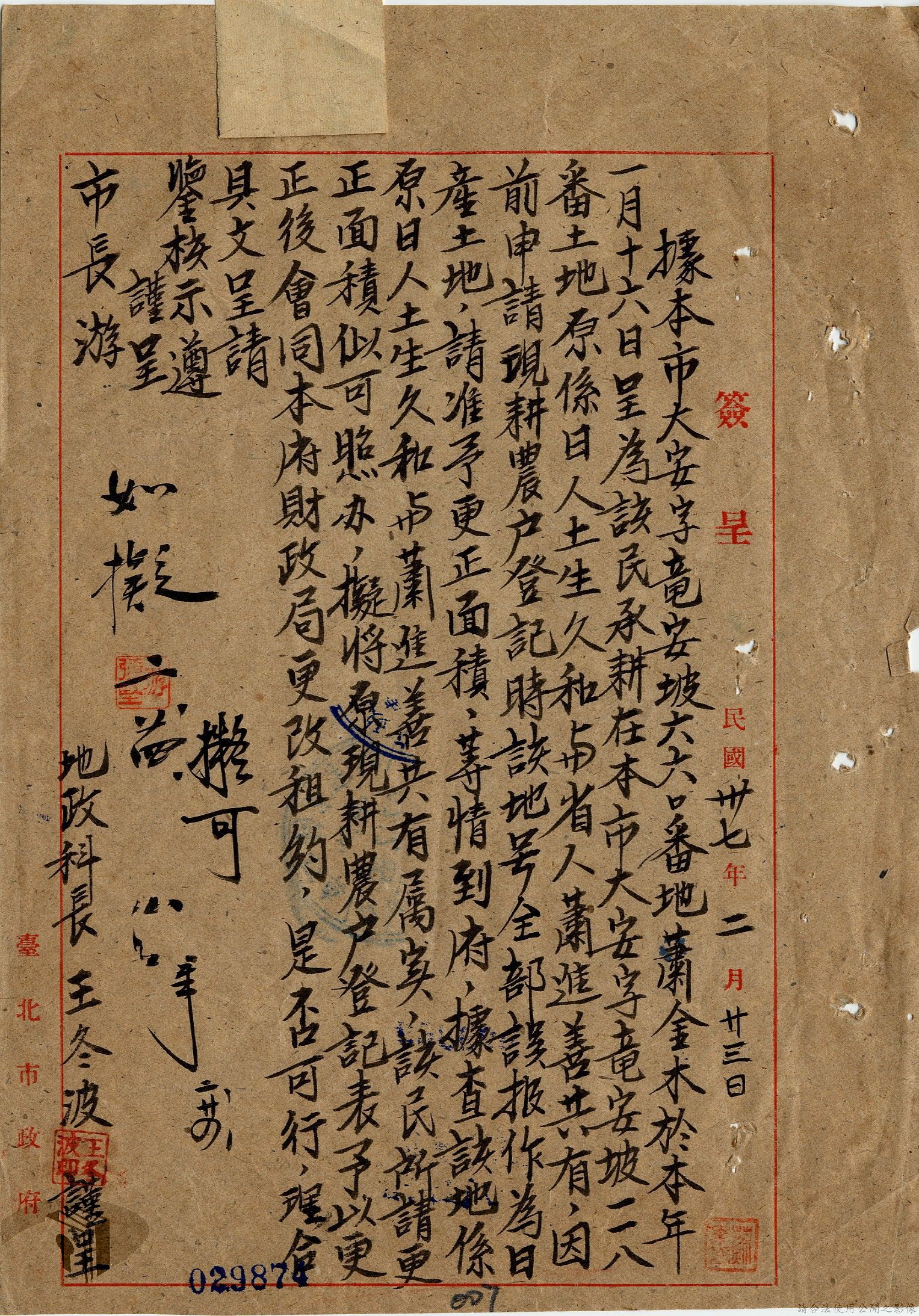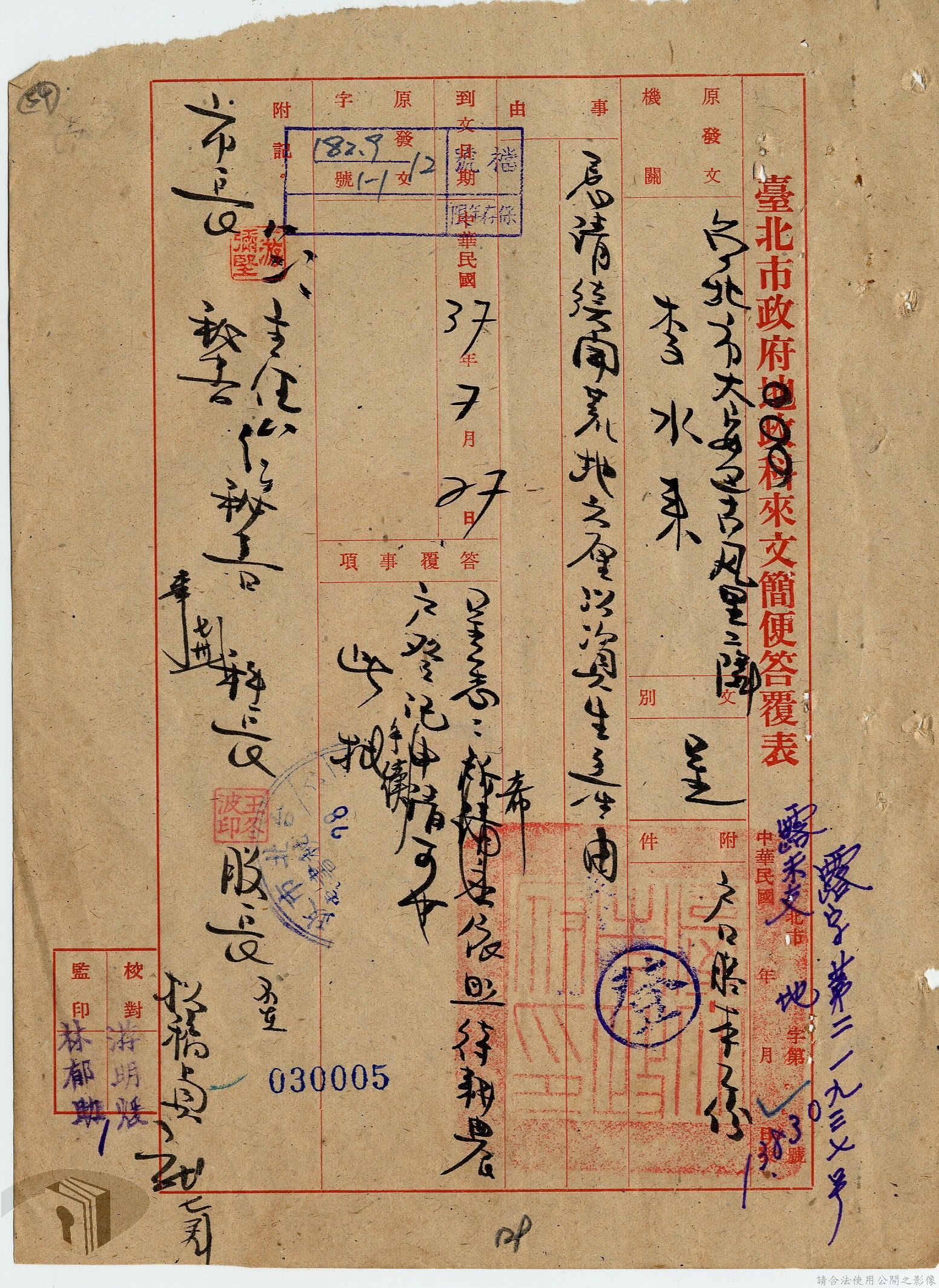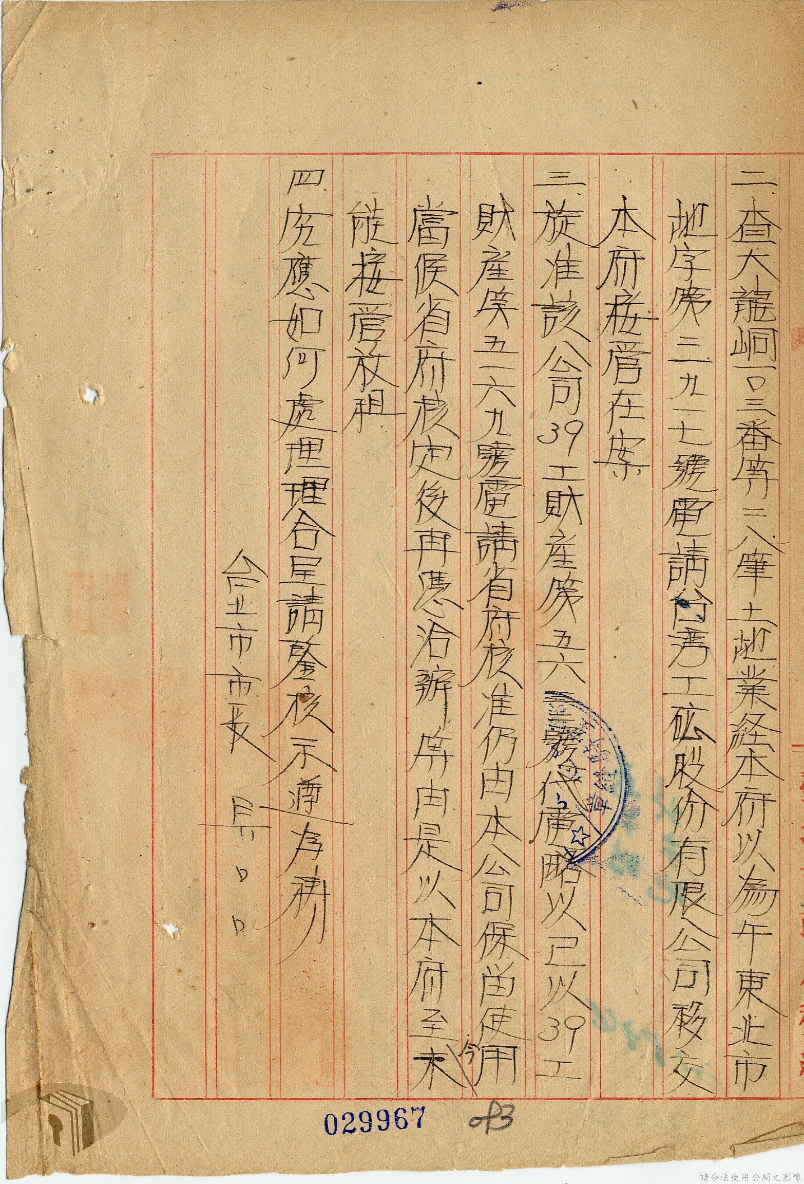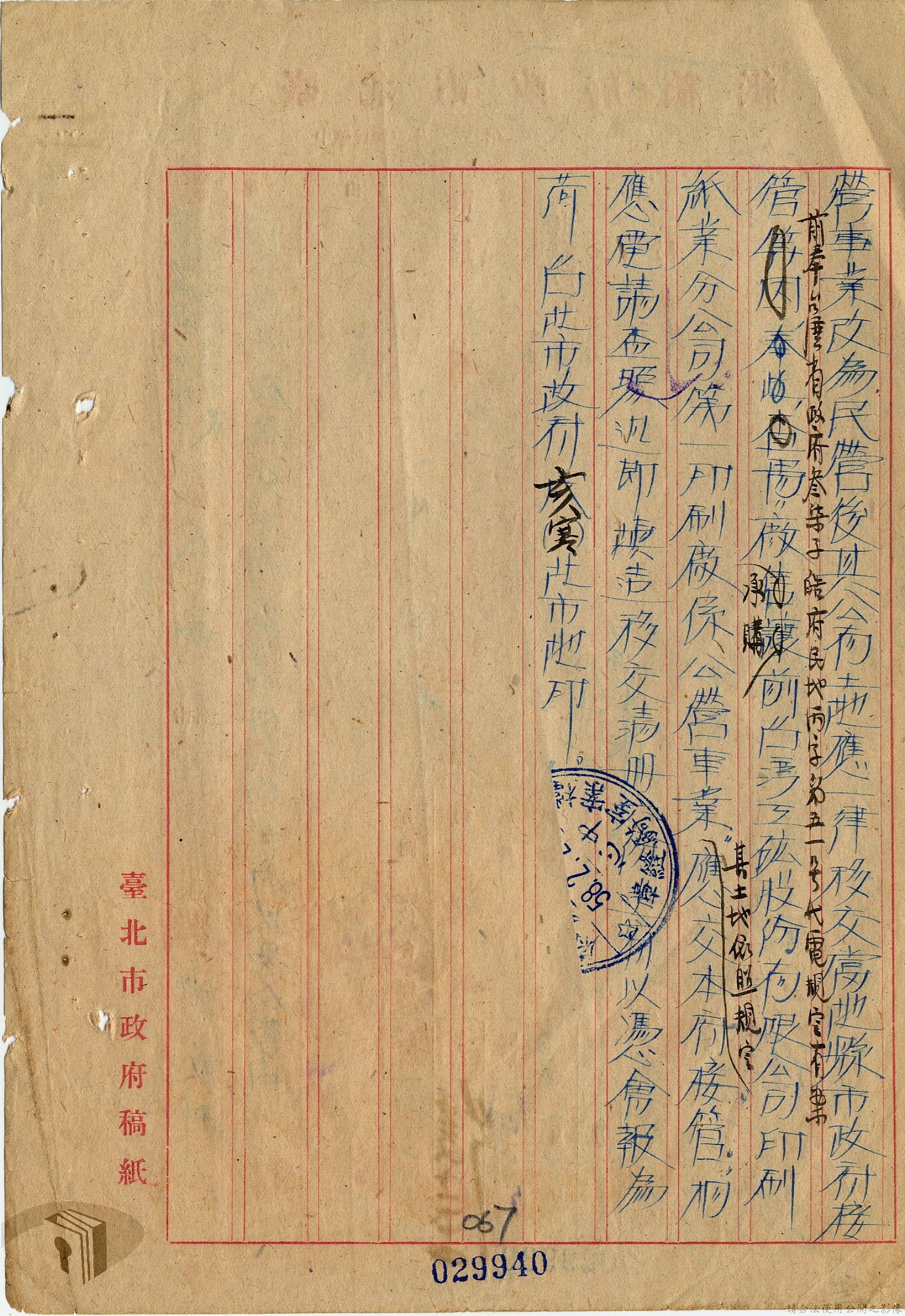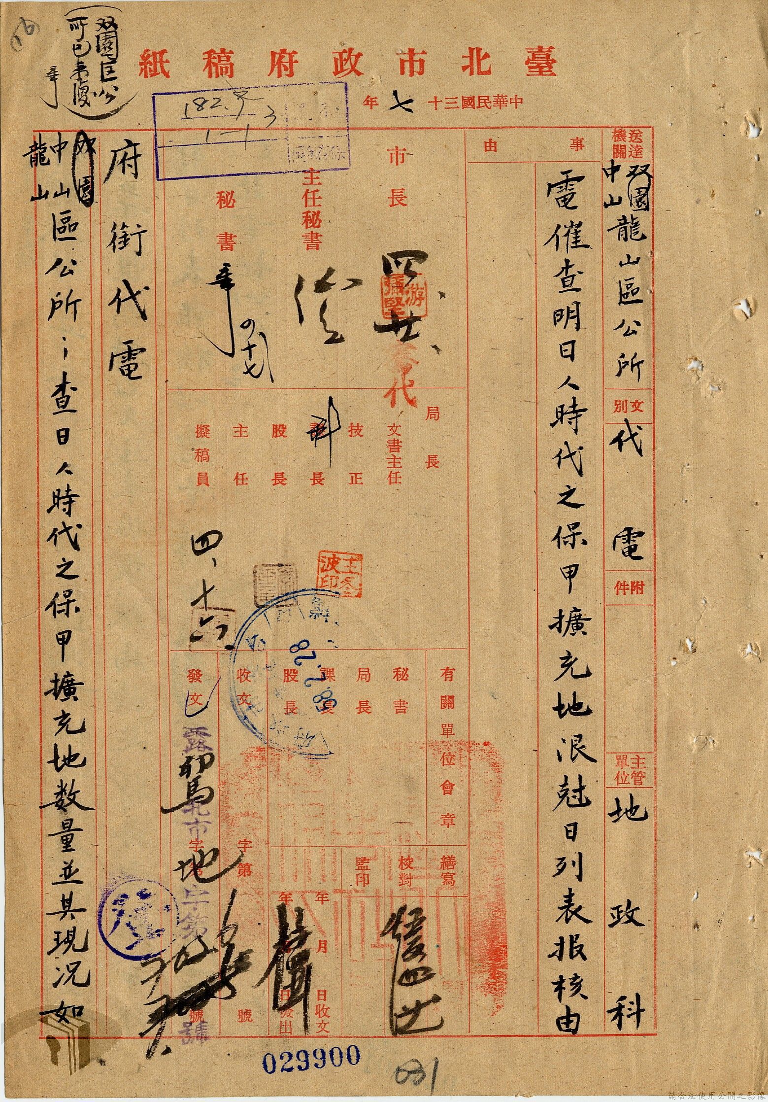 本案為36至40年間,有關臺北市政府於民國三十六年至三十九年間往來臺灣省政府等機關,處理企業與民間購置日產以及移轉過程產生的產權問題,包括臺灣茶葉企業股份有限公司及泰元會社等臺日合資企業,因為公地清查時被暫編為公有地的緣故,而請市府確認產權,經市府及臺灣省公產管理處查證屬實並確定未列入讓售;臺灣工礦公司將所屬第一印刷廠標售國防部聯勤總部,請市府派員辦理移交手續未果,工礦公司與國防部呈請儘速辦理土地租約定訂事宜;國防部臺北印製廠與臺北空軍醫院產生競租糾紛,省府批示由市府與雙方按需要情形劃定使用範圍;華南銀行以前身臺灣信託公司所持日人股份極少的理由,請將該股份暫視為民有,併附固有不動產及省人信託不動產統計表;臺灣住宅無盡會社函請市府及日產處理委員會請免予視為日產以明產權,併附所有會員住宅房屋已未接收清冊;臺灣合會儲蓄股份有限公司向市府陳報出售部分房屋予基督教神召會,並向市府申請產權登記﹔市民以承租的日產耕地因颱風造成面積流失,請市府派員調查及准予更正地籍資料或要求取消租約,或承租地遭人霸佔請市府出面處理,或要求確認其土地產權,並為市府覆文認可;市府依省政府命令,清查各區於日本統治時代的保甲擴充情形及數量,市府經各區公所統計並無日本統治時代的保甲土地。