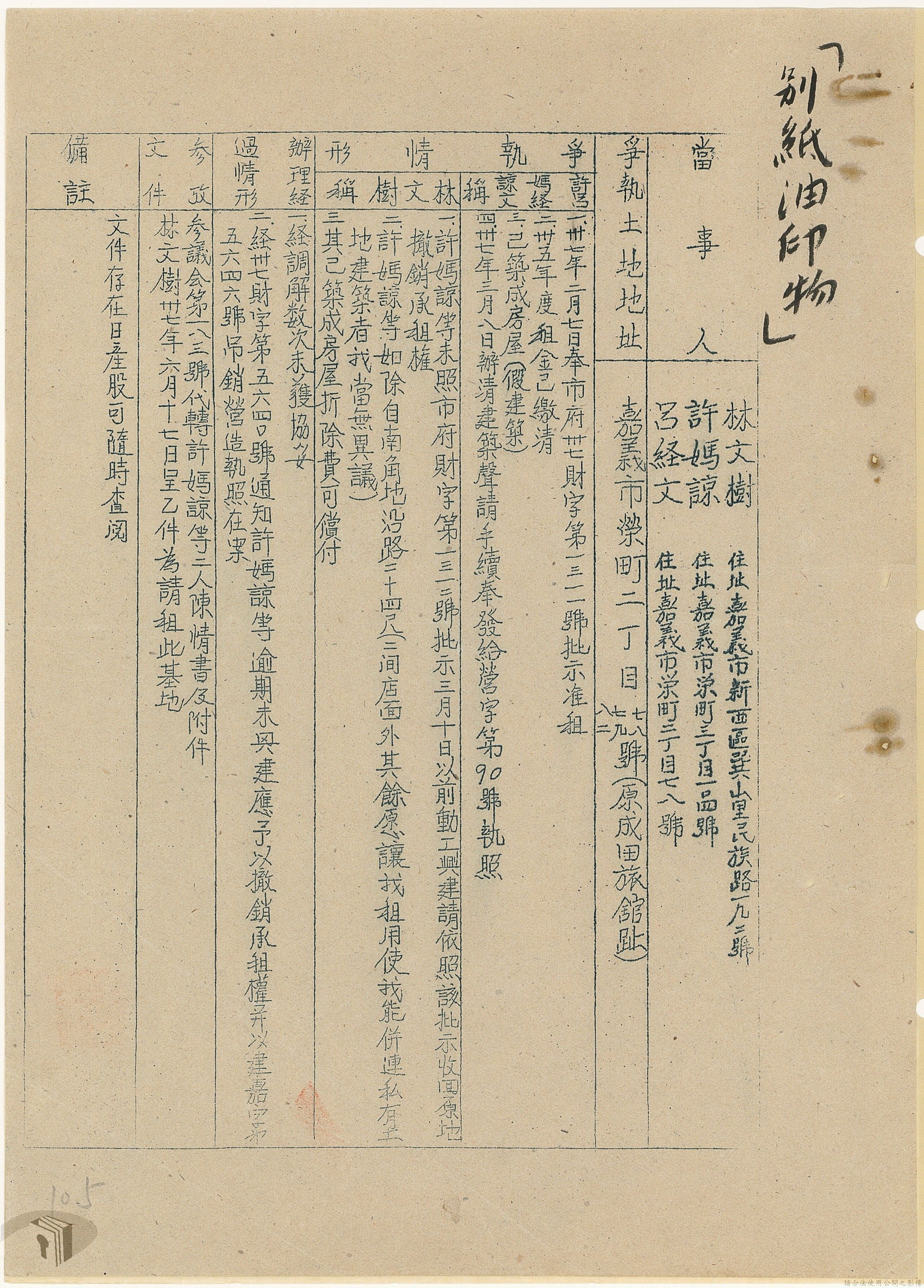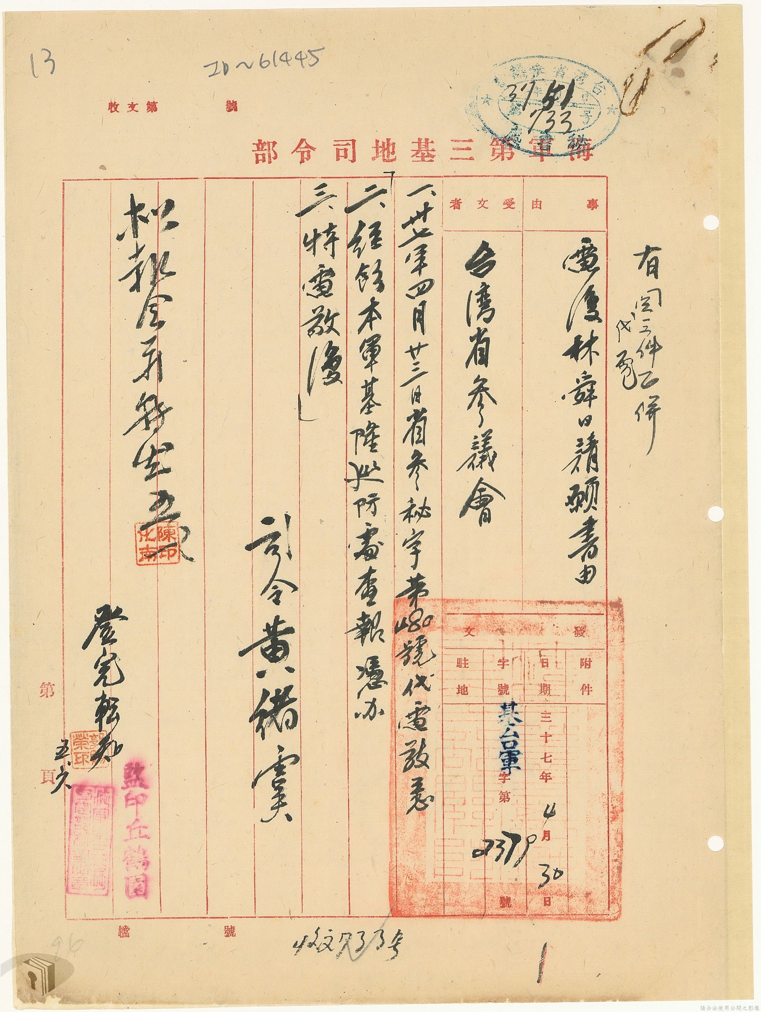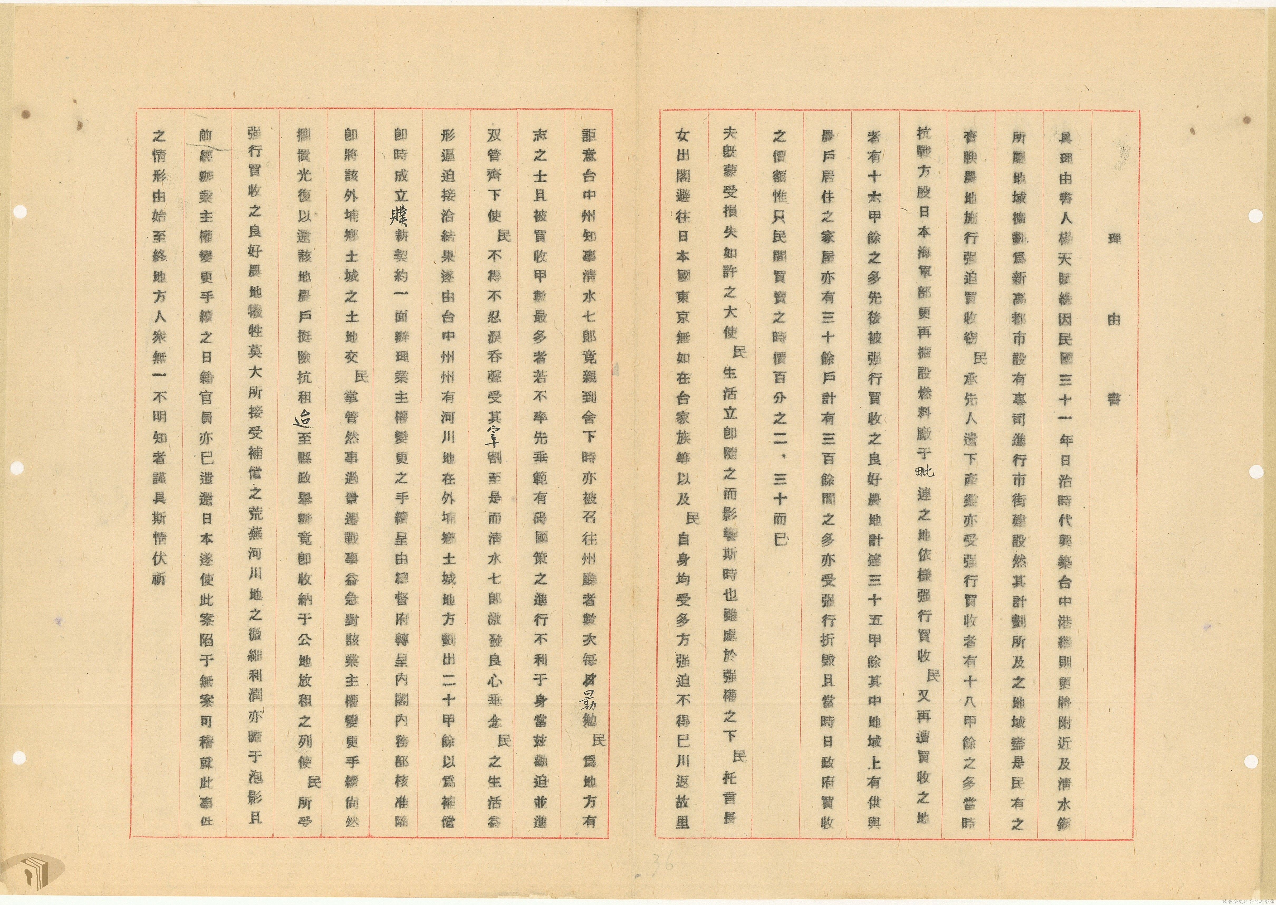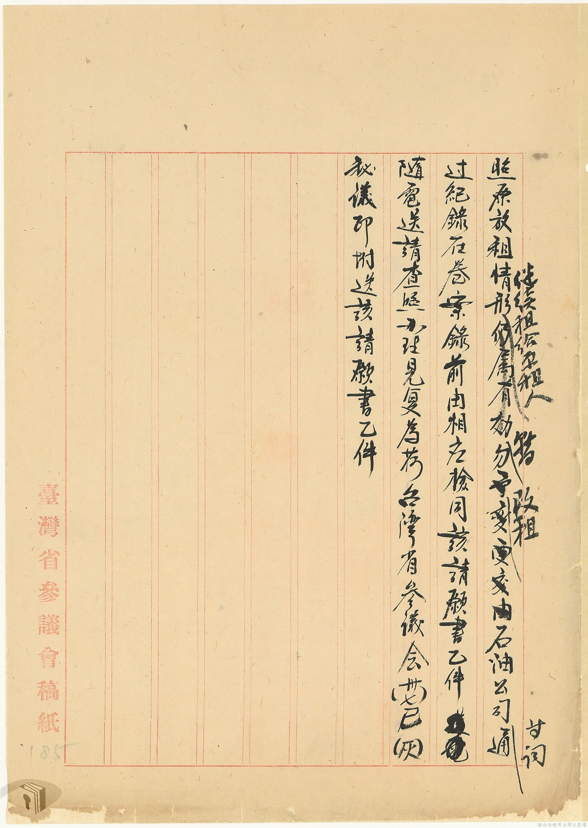 本案為37年間,有關臺灣省參議會向臺灣省政府地政處,查詢日軍設施用地復原及給付地主之地上物賠償金辦理情形;派員實地調查民眾土地案調查報告;檢送本省清理土地權利審查第2次會議記錄;臺灣省民政聽指示土地清理會議須實地勘查;函請國軍遷出民地之營舍以利耕種;發還民眾之土地;參議員強租民地案應限期補辦手續;民眾訴請恢復土地租用權;發還日軍強制徵收土地;臺灣省旅滬同鄉會長之請願書;省政府委託中國石油公司接收日本海軍燃料庫用地;民眾呈請認定永佃權。