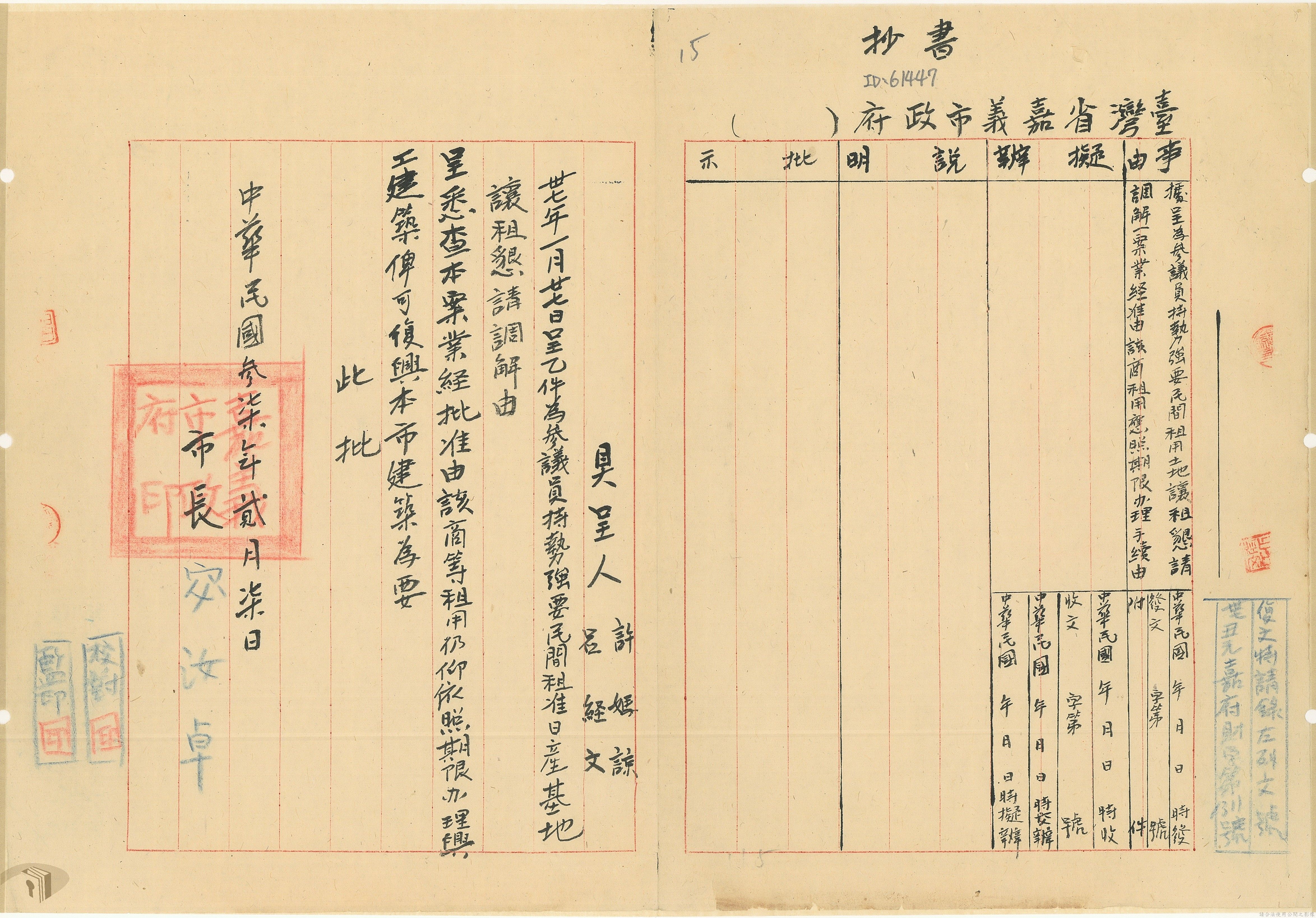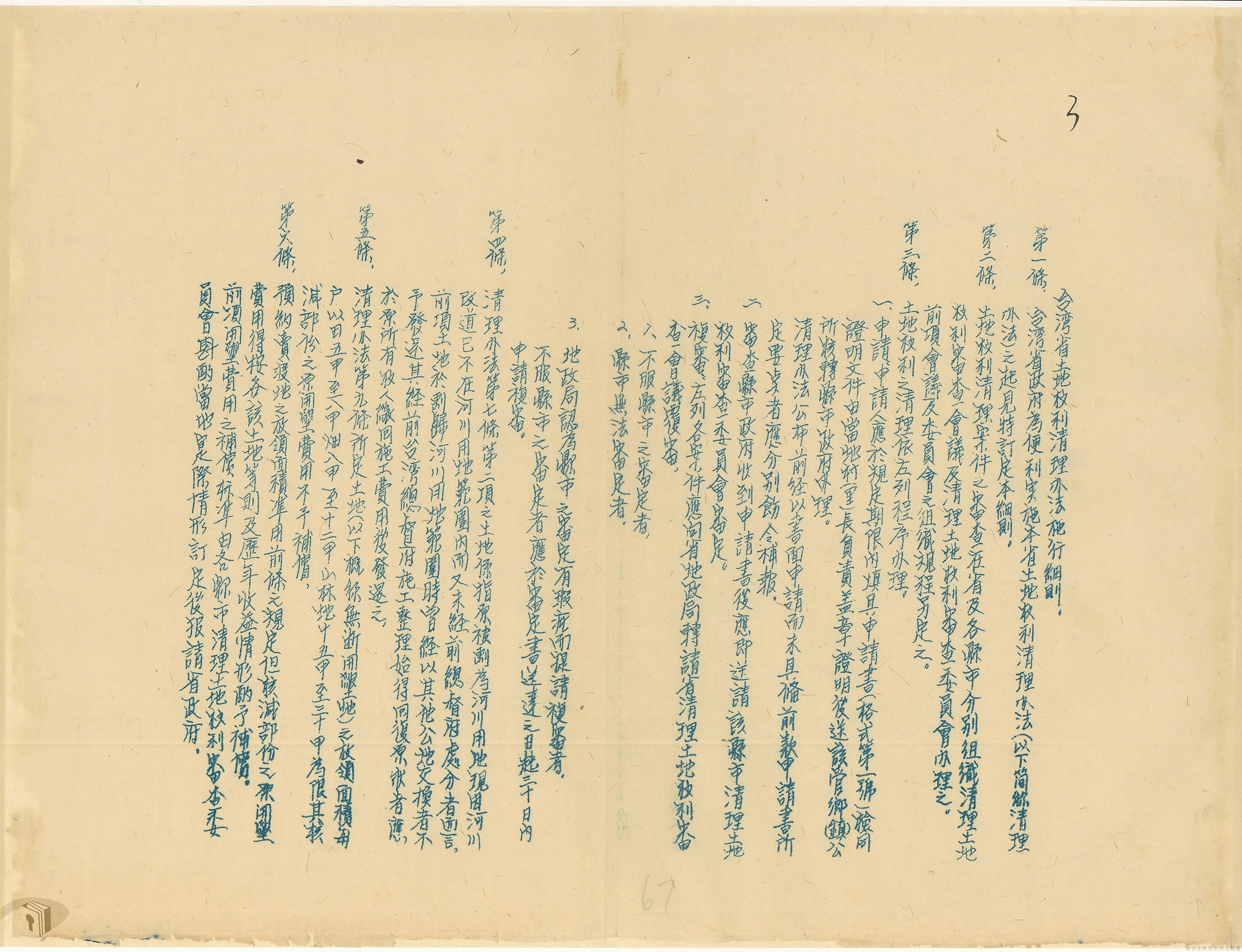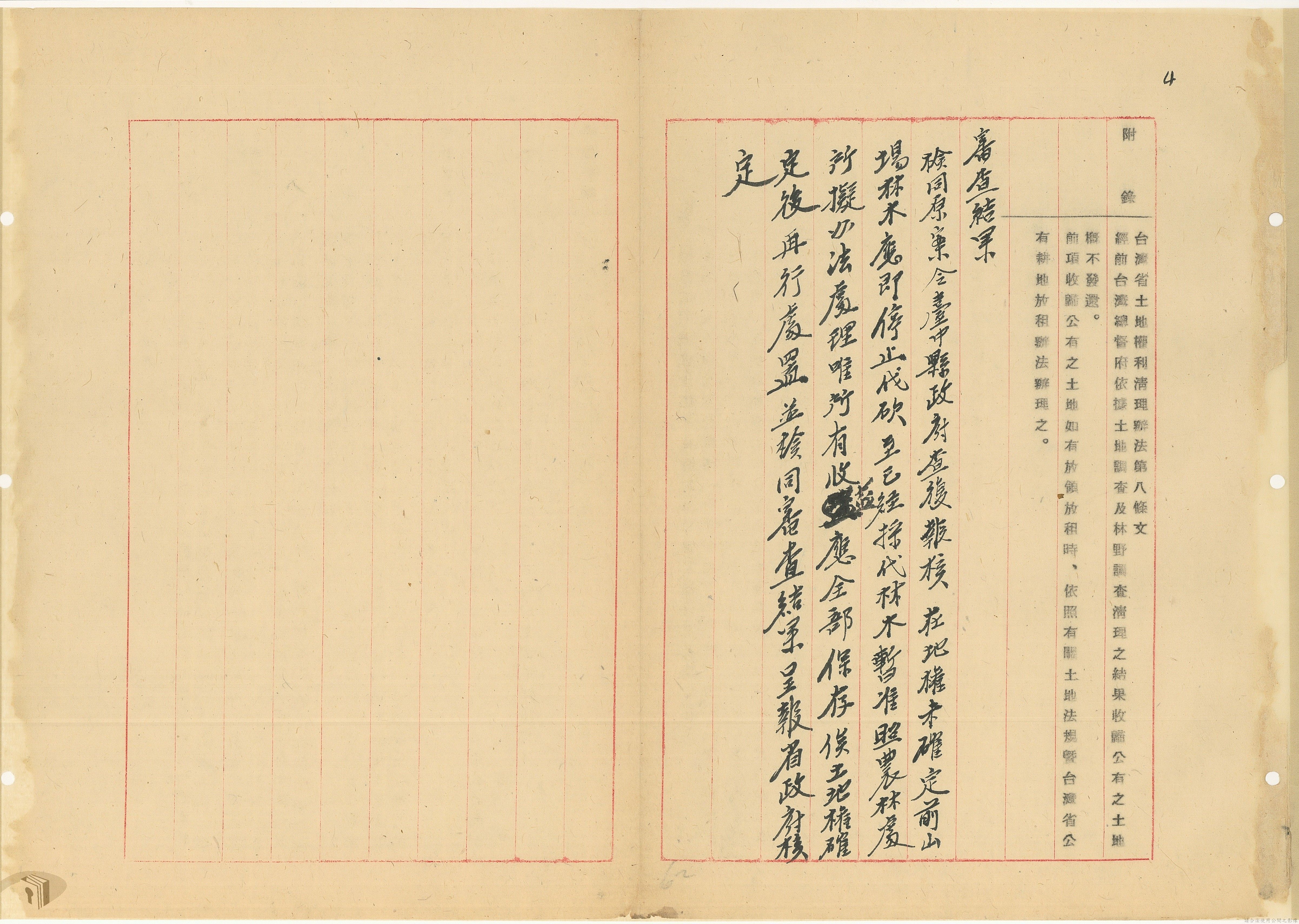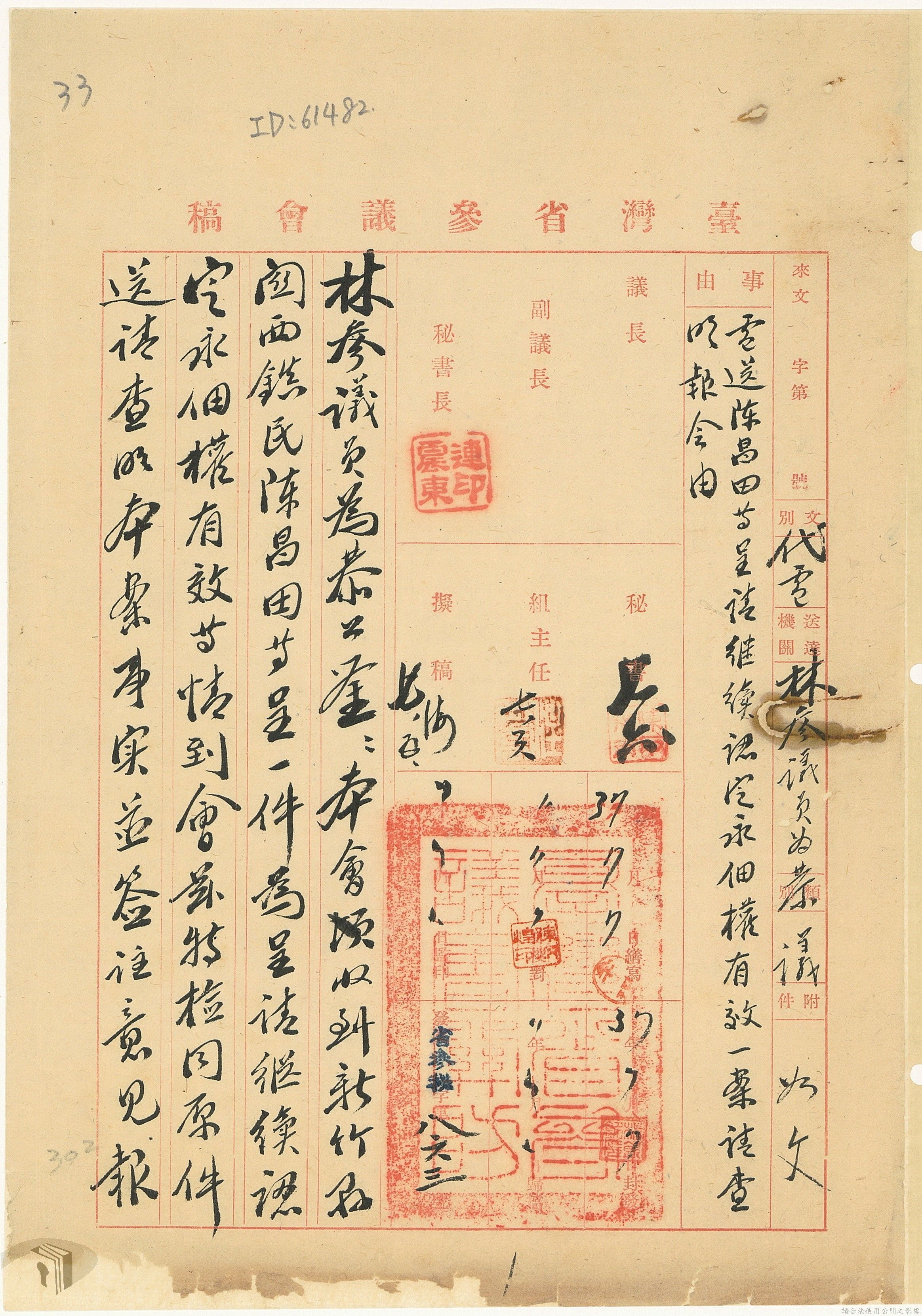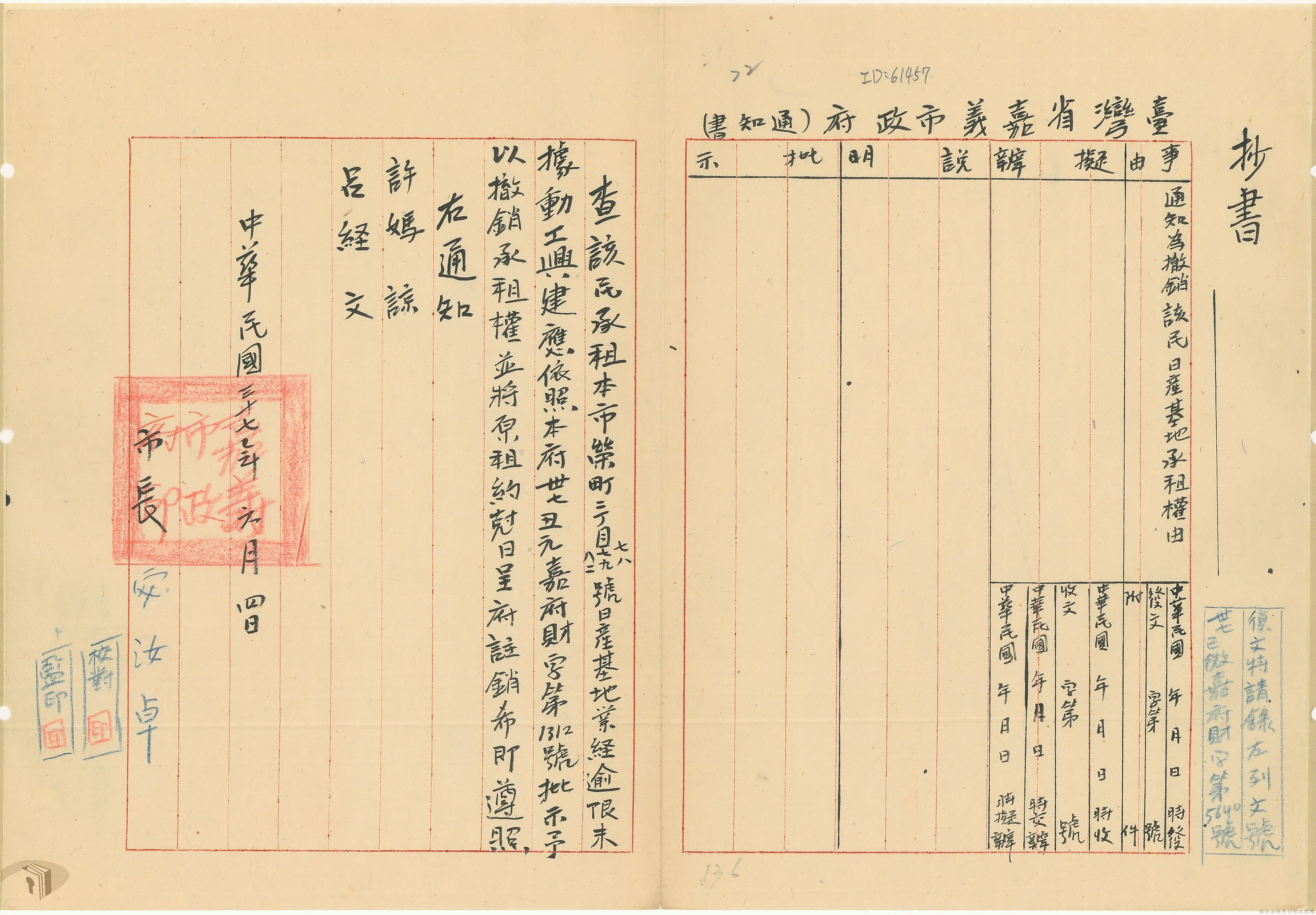 本案為37年間,有關臺灣省參議會向臺灣省政府地政處,查詢日軍設施用地復原及給付地主之地上物賠償金辦理情形;派員實地調查民眾土地案調查報告;檢送本省清理土地權利審查第2次會議記錄;臺灣省民政聽指示土地清理會議須實地勘查;函請國軍遷出民地之營舍以利耕種;發還民眾之土地;參議員強租民地案應限期補辦手續;民眾訴請恢復土地租用權;發還日軍強制徵收土地;臺灣省旅滬同鄉會長之請願書;省政府委託中國石油公司接收日本海軍燃料庫用地;民眾呈請認定永佃權。