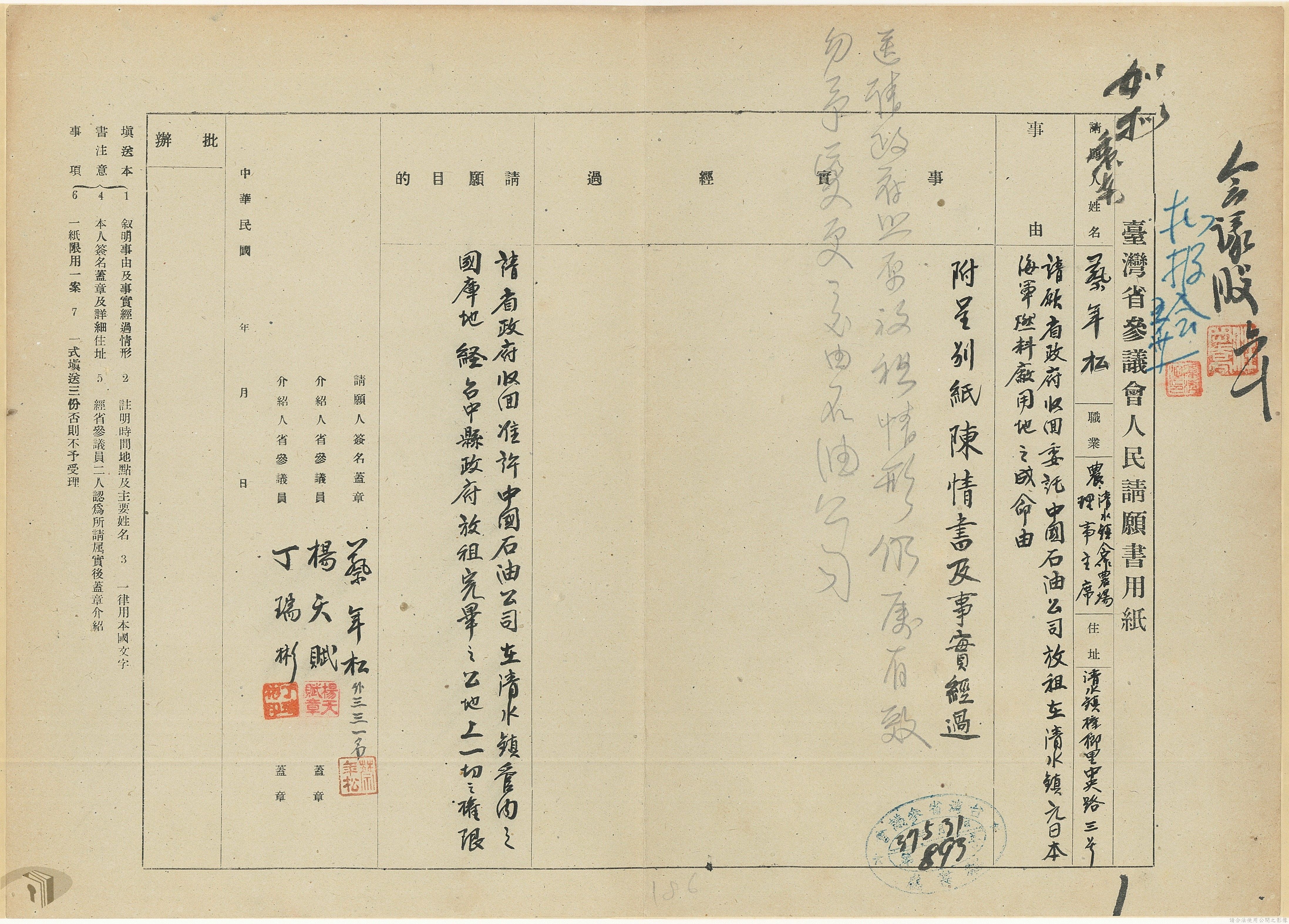三十七年一月六月請願政治地政