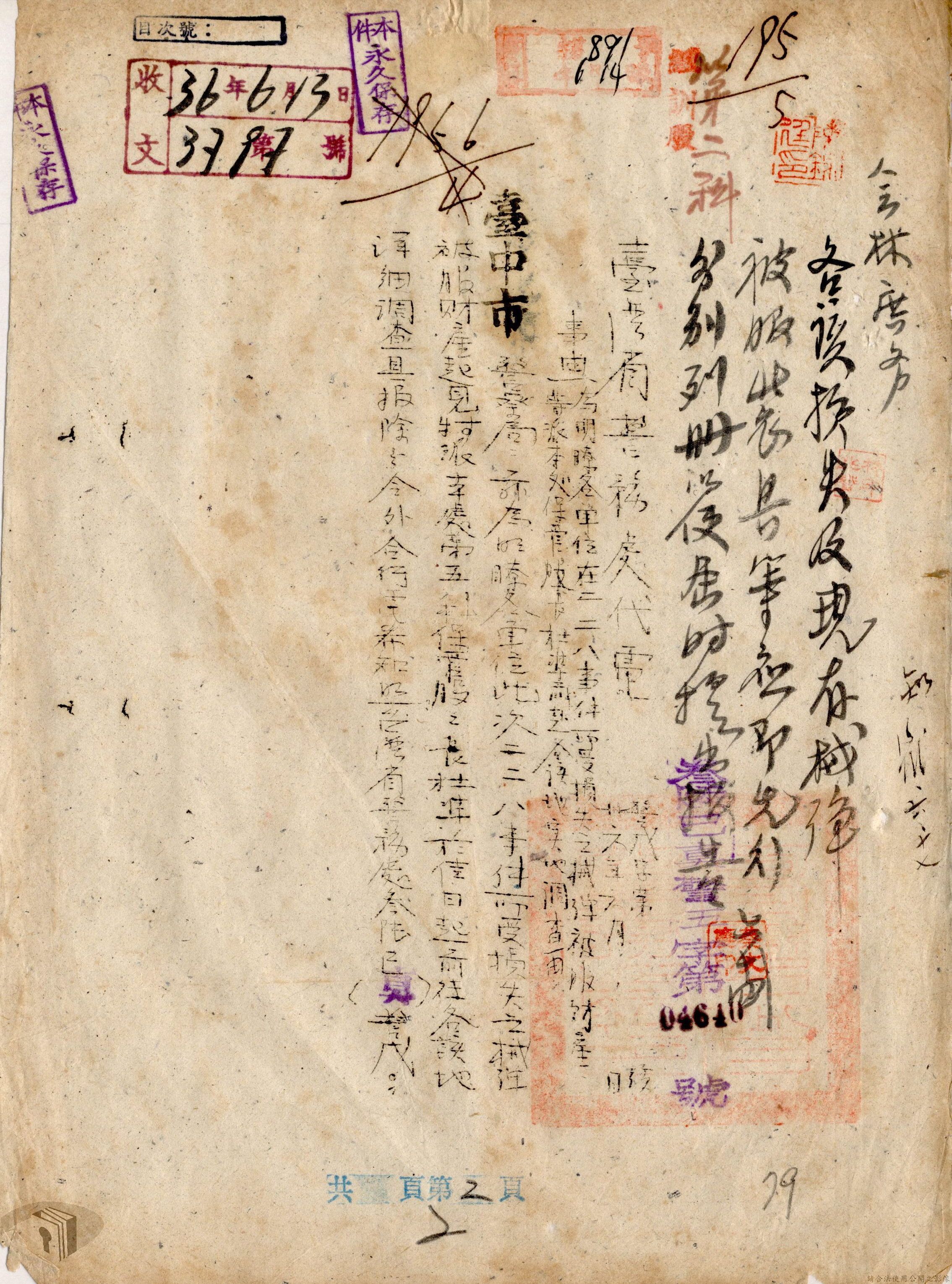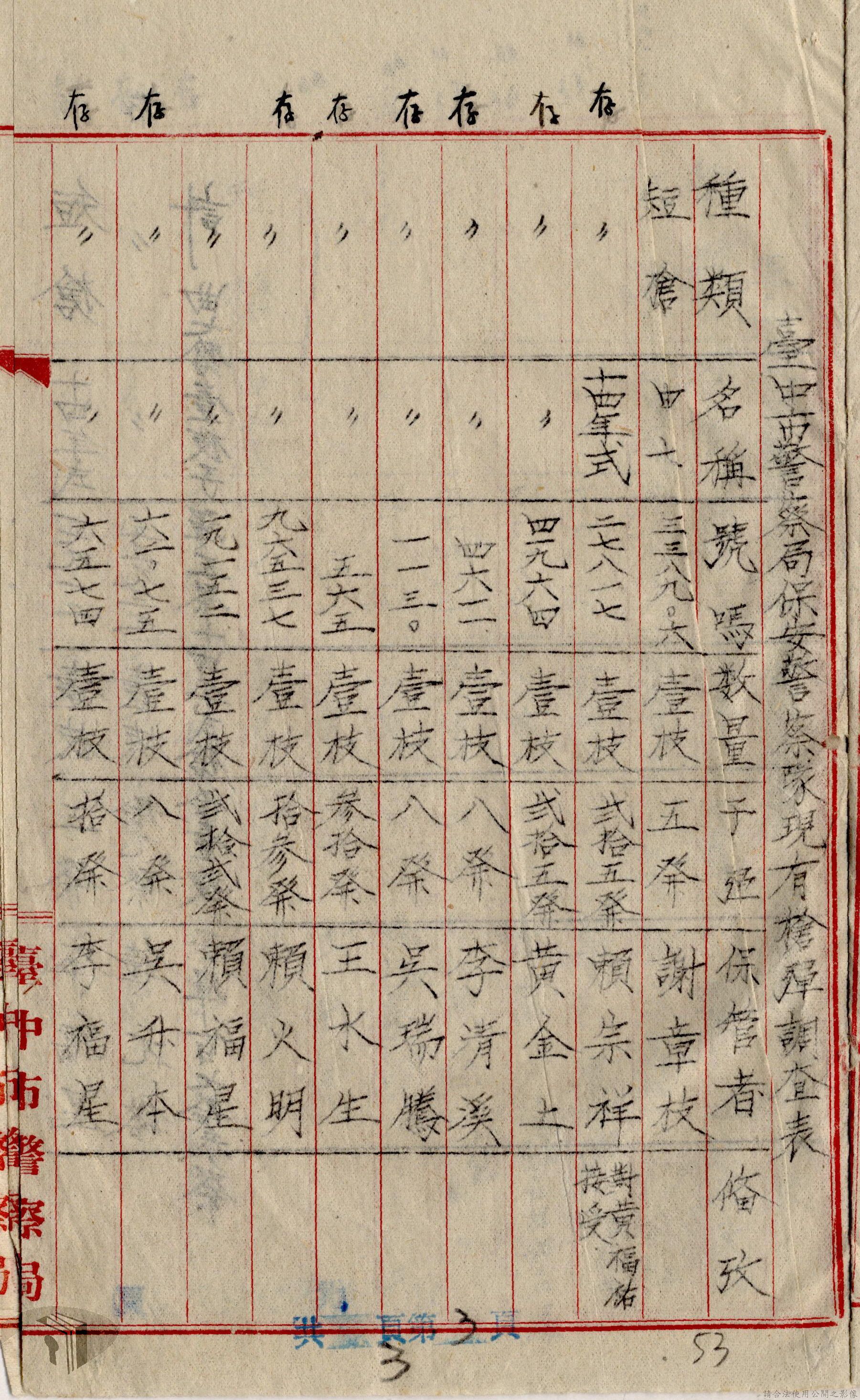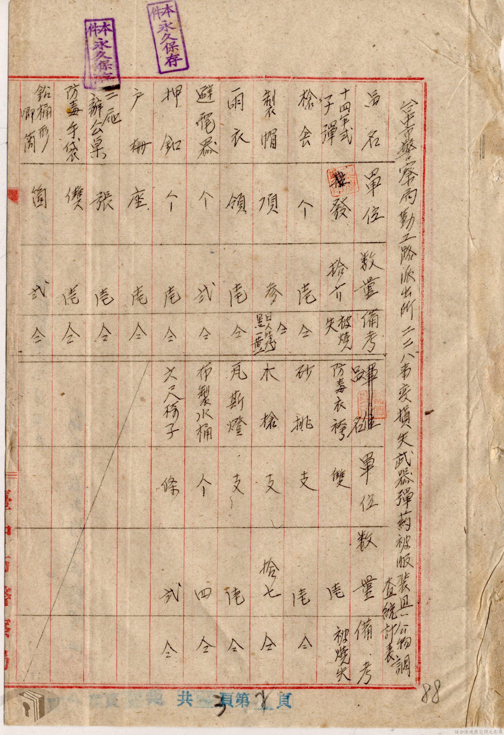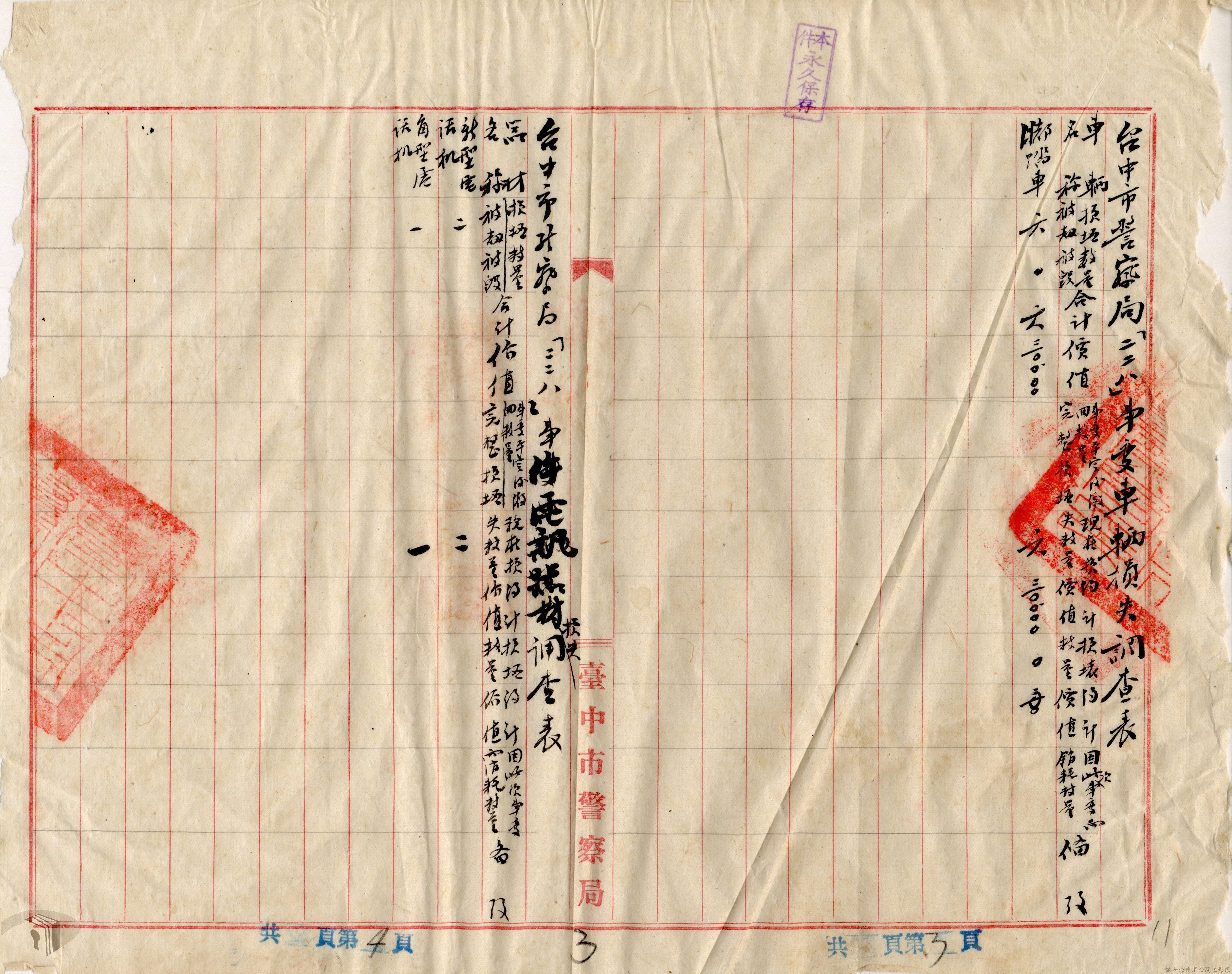 本案為36至37年間,臺中市政府警察局將各派出所二二八事件電訊器材、槍械、車輛損失調查表函送臺灣省行政長官公署警務處,並向臺灣省行政長官公署警務處及臺灣省警備司令部陳報有關追回二二八事件中借用槍械及各項公物損失情形。