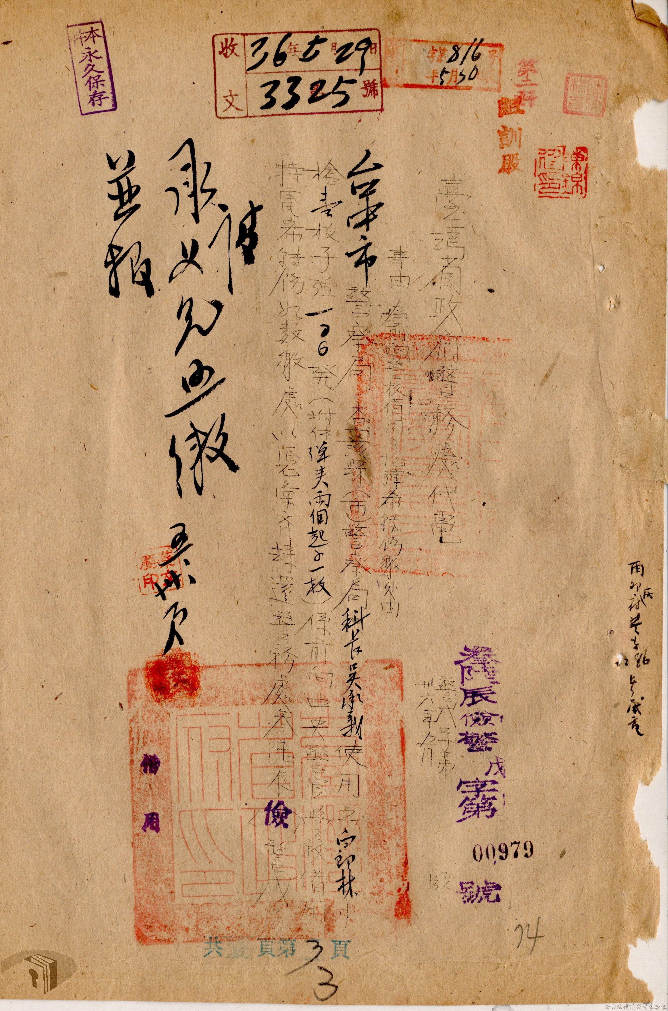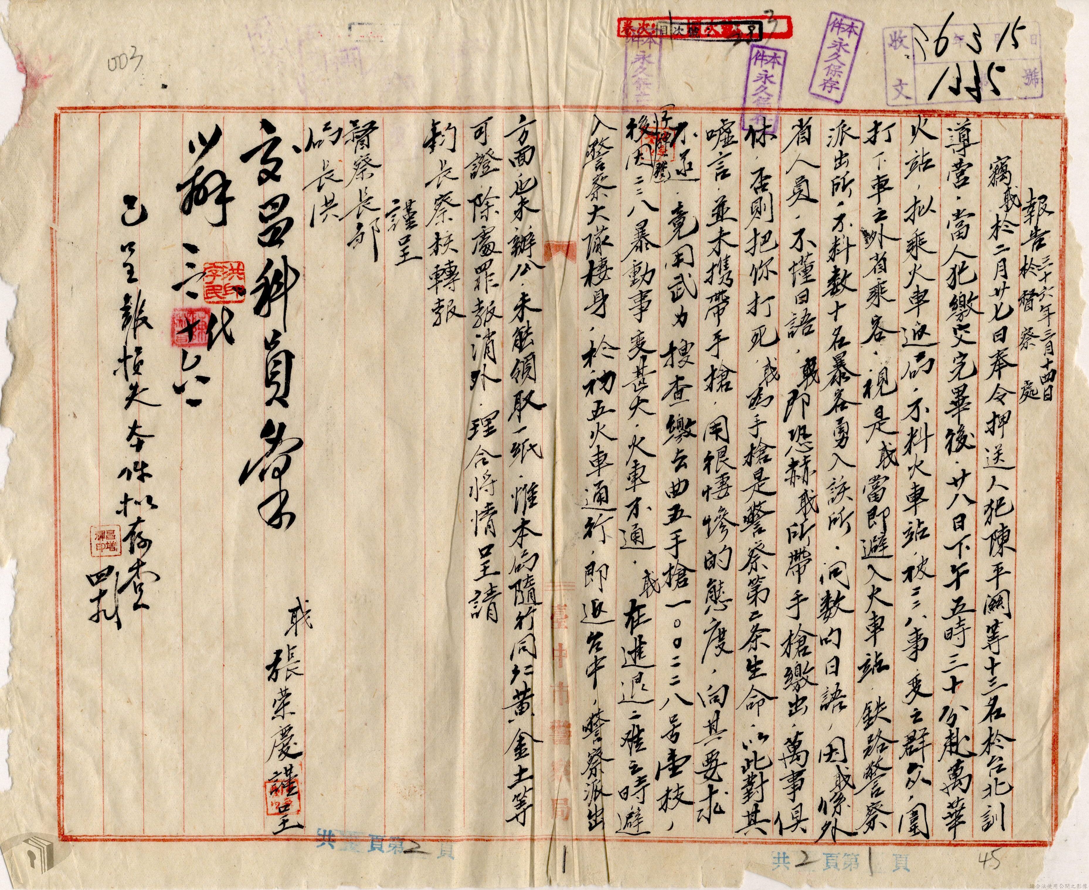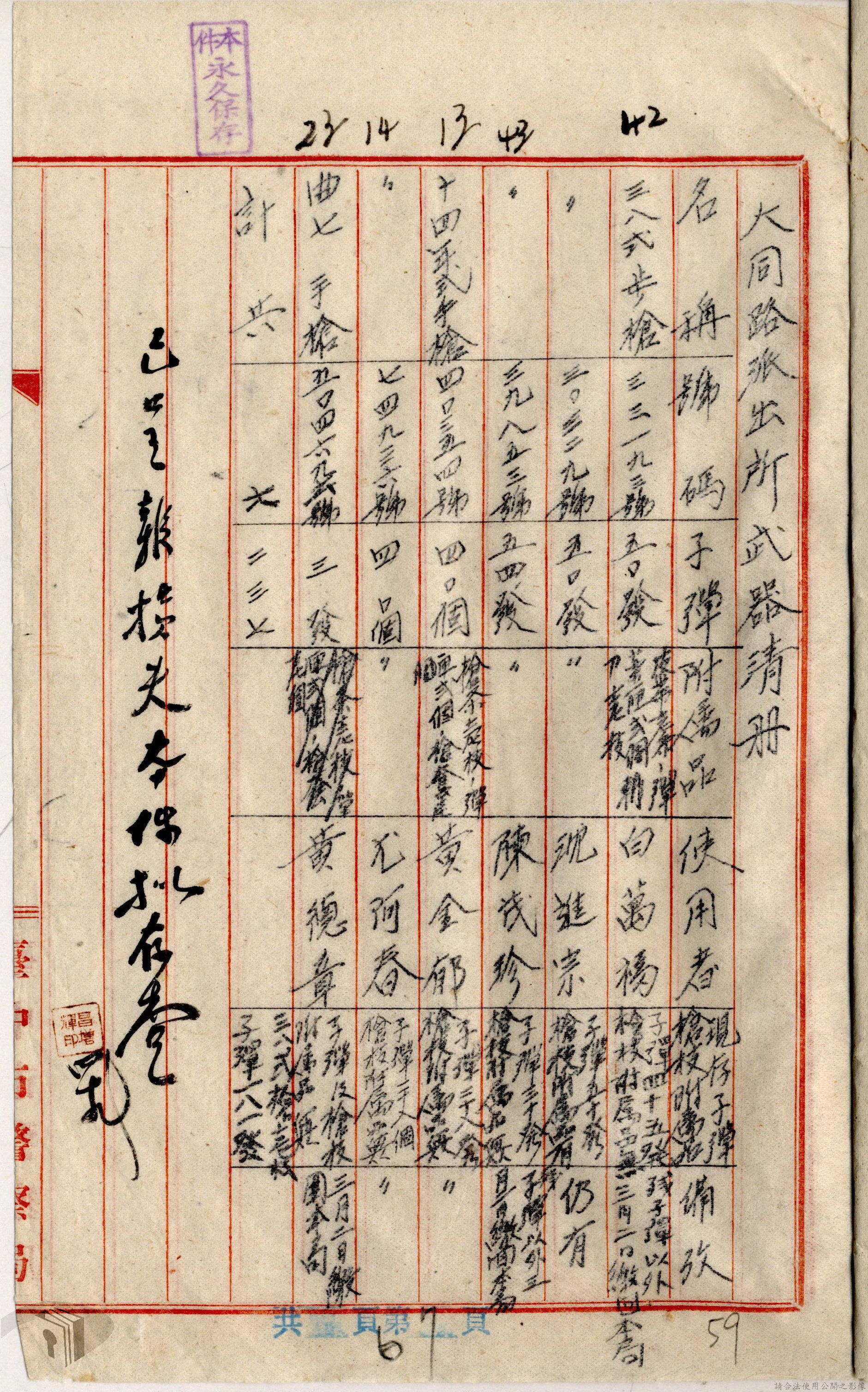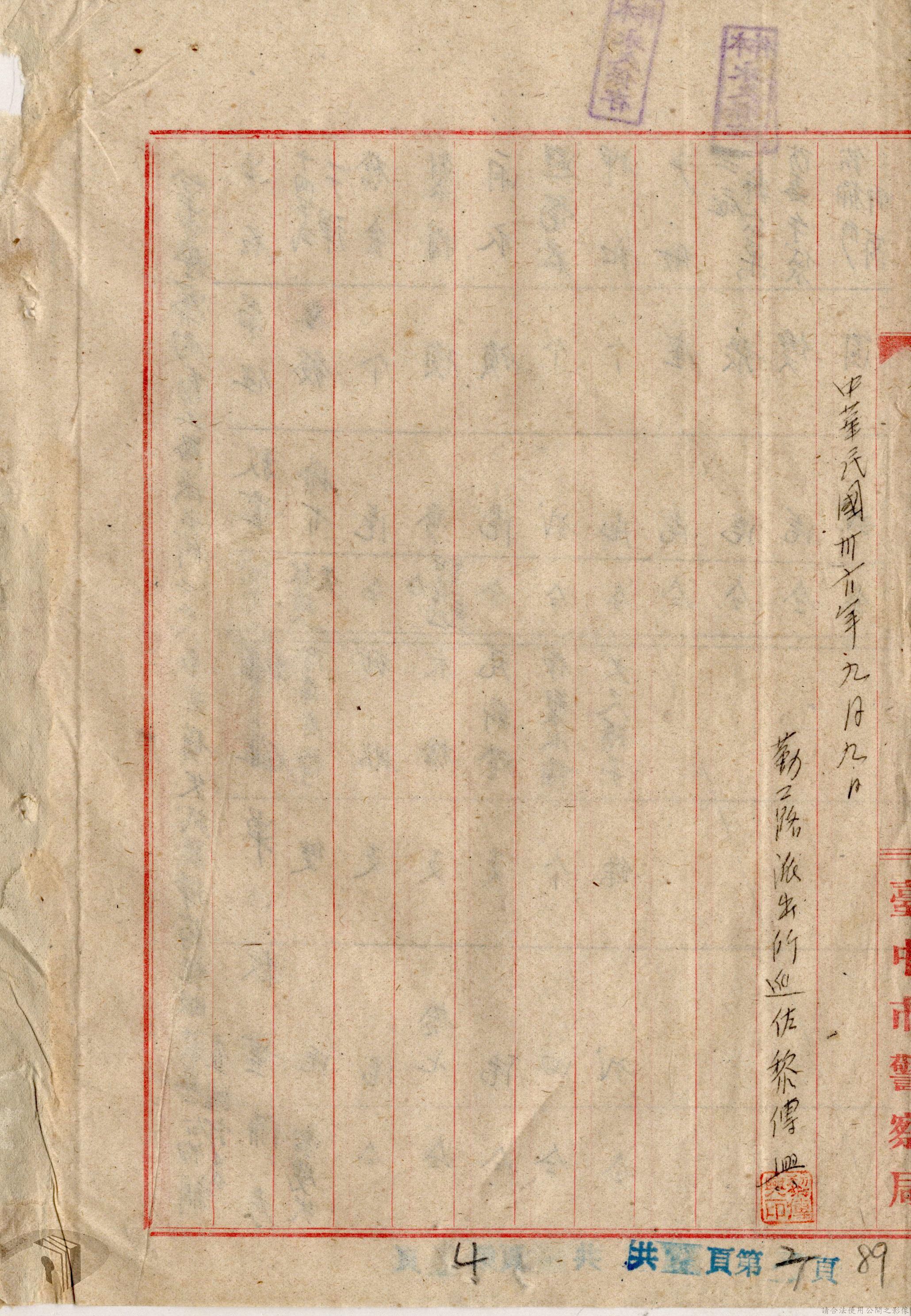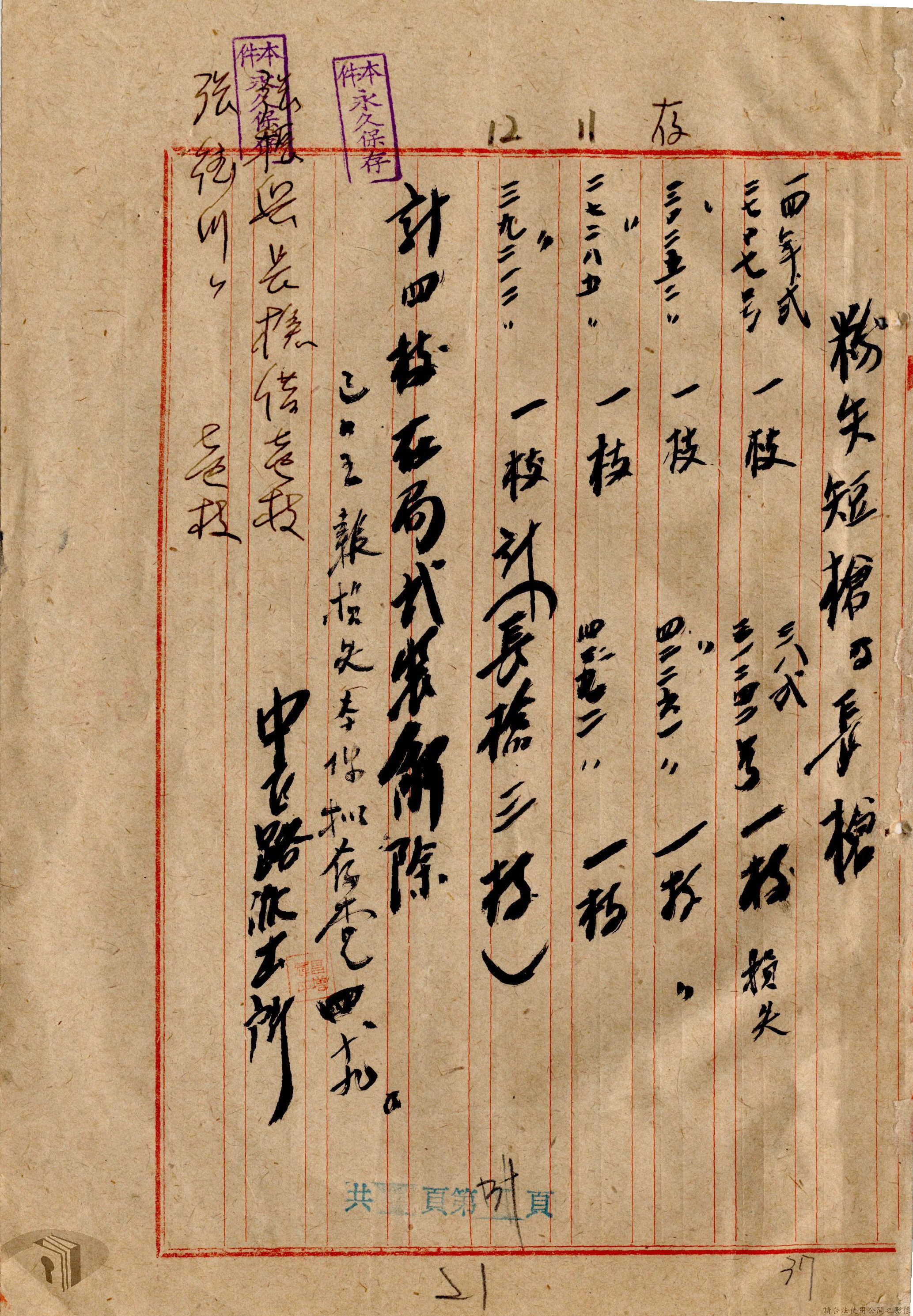 本案為36至37年間,臺中市政府警察局將各派出所二二八事件電訊器材、槍械、車輛損失調查表函送臺灣省行政長官公署警務處,並向臺灣省行政長官公署警務處及臺灣省警備司令部陳報有關追回二二八事件中借用槍械及各項公物損失情形。