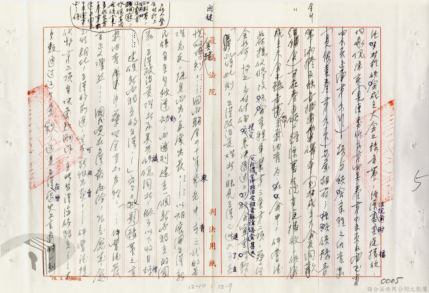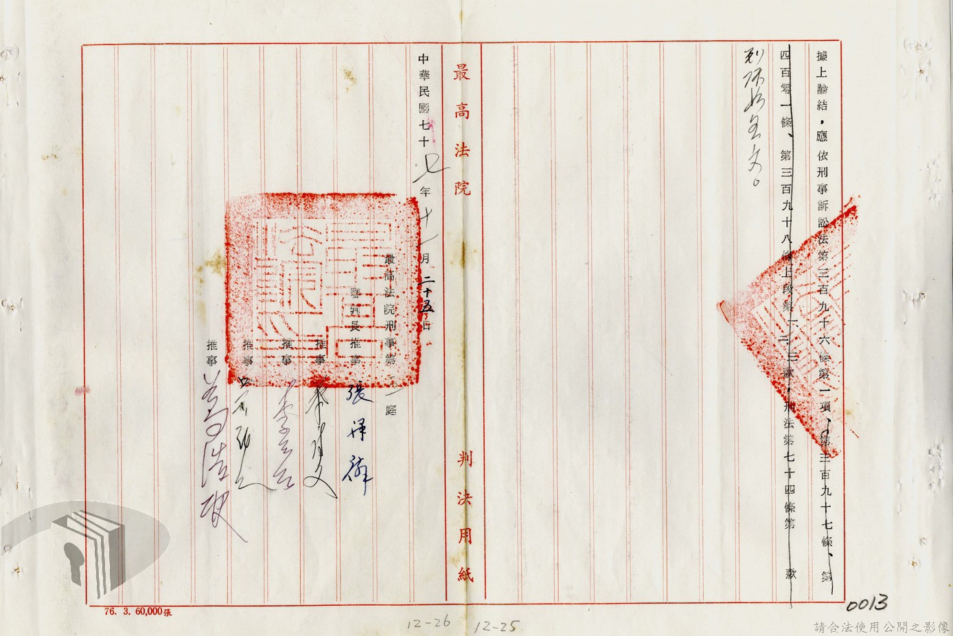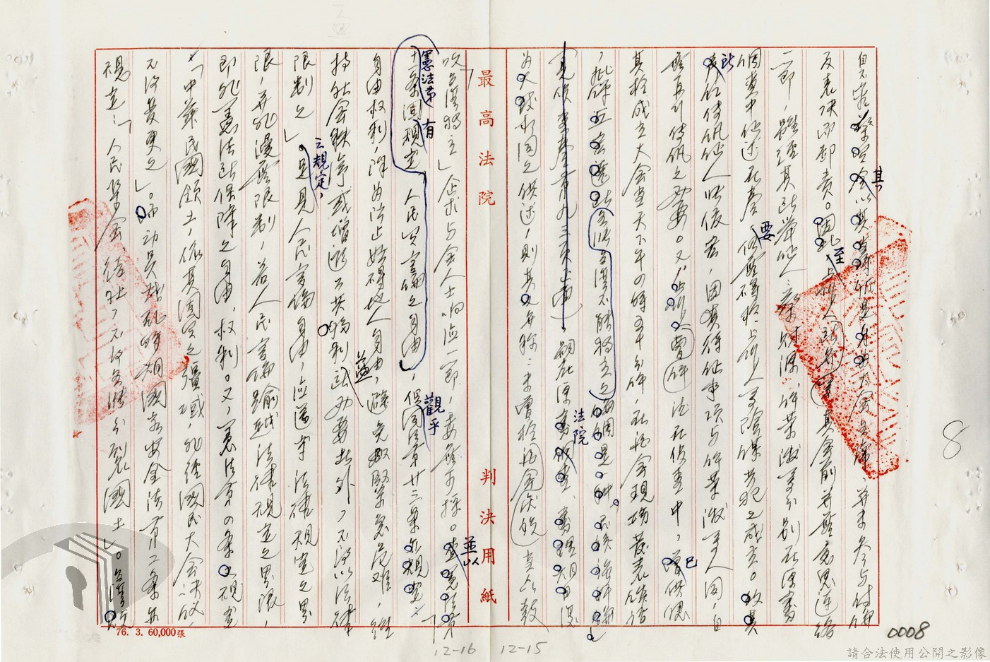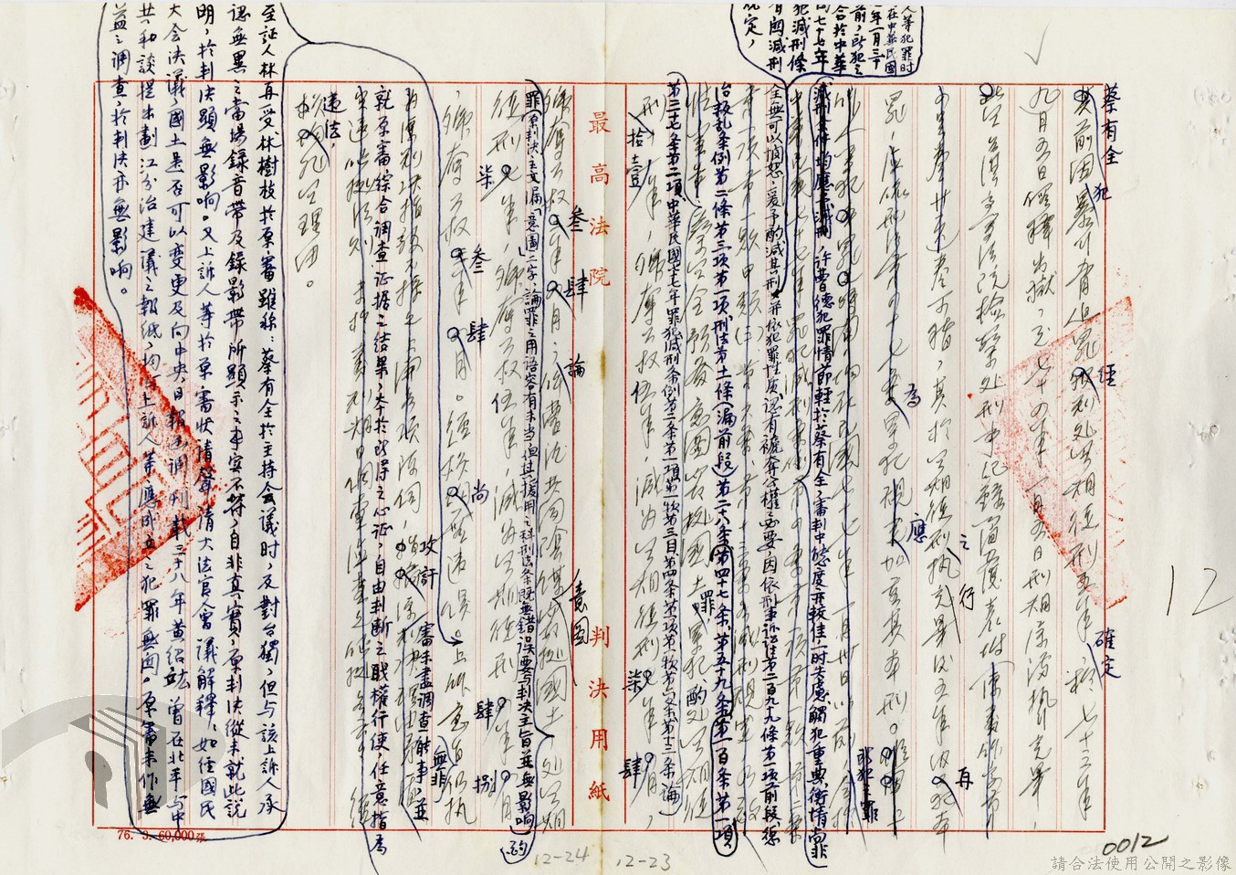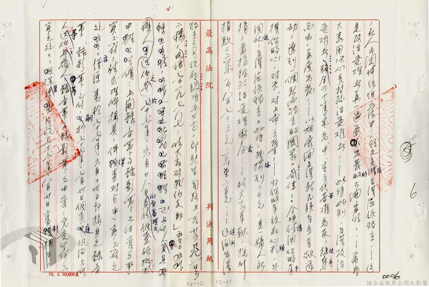 本案為77年間,多名被告因叛亂案件獲臺灣高等法院判決,後被告不服臺灣高等法院之判決結果,而向最高法院提起上訴,後獲最高法院撤銷原判決,發回臺灣高等法院及予以駁回之判決,並附上說明理由。附最高法院判決書。