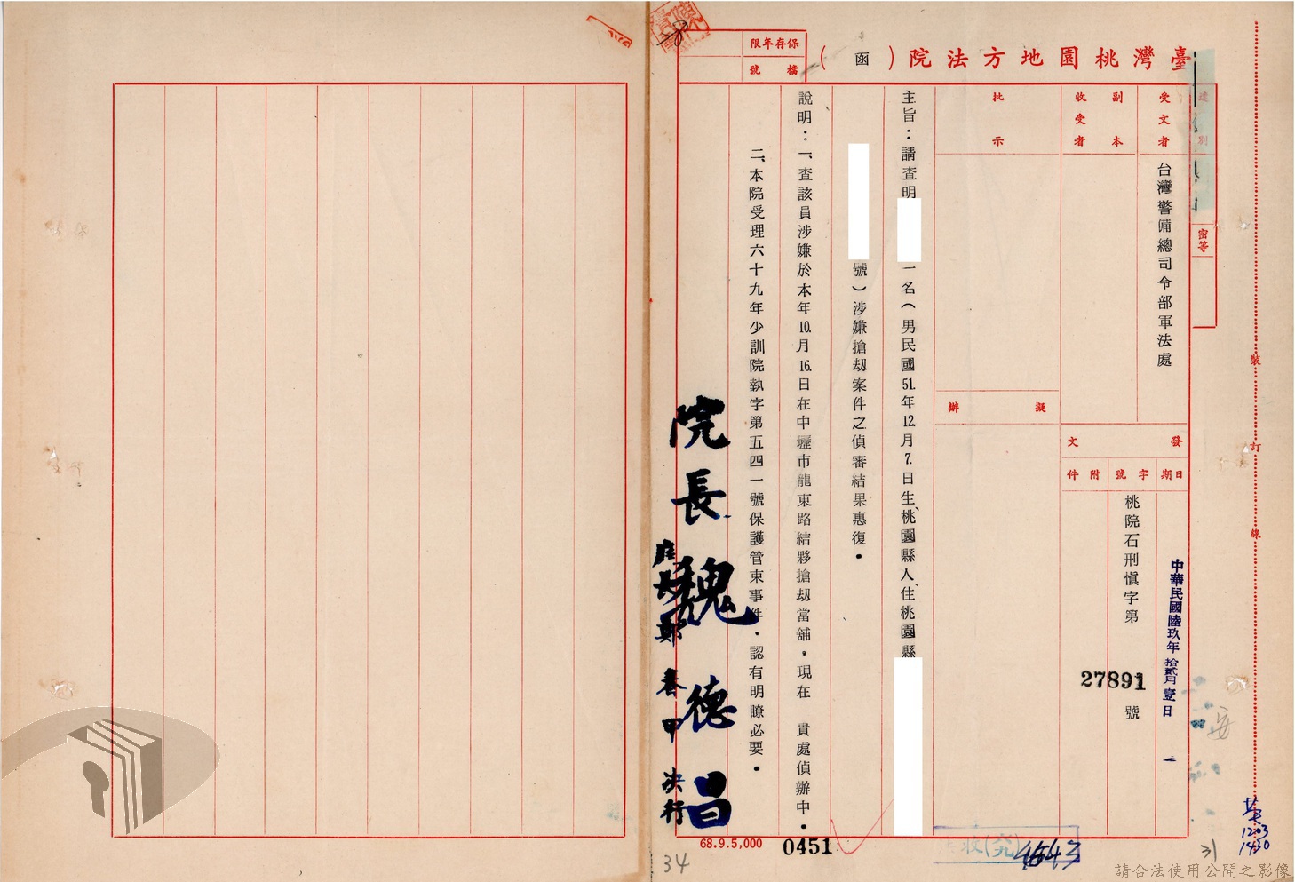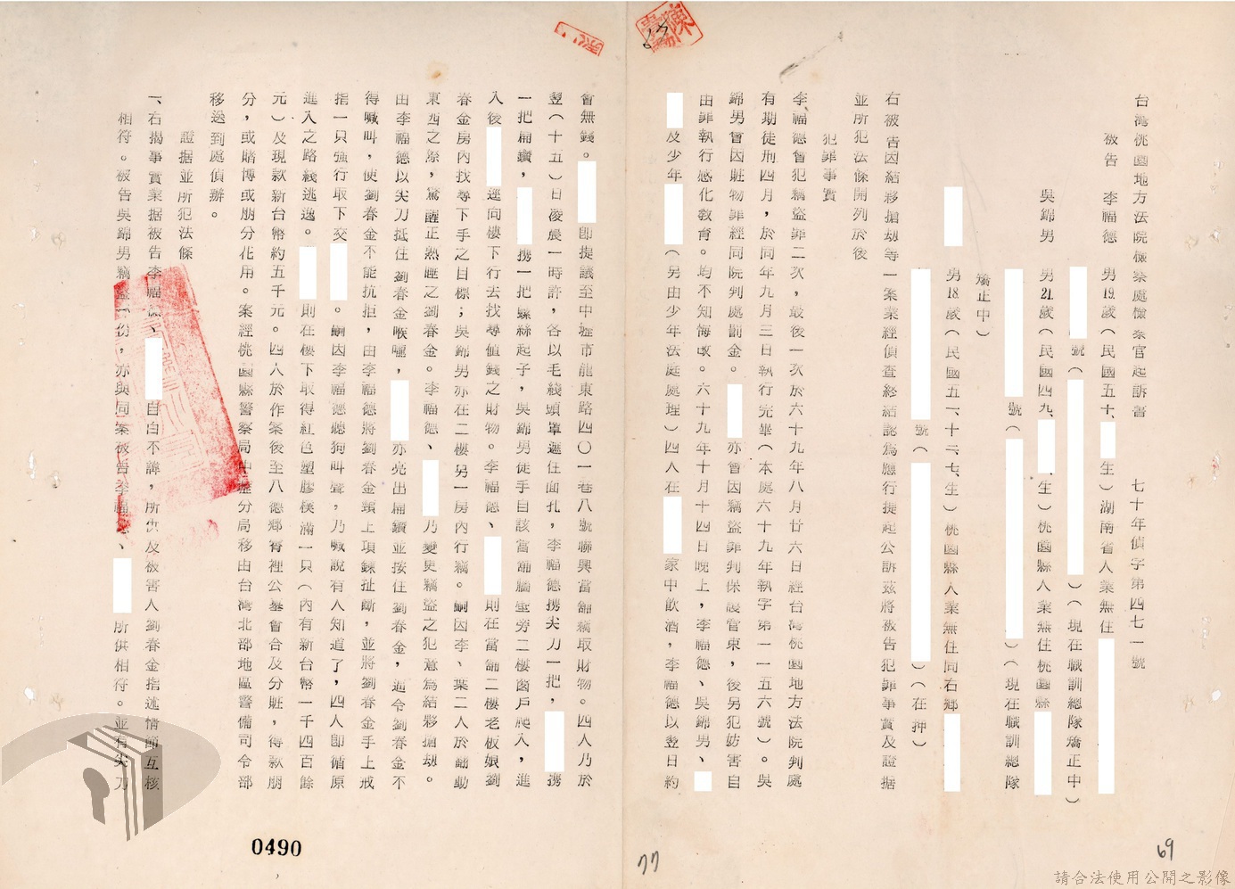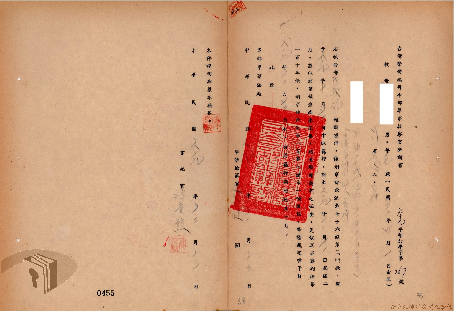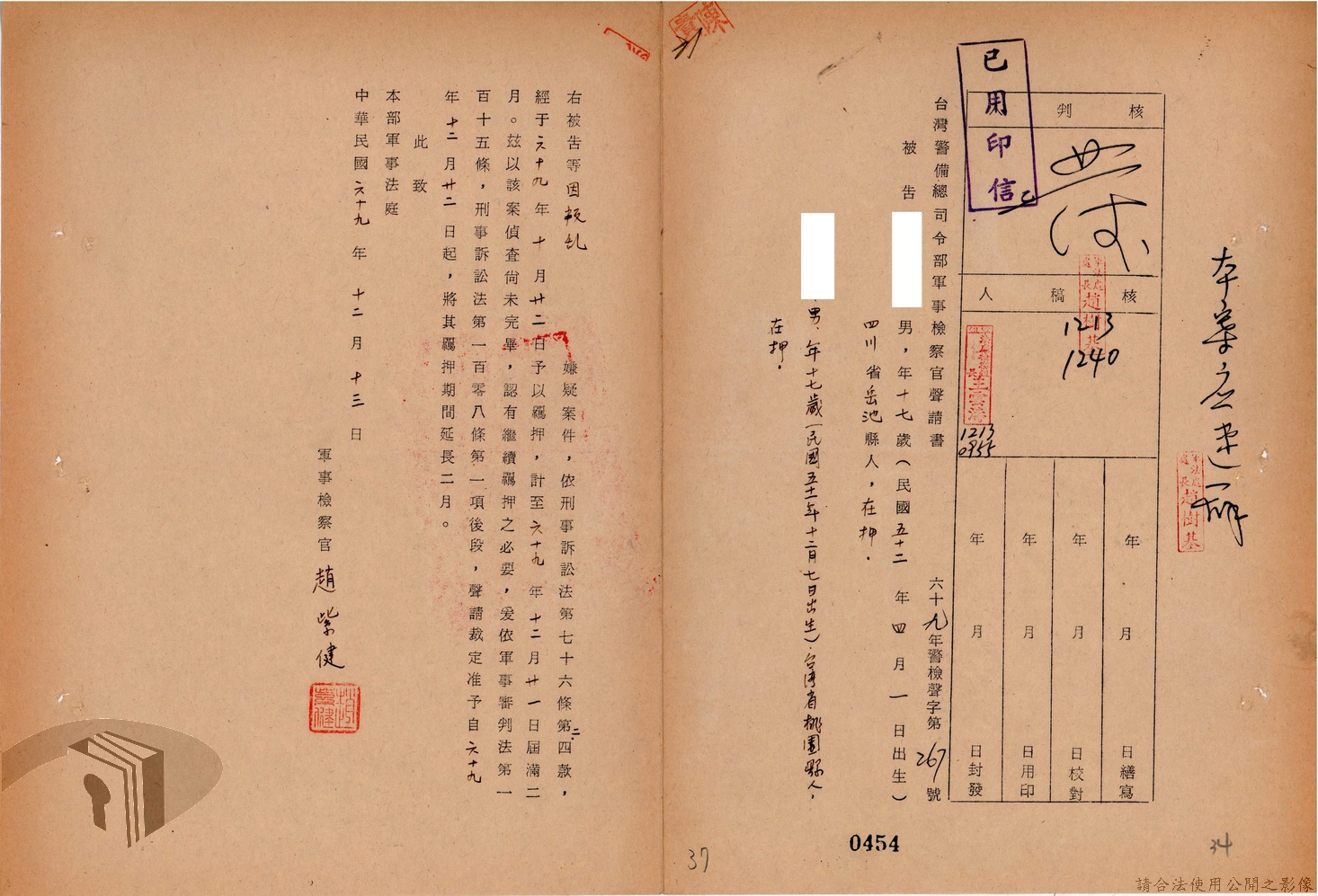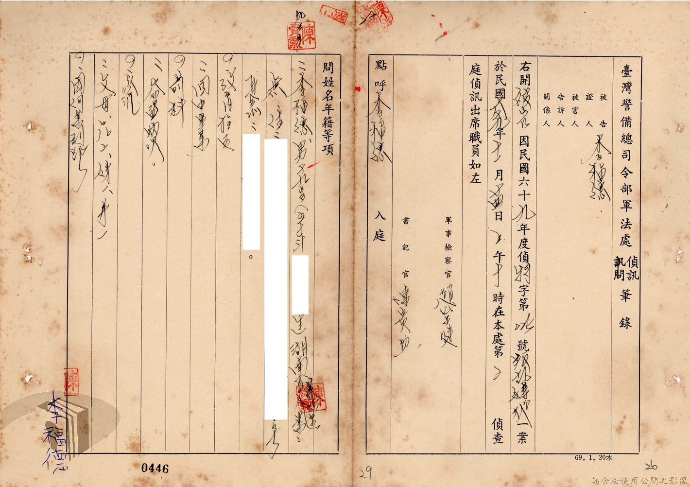 本案為69至70年間,臺灣北部地區警備司令部陳送民眾涉案偵查資料給臺灣警備總司令部,後經警總偵查終結,予以不起訴處分,因被告另涉及刑事案件部分,北警部將其移送臺灣桃園地方法院檢察處偵辦。附偵訊筆錄、不起訴處分書等文件資料。
