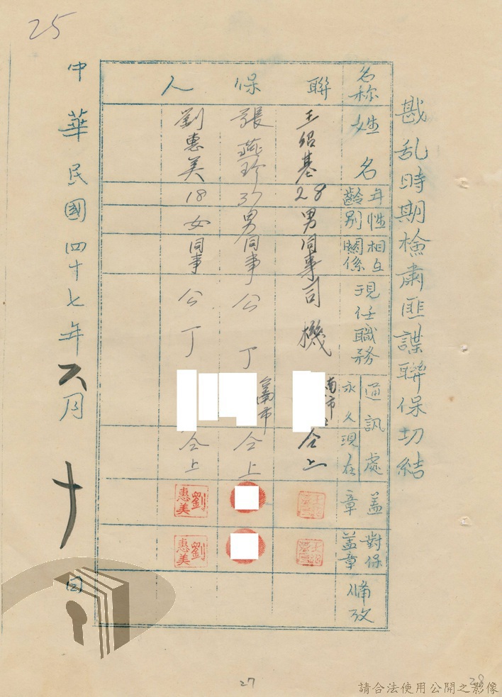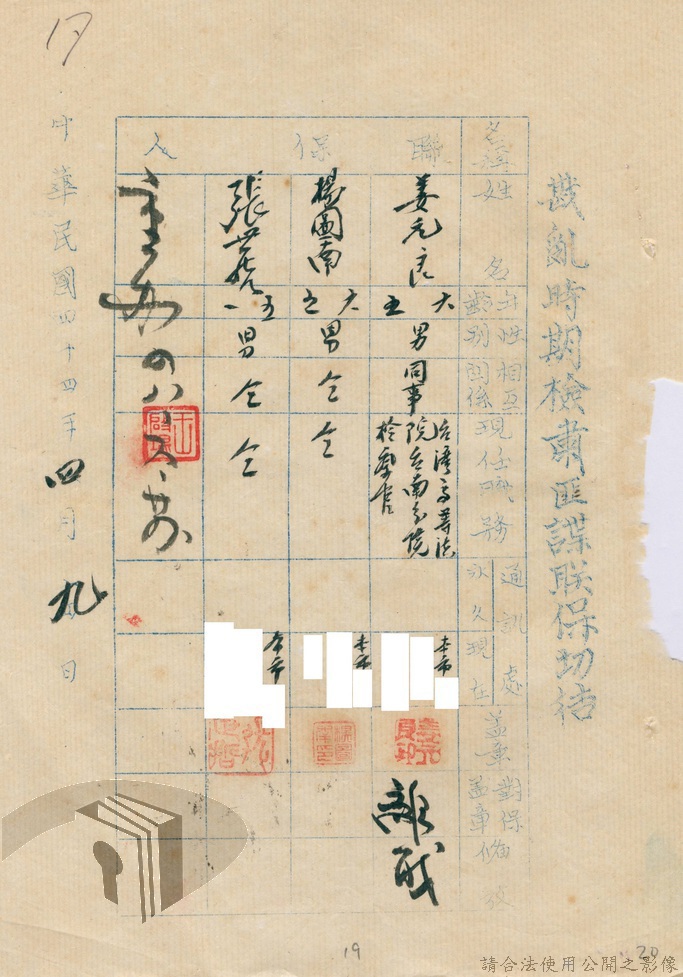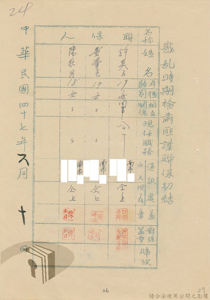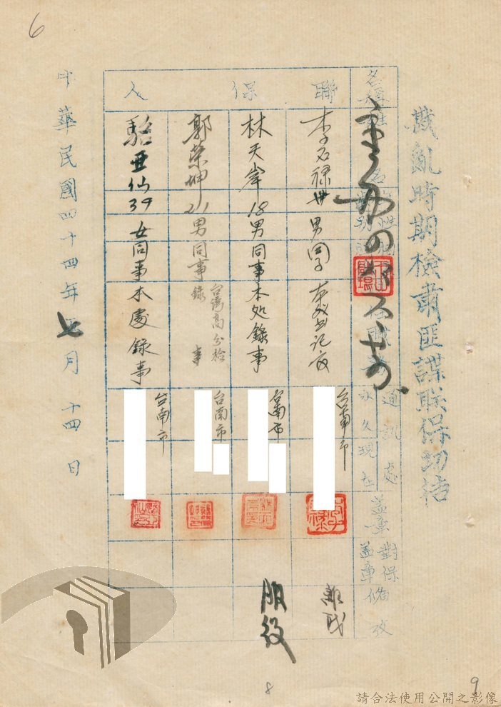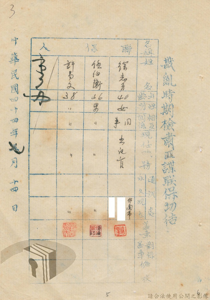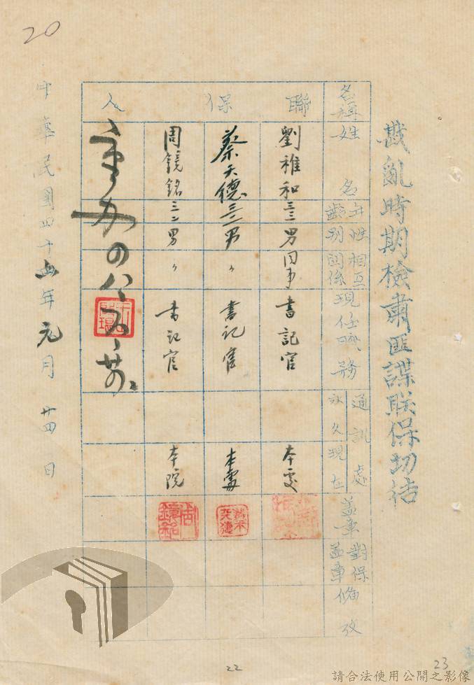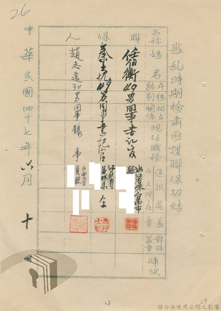 本案為48年間,臺灣高等法院檢察處檢送該處員工聯保切結注意事項予臺灣高等法院臺南分院首席檢察官參辦,並請其將第一次聯保切結清查工作於限定期間內完成。附戡亂時期檢肅匪諜聯保切結、聯保切結清查注意事項。