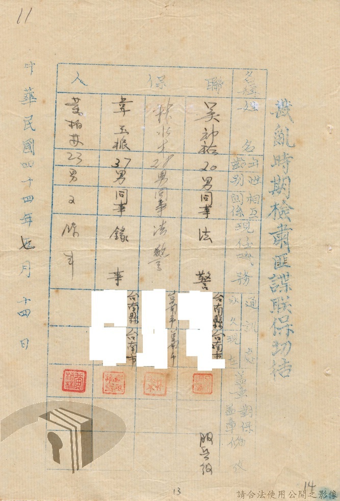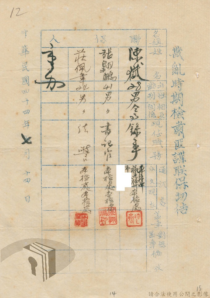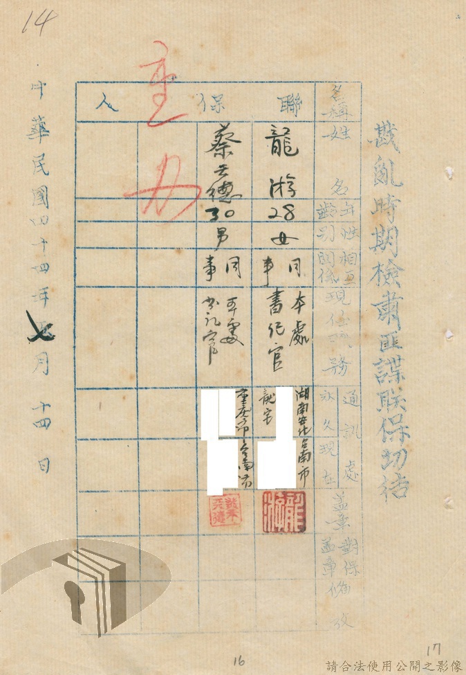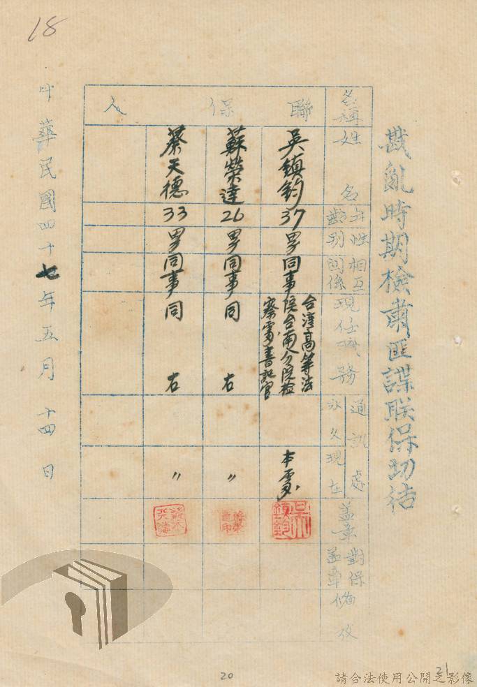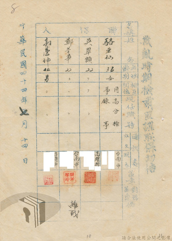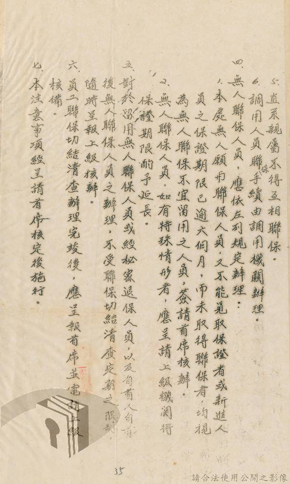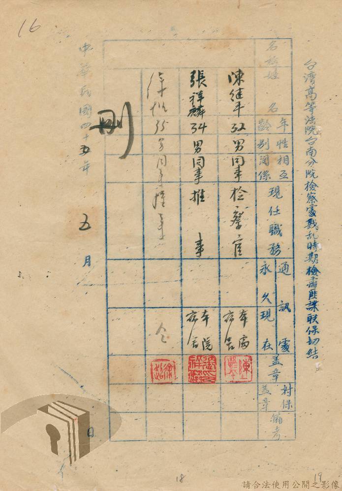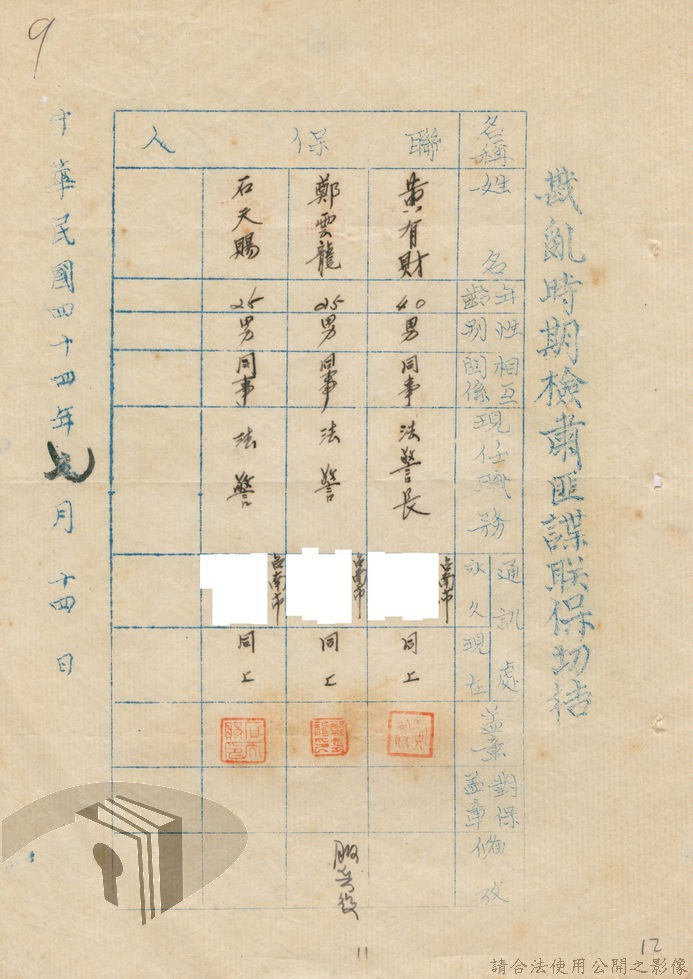 本案為48年間,臺灣高等法院檢察處檢送該處員工聯保切結注意事項予臺灣高等法院臺南分院首席檢察官參辦,並請其將第一次聯保切結清查工作於限定期間內完成。附戡亂時期檢肅匪諜聯保切結、聯保切結清查注意事項。