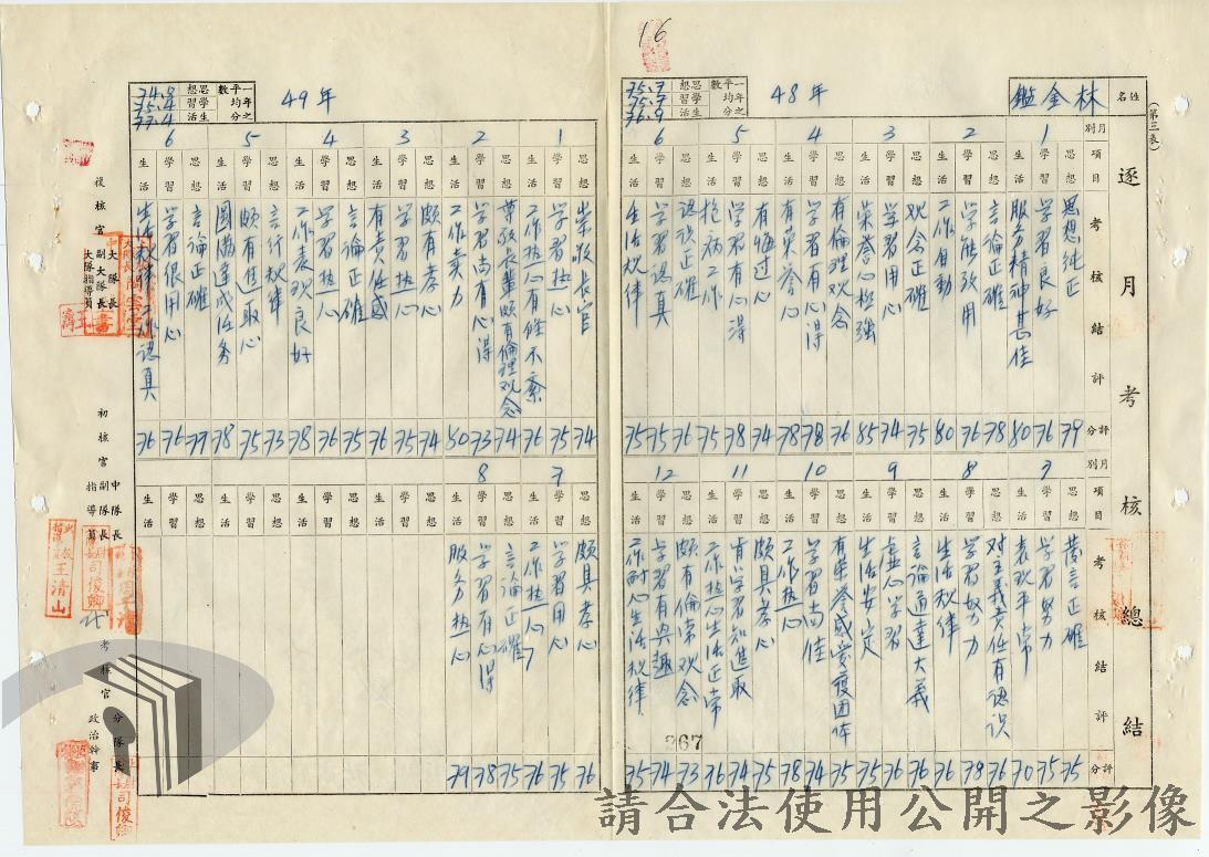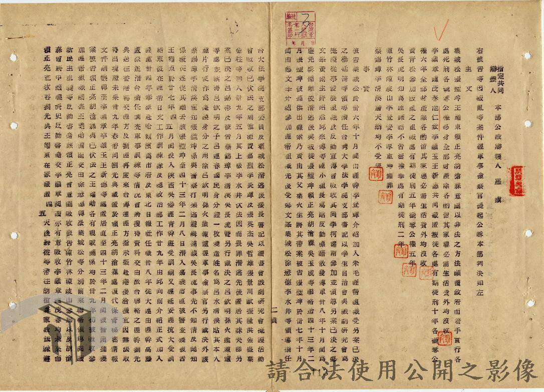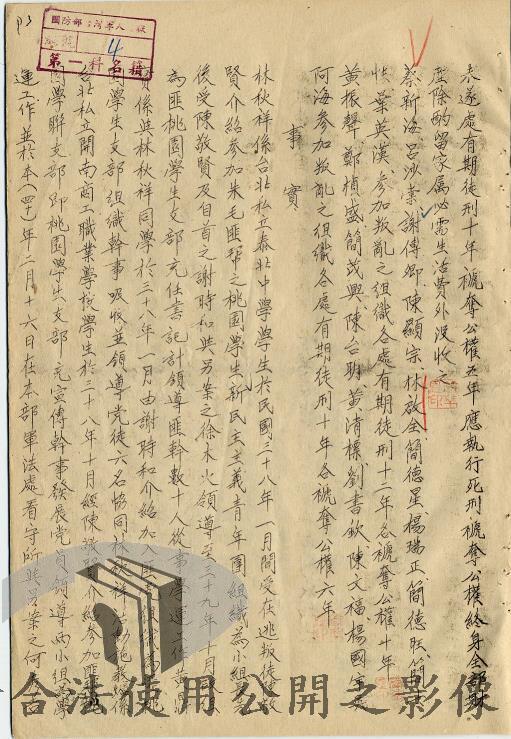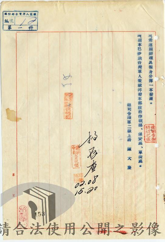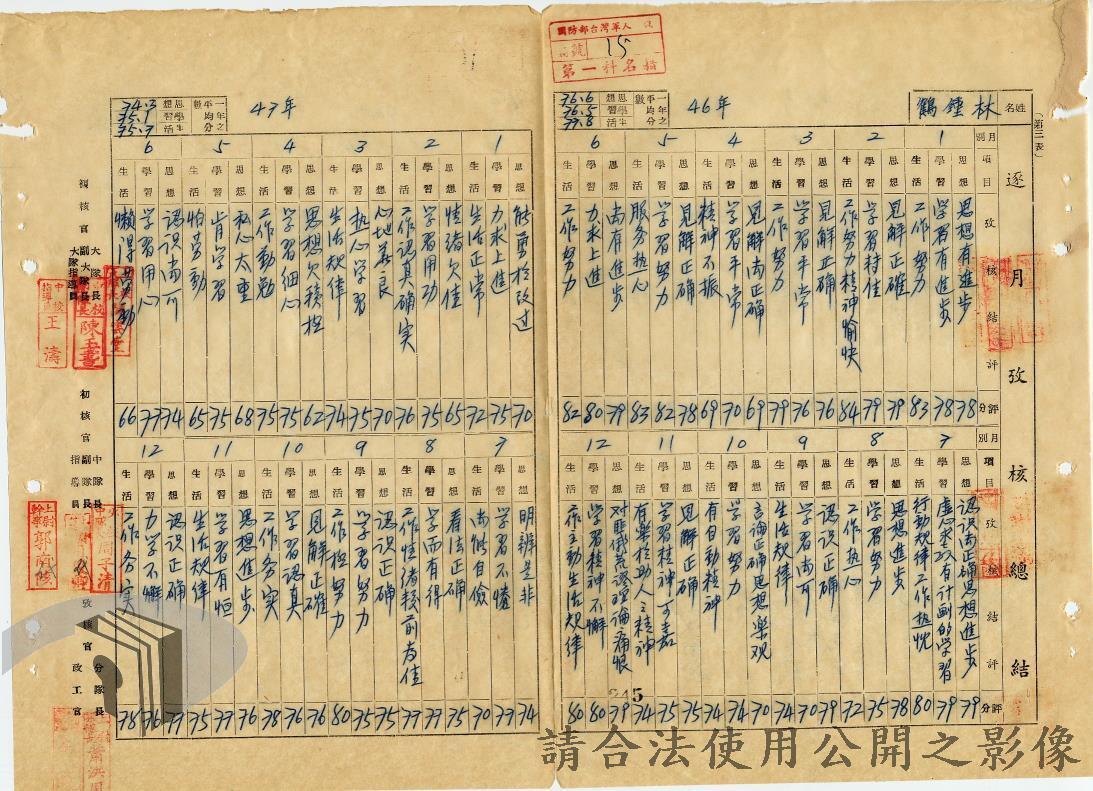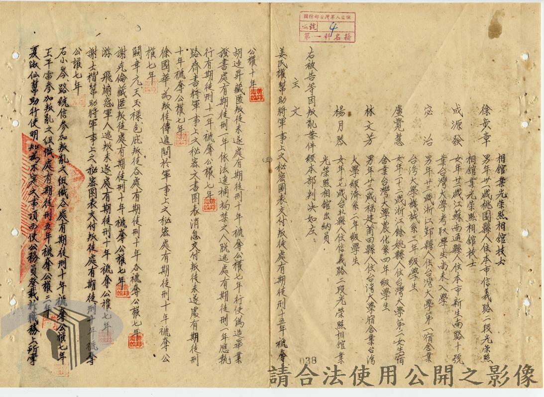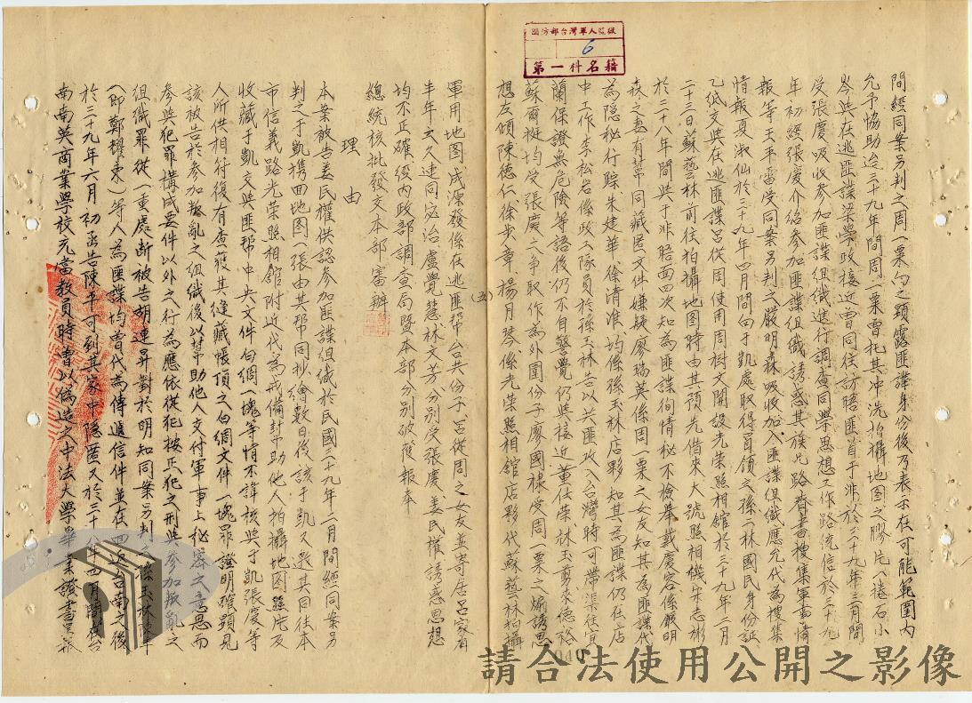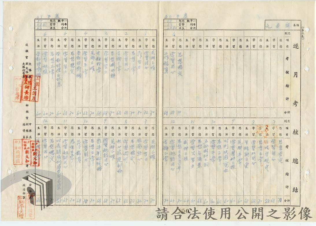 本案為39至53年間,民眾因案獲臺灣省保安司令部判決,臺灣省生產教育實驗所、臺灣警備總司令部新生訓導處後因受刑人刑期執行屆滿,且達到考核標準,函請國防部臺灣軍人監獄協助辦理出獄手續,軍人監獄函請國防部軍法局、國防部軍法覆判局轉陳該部准予具保開釋,並檢送開釋證書予生產教育實驗所、新生訓導處。附臺灣省生產教育實驗所新生考核表、國防部臺灣軍人監獄開釋證明書、臺灣省保安司令部判決書、臺灣省保安司令部軍法處執行書等文件資料。