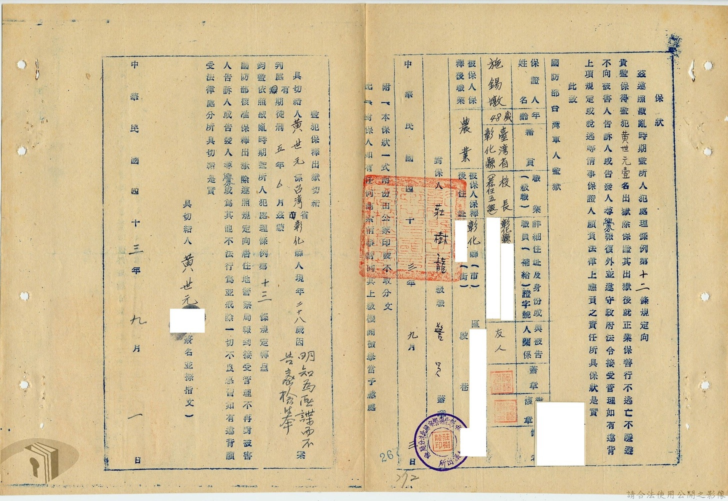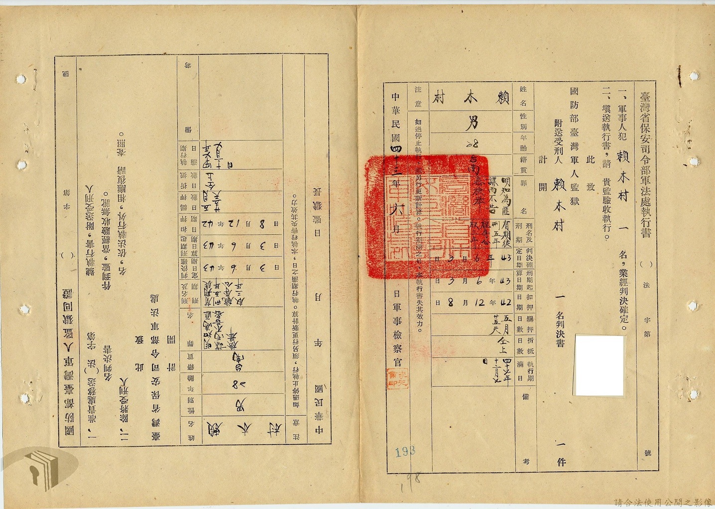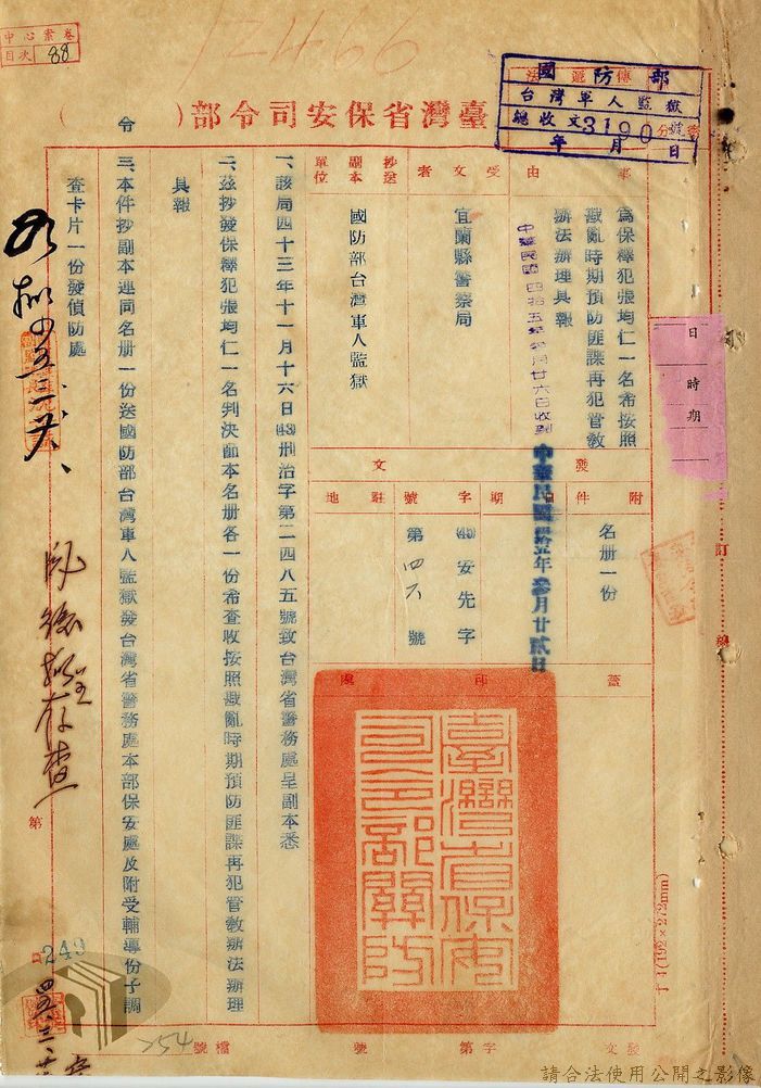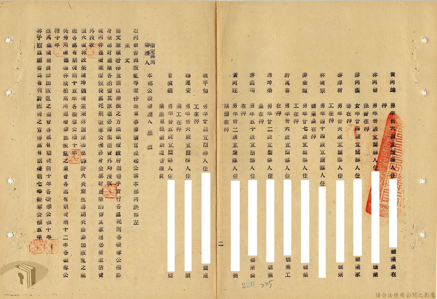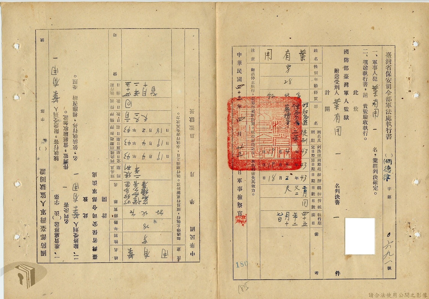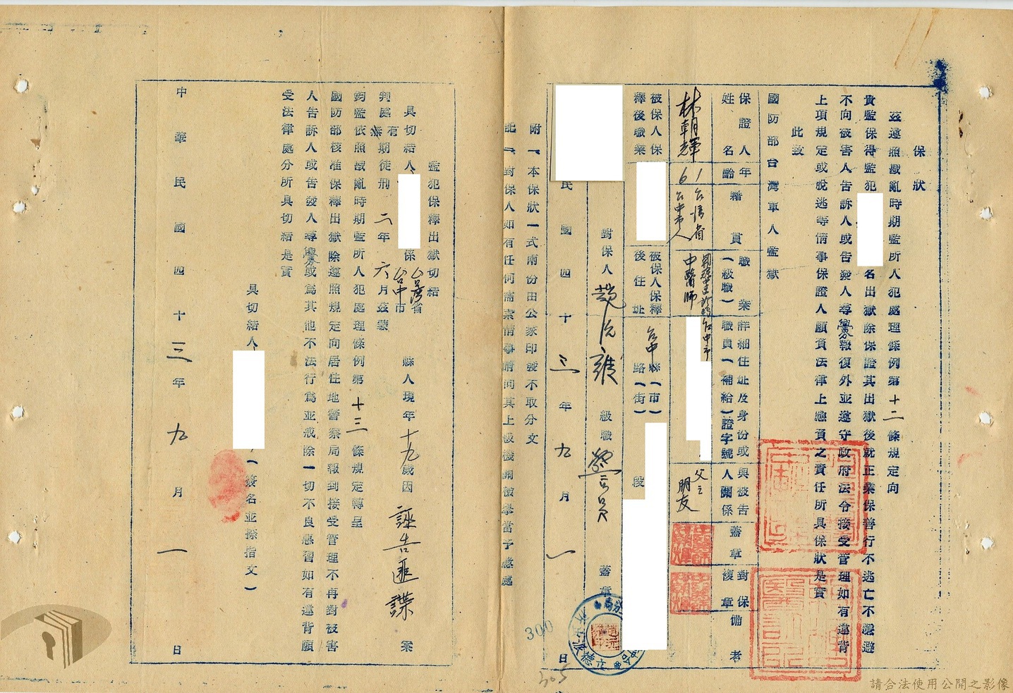 本案為40至55年間,有關民眾因涉嫌參與叛亂團體等案件,經臺灣省保安司令部等機關以叛亂罪判處有期徒刑並褫奪公權,以及後續發監執行與服刑期滿後之處置情形。全案包括臺灣省保安司令部等機關之判決書、執行書、新生考核表、證明書及受刑人出獄時填具之保證書等資料。