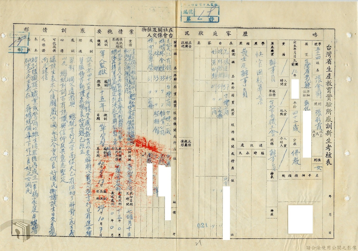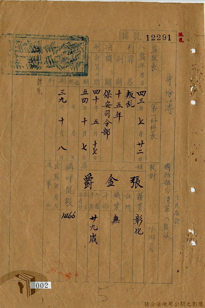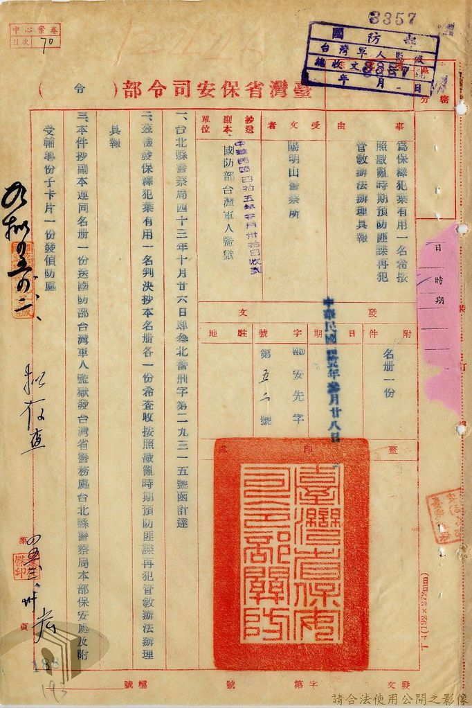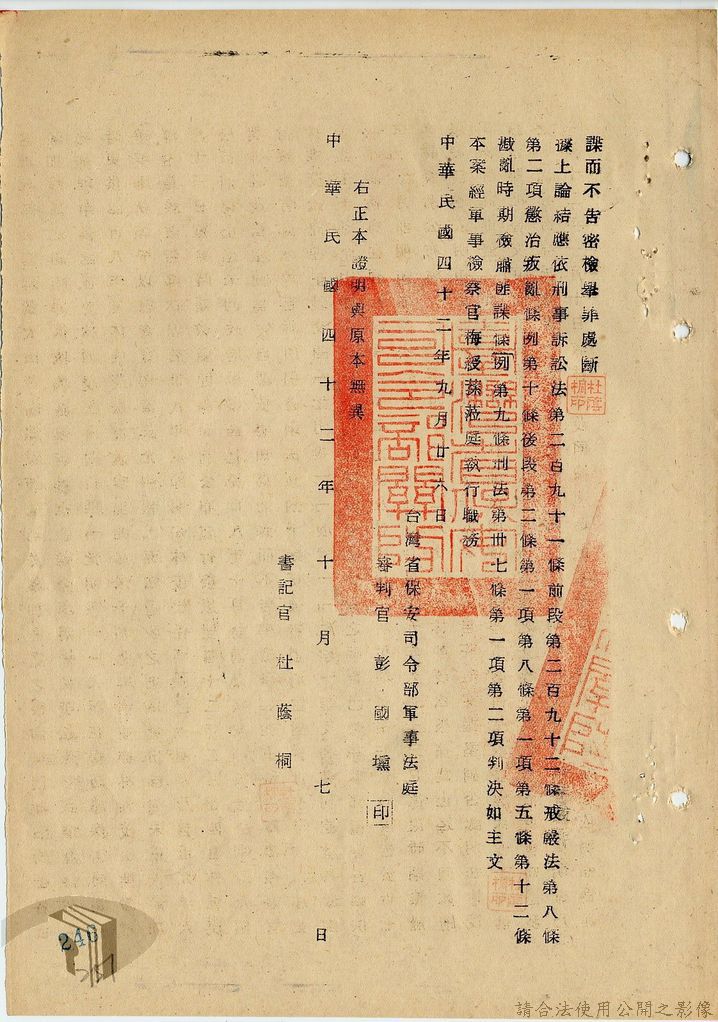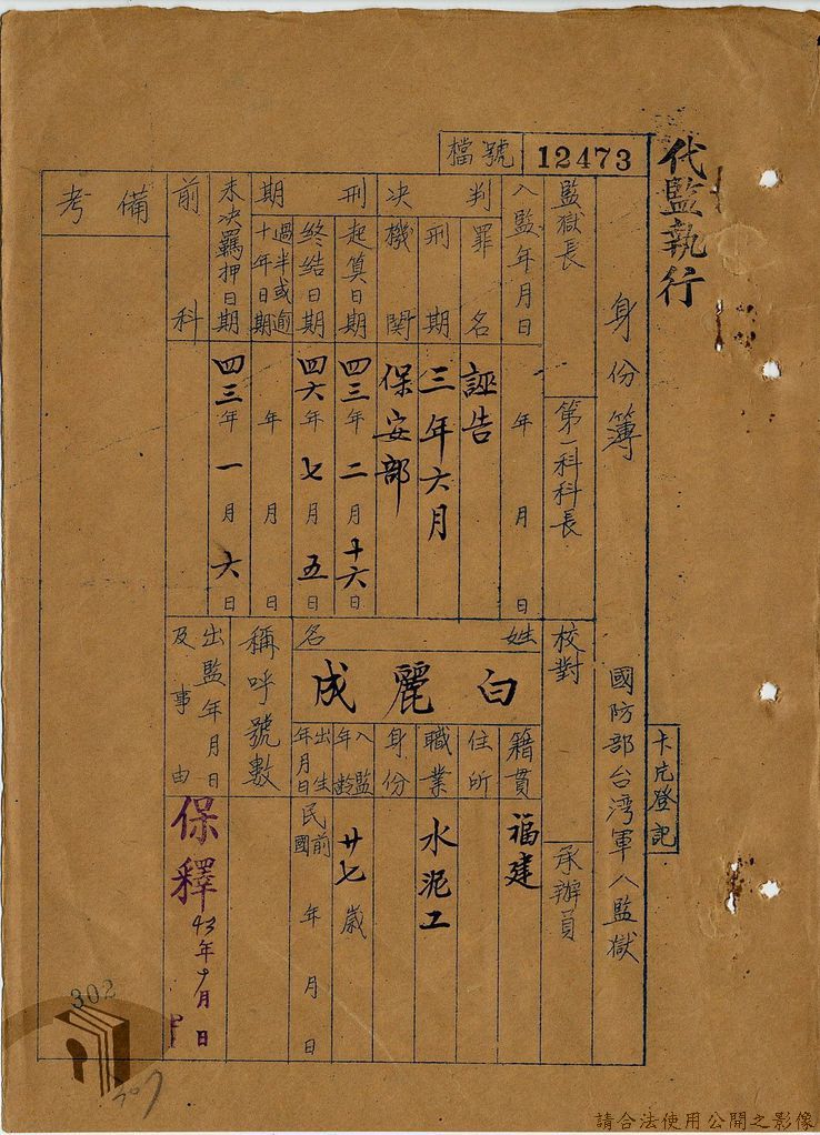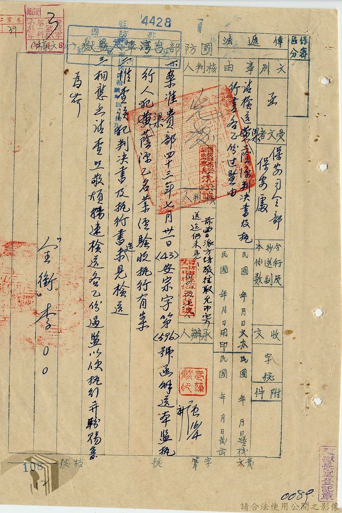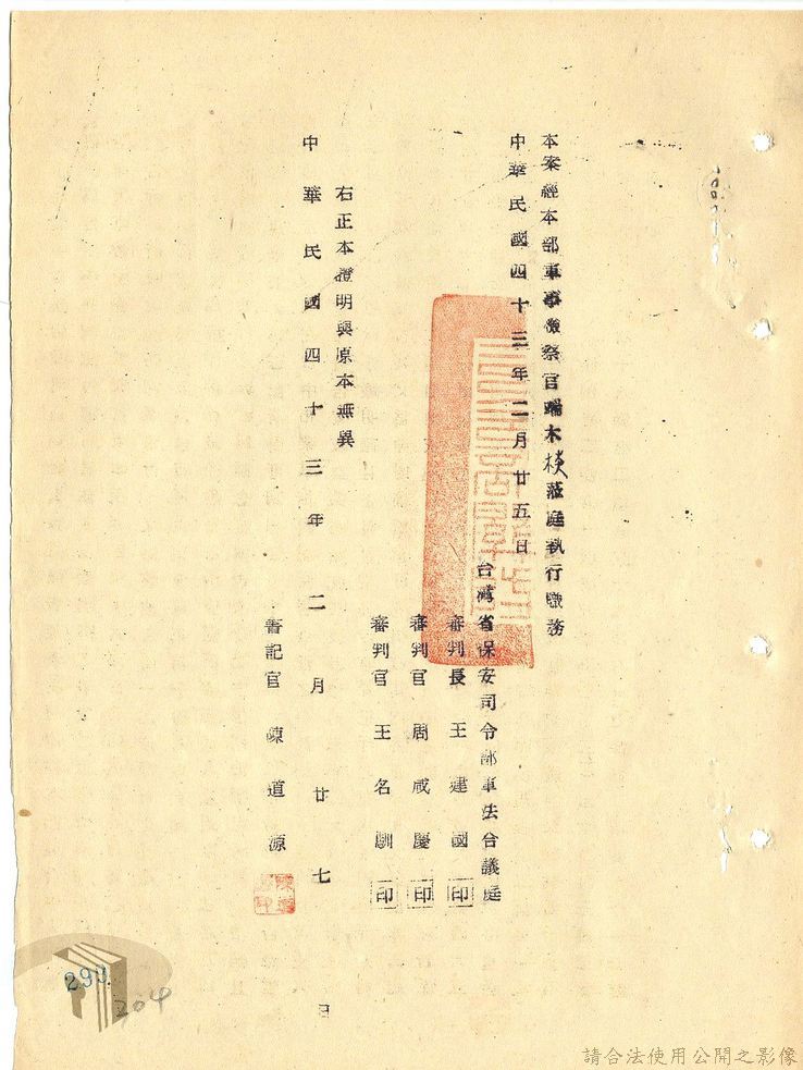 本案為40至55年間,有關民眾因涉嫌參與叛亂團體等案件,經臺灣省保安司令部等機關以叛亂罪判處有期徒刑並褫奪公權,以及後續發監執行與服刑期滿後之處置情形。全案包括臺灣省保安司令部等機關之判決書、執行書、新生考核表、證明書及受刑人出獄時填具之保證書等資料。