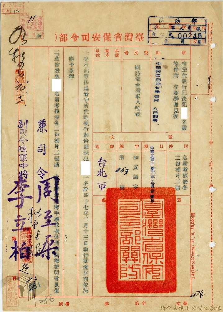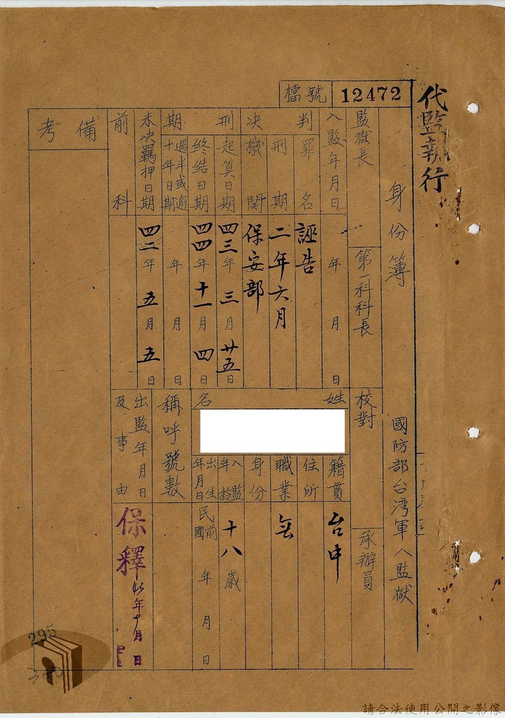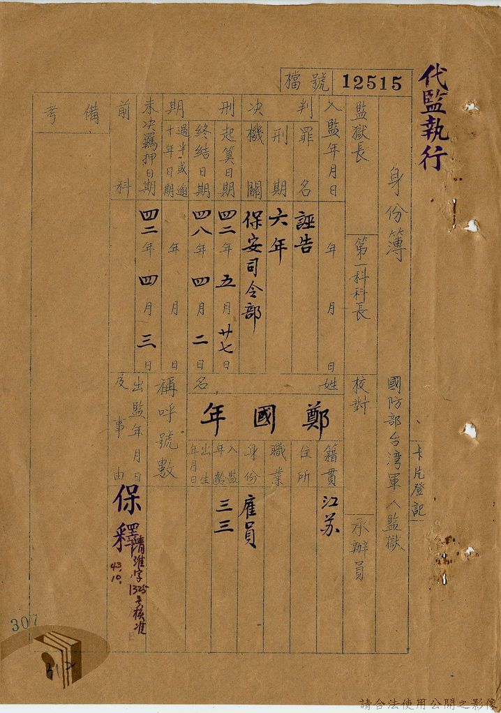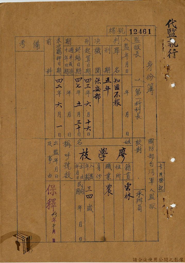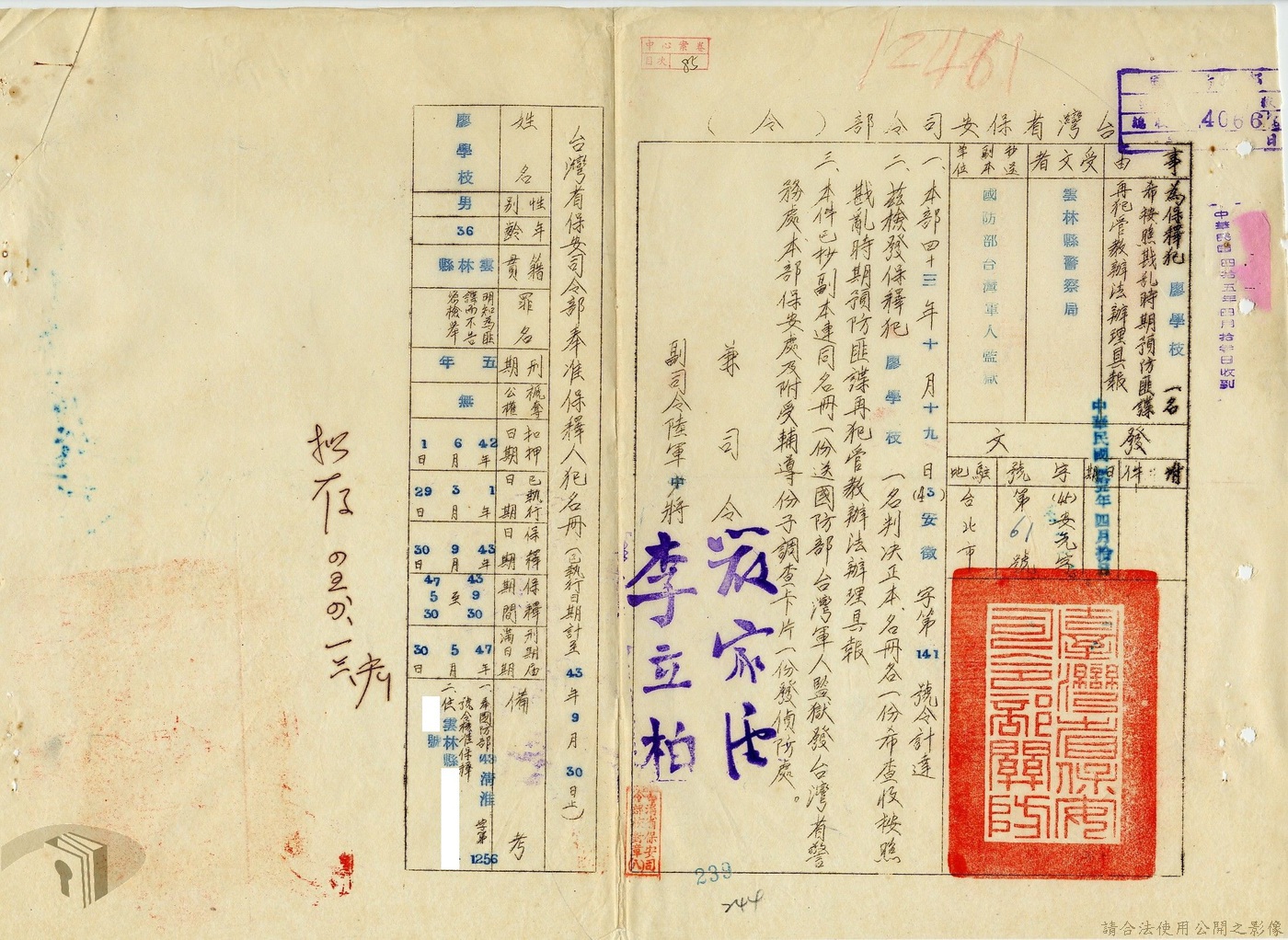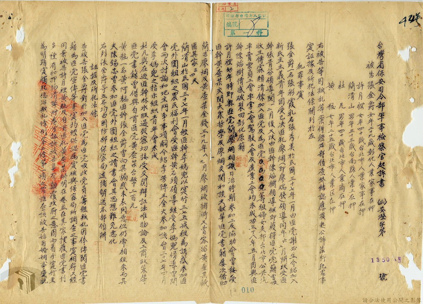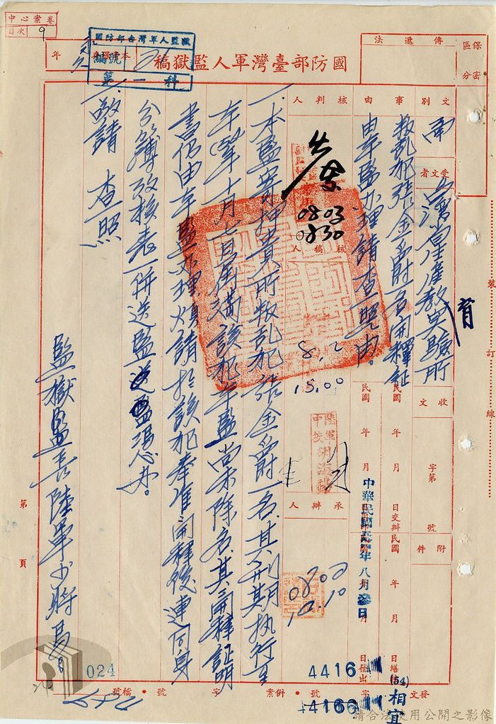 本案為40至55年間,有關民眾因涉嫌參與叛亂團體等案件,經臺灣省保安司令部等機關以叛亂罪判處有期徒刑並褫奪公權,以及後續發監執行與服刑期滿後之處置情形。全案包括臺灣省保安司令部等機關之判決書、執行書、新生考核表、證明書及受刑人出獄時填具之保證書等資料。