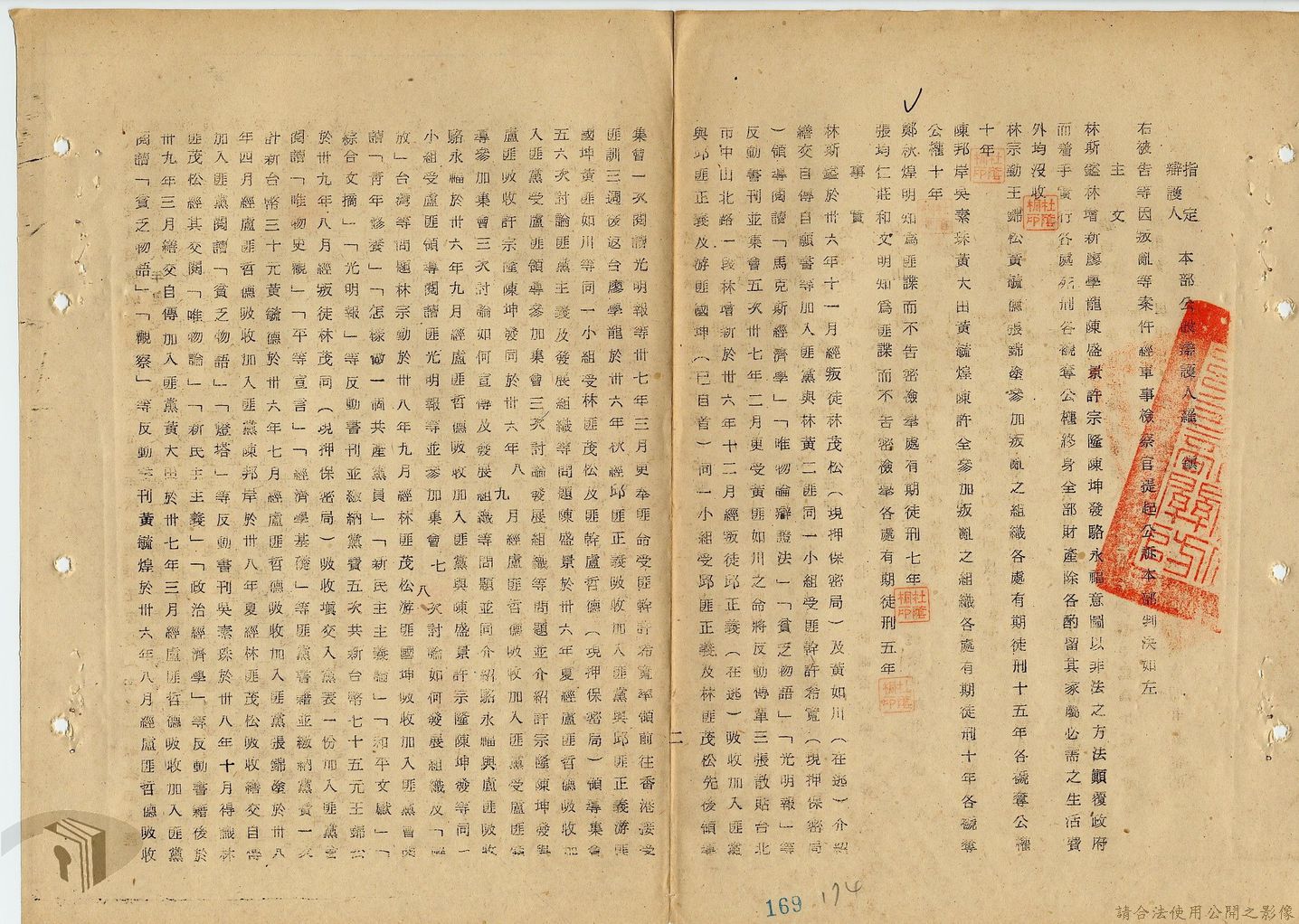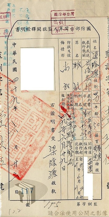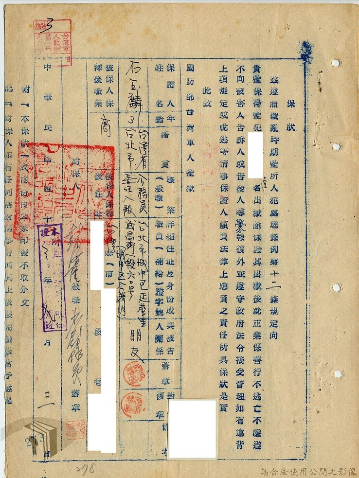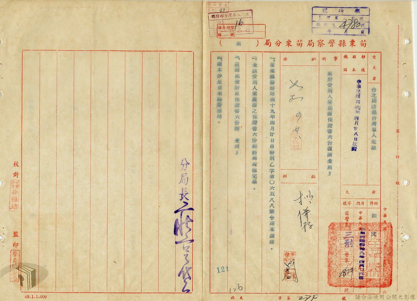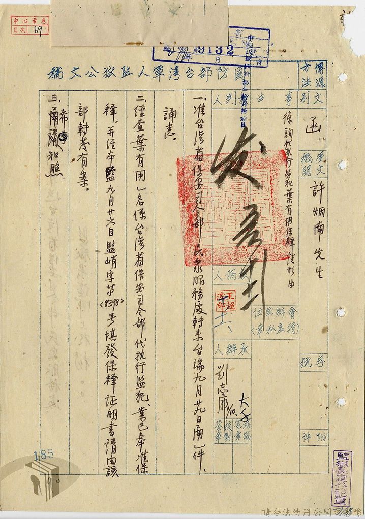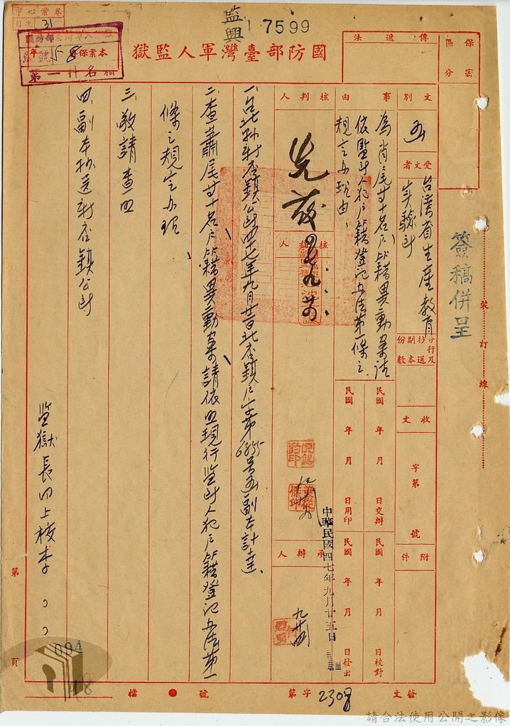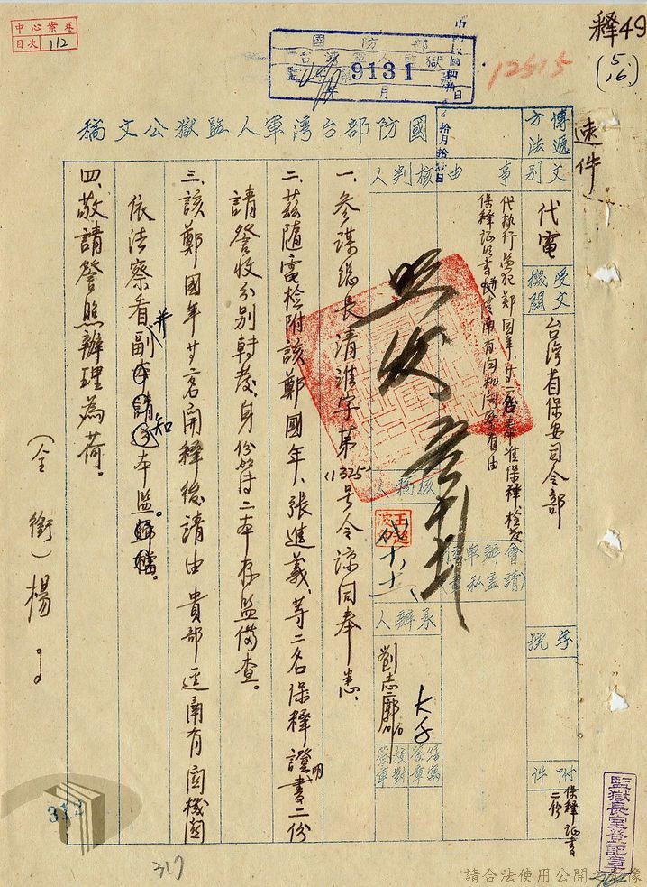 本案為40至55年間,有關民眾因涉嫌參與叛亂團體等案件,經臺灣省保安司令部等機關以叛亂罪判處有期徒刑並褫奪公權,以及後續發監執行與服刑期滿後之處置情形。全案包括臺灣省保安司令部等機關之判決書、執行書、新生考核表、證明書及受刑人出獄時填具之保證書等資料。