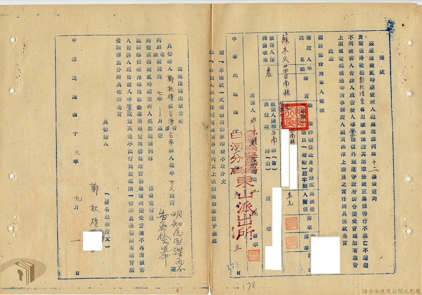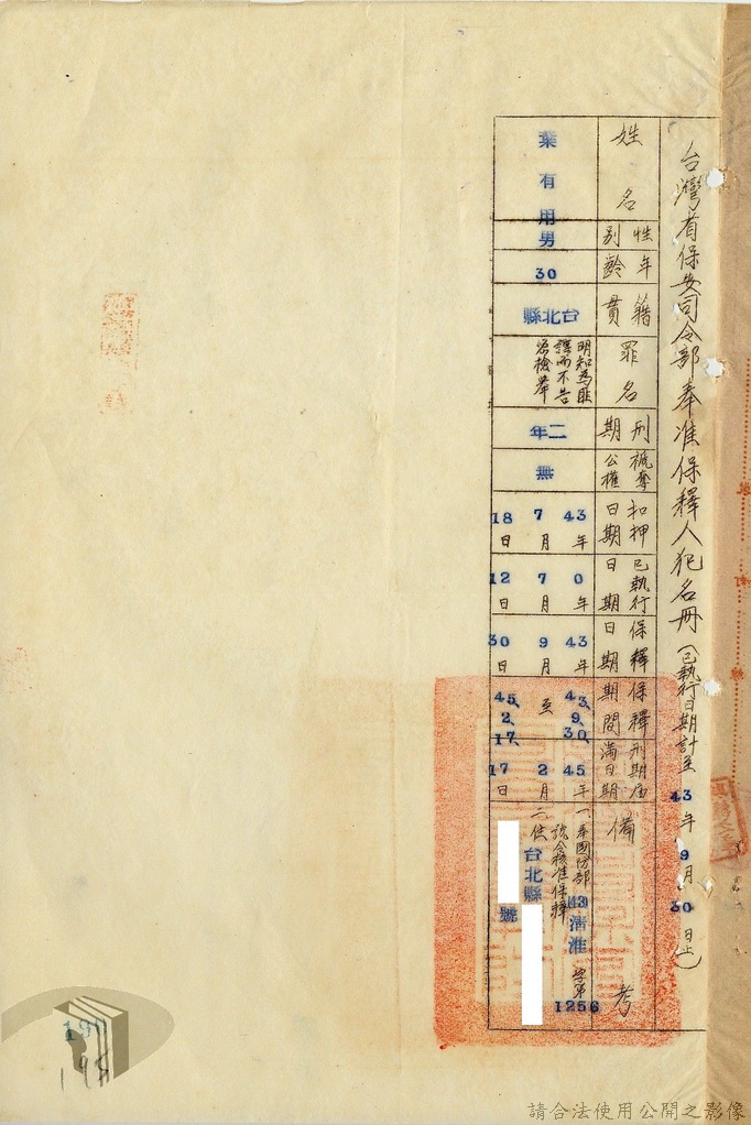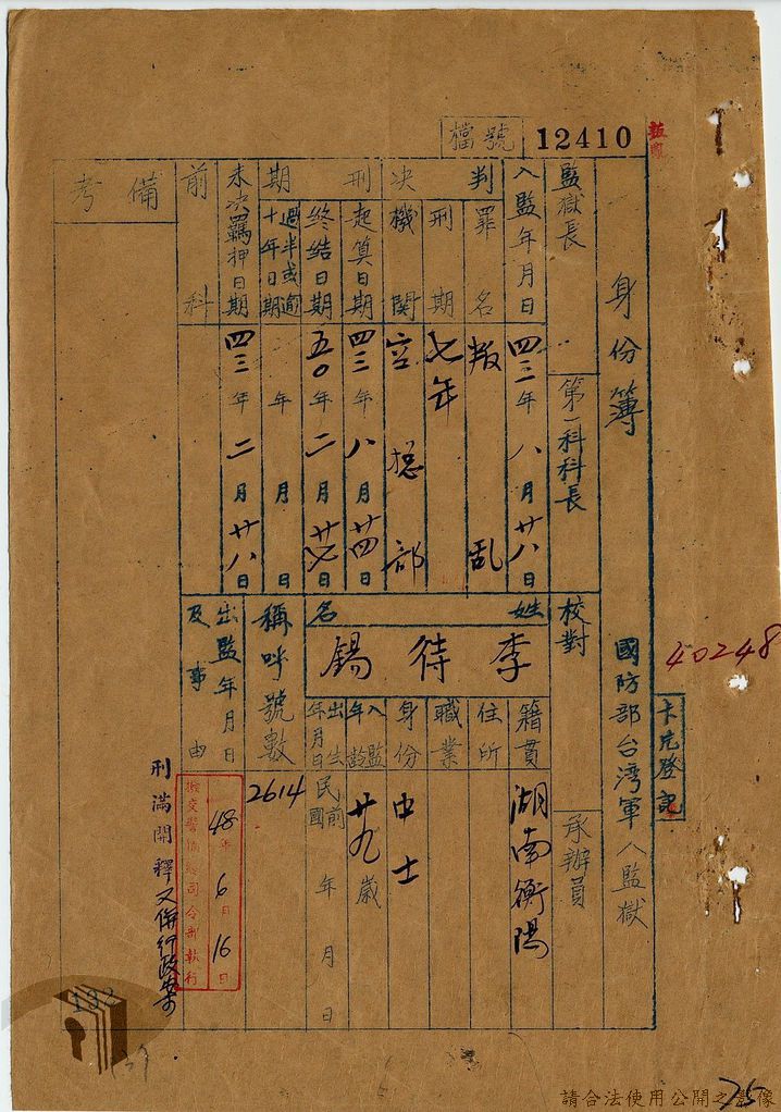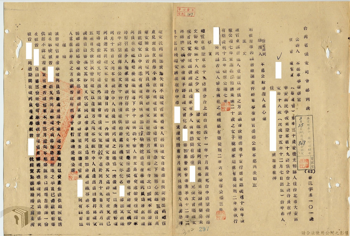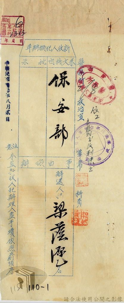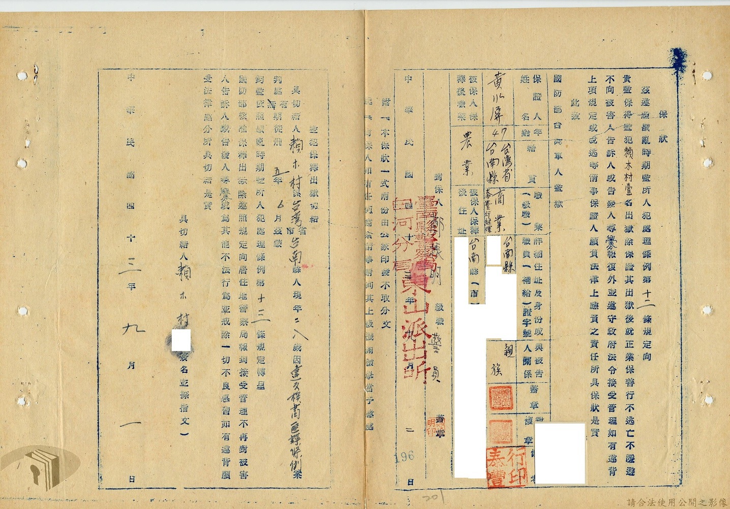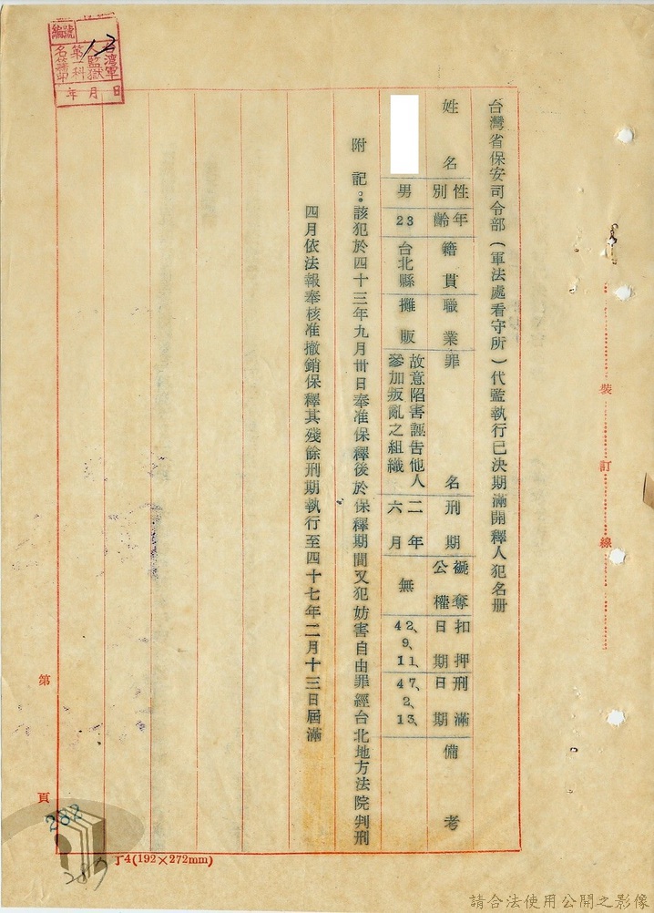 本案為40至55年間,有關民眾因涉嫌參與叛亂團體等案件,經臺灣省保安司令部等機關以叛亂罪判處有期徒刑並褫奪公權,以及後續發監執行與服刑期滿後之處置情形。全案包括臺灣省保安司令部等機關之判決書、執行書、新生考核表、證明書及受刑人出獄時填具之保證書等資料。