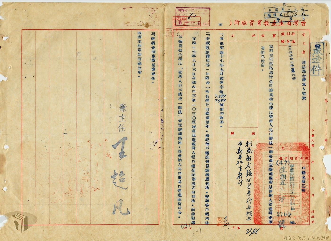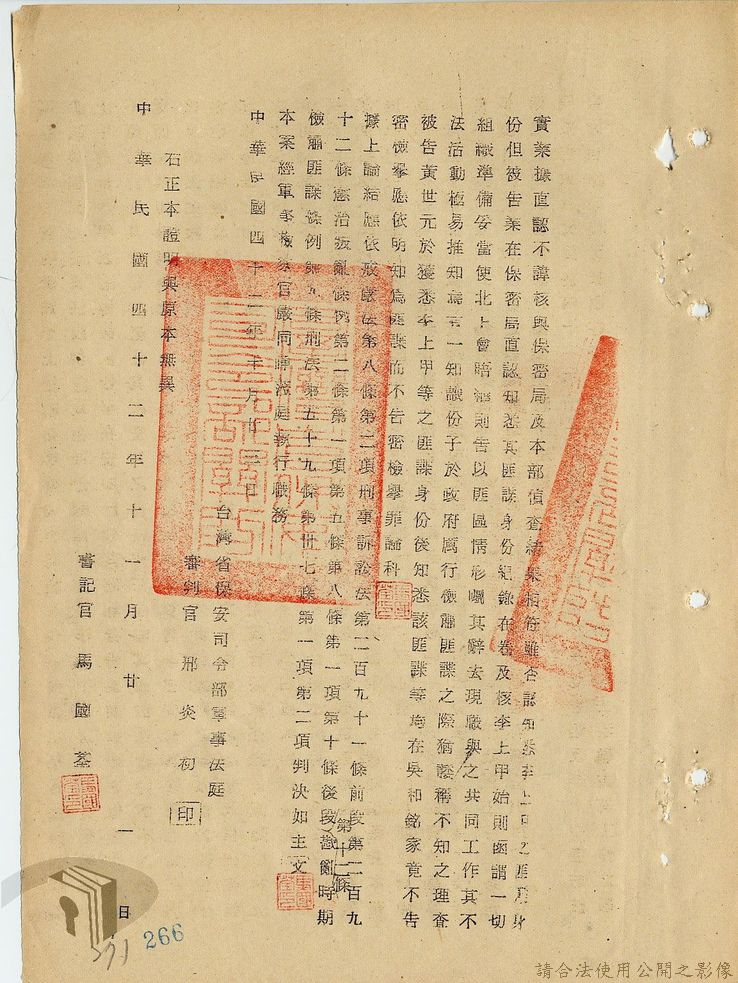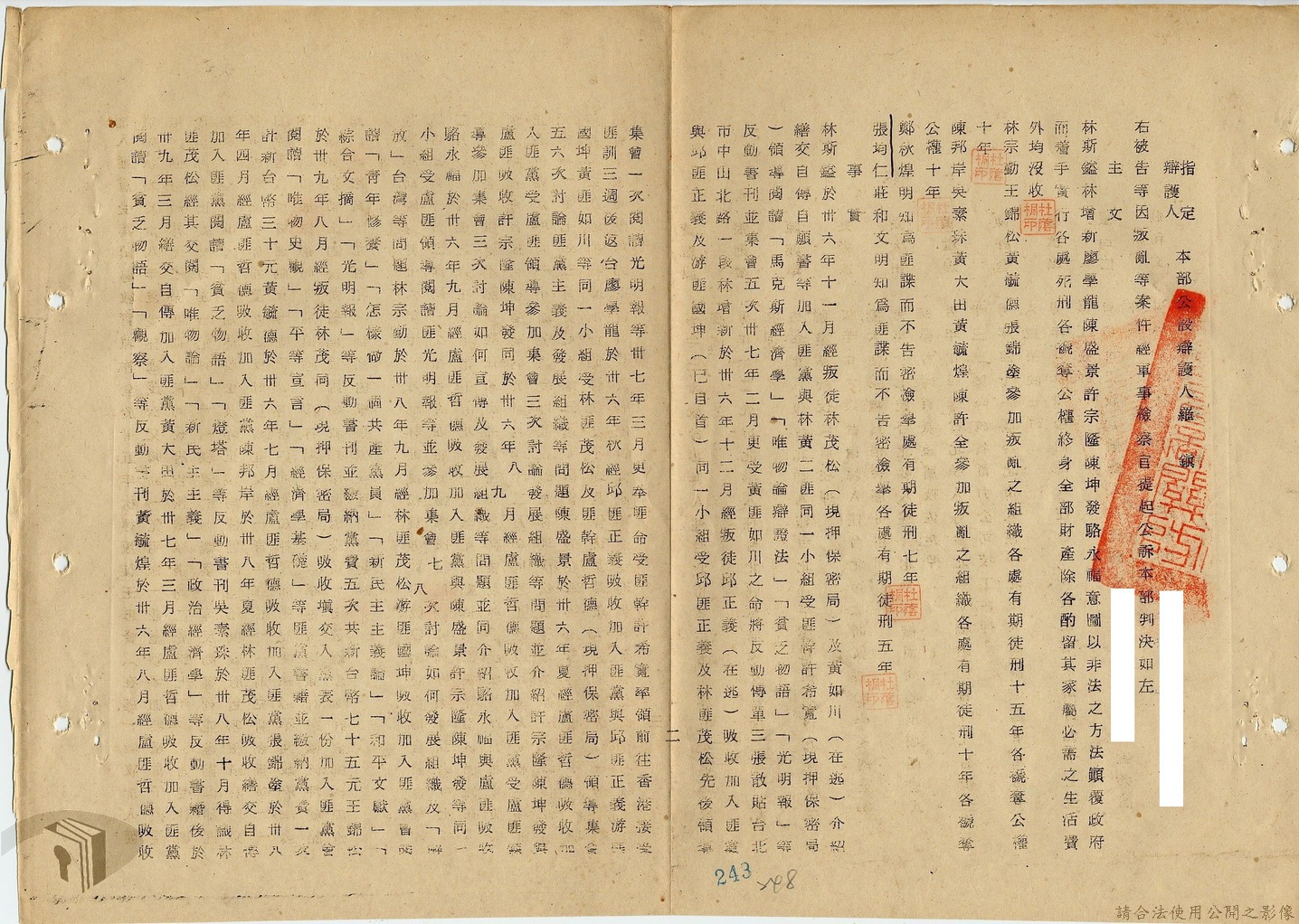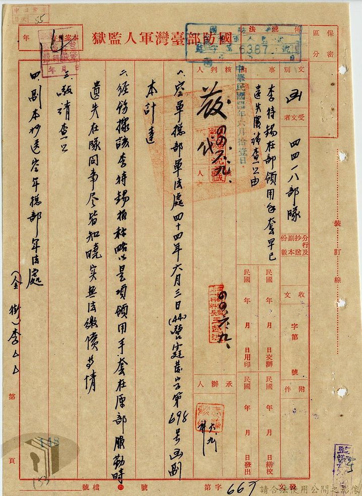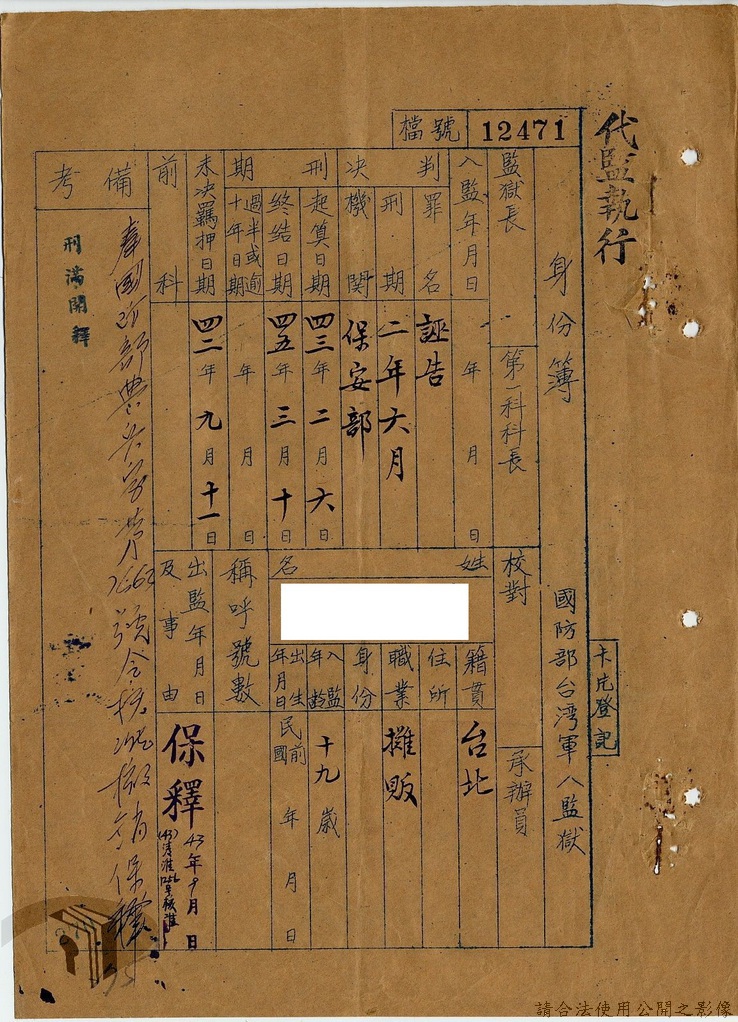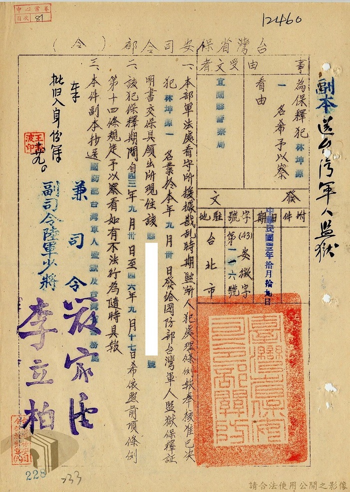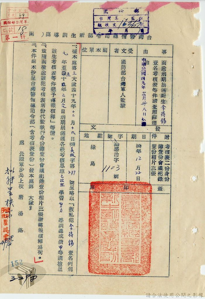 本案為40至55年間,有關民眾因涉嫌參與叛亂團體等案件,經臺灣省保安司令部等機關以叛亂罪判處有期徒刑並褫奪公權,以及後續發監執行與服刑期滿後之處置情形。全案包括臺灣省保安司令部等機關之判決書、執行書、新生考核表、證明書及受刑人出獄時填具之保證書等資料。
