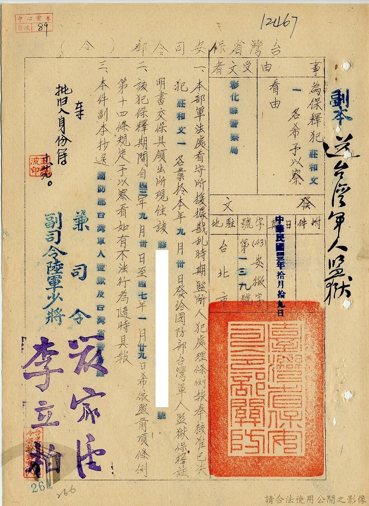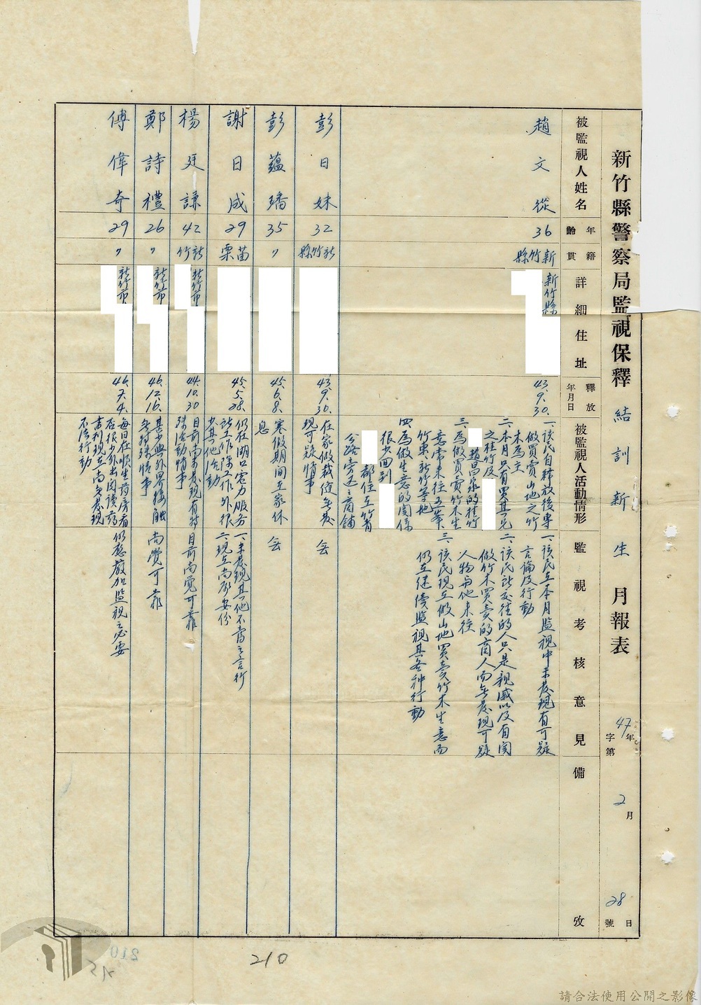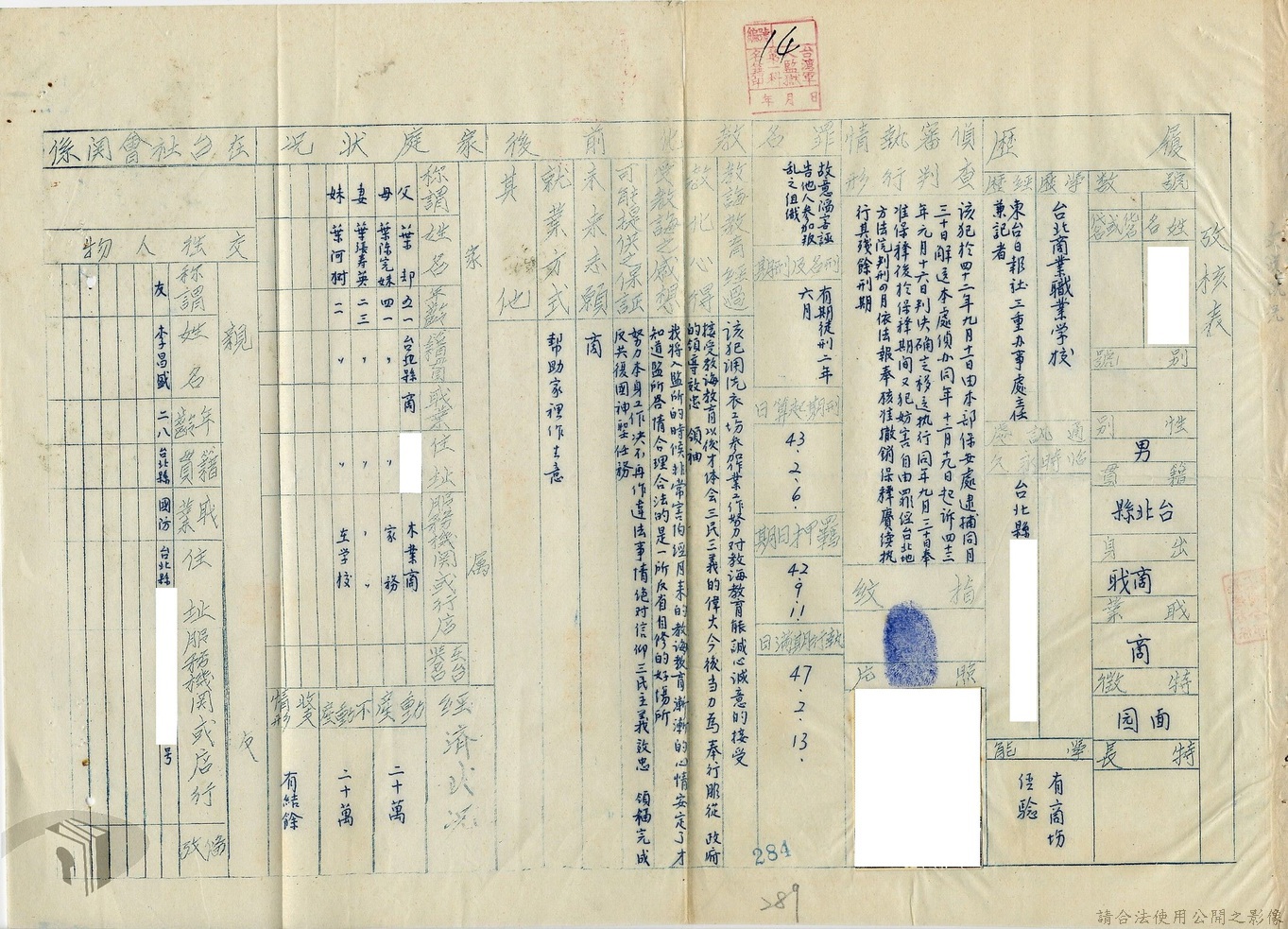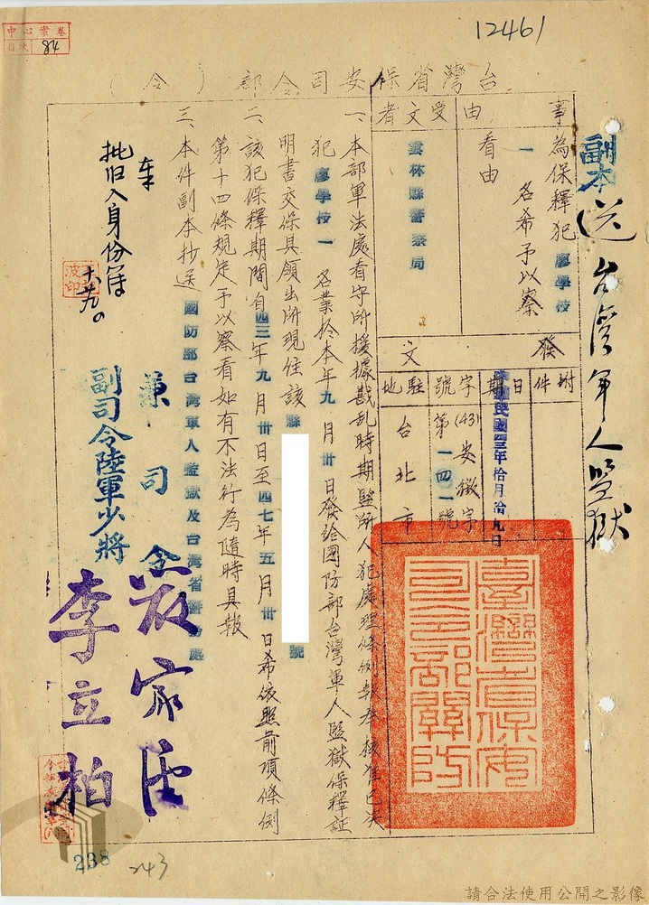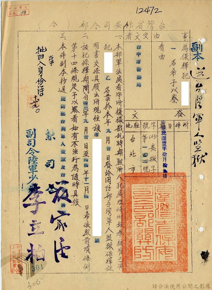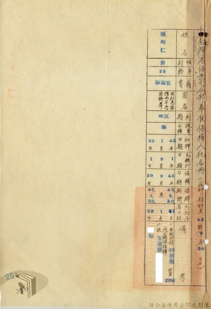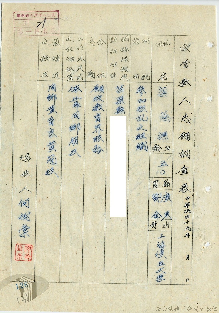 本案為40至55年間,有關民眾因涉嫌參與叛亂團體等案件,經臺灣省保安司令部等機關以叛亂罪判處有期徒刑並褫奪公權,以及後續發監執行與服刑期滿後之處置情形。全案包括臺灣省保安司令部等機關之判決書、執行書、新生考核表、證明書及受刑人出獄時填具之保證書等資料。