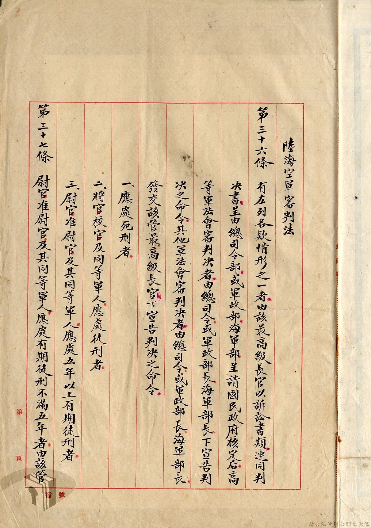 軍法審判授權代核範圍