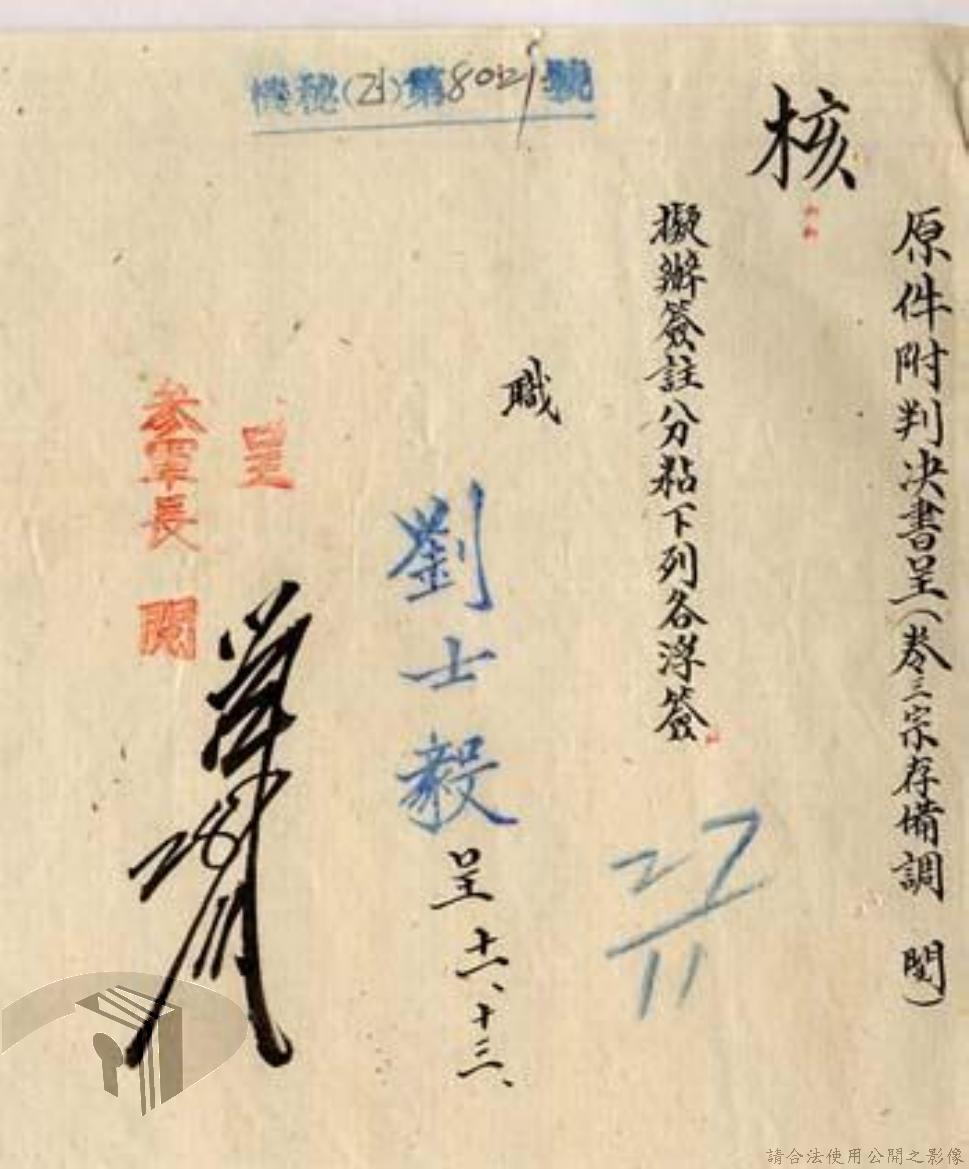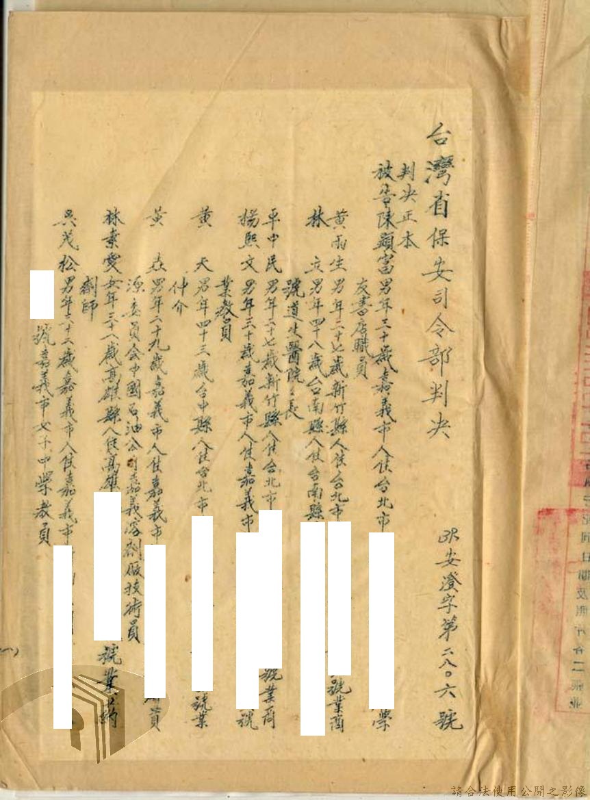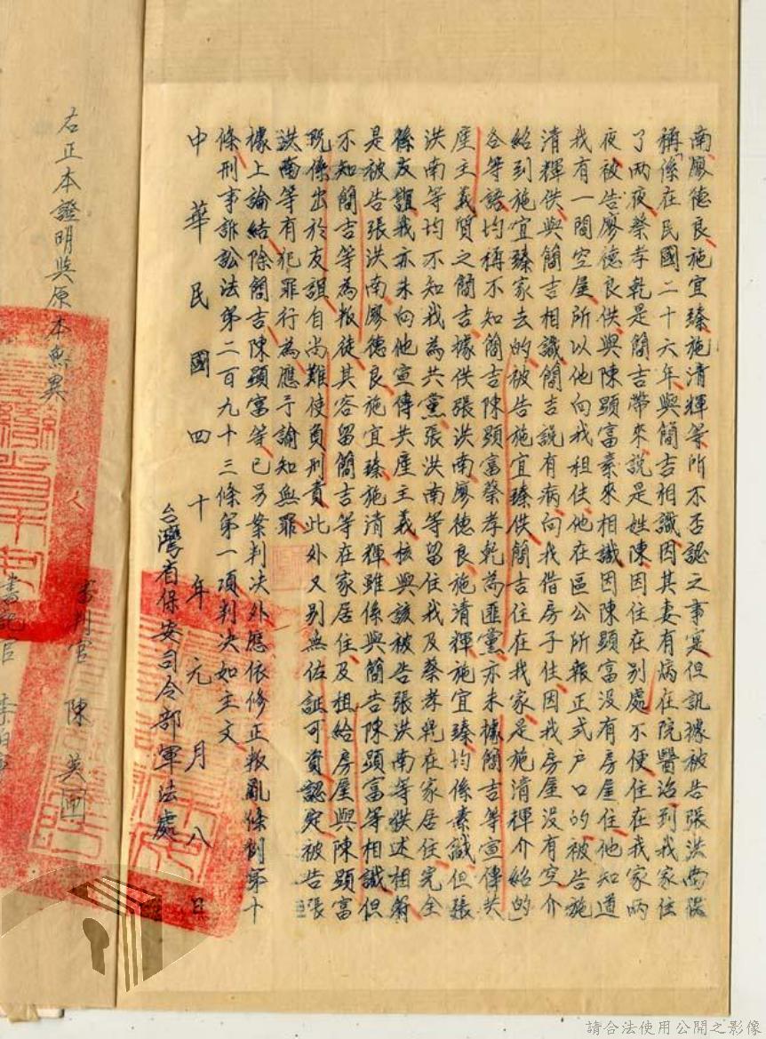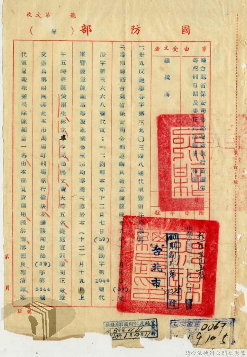 本案為39至43年間,臺灣省保安司令部審理民眾所涉案件,經保安司令部偵查終結予以起訴、判決,並將判決結果函送國防部審查,國防部回復意見或將此結果呈報總統,後國防部依總統指示變更部分被告刑度,並依判決結果通知相關單位執行刑罰手續,及處理當事人後續財產事宜。附判決書等文件資料。