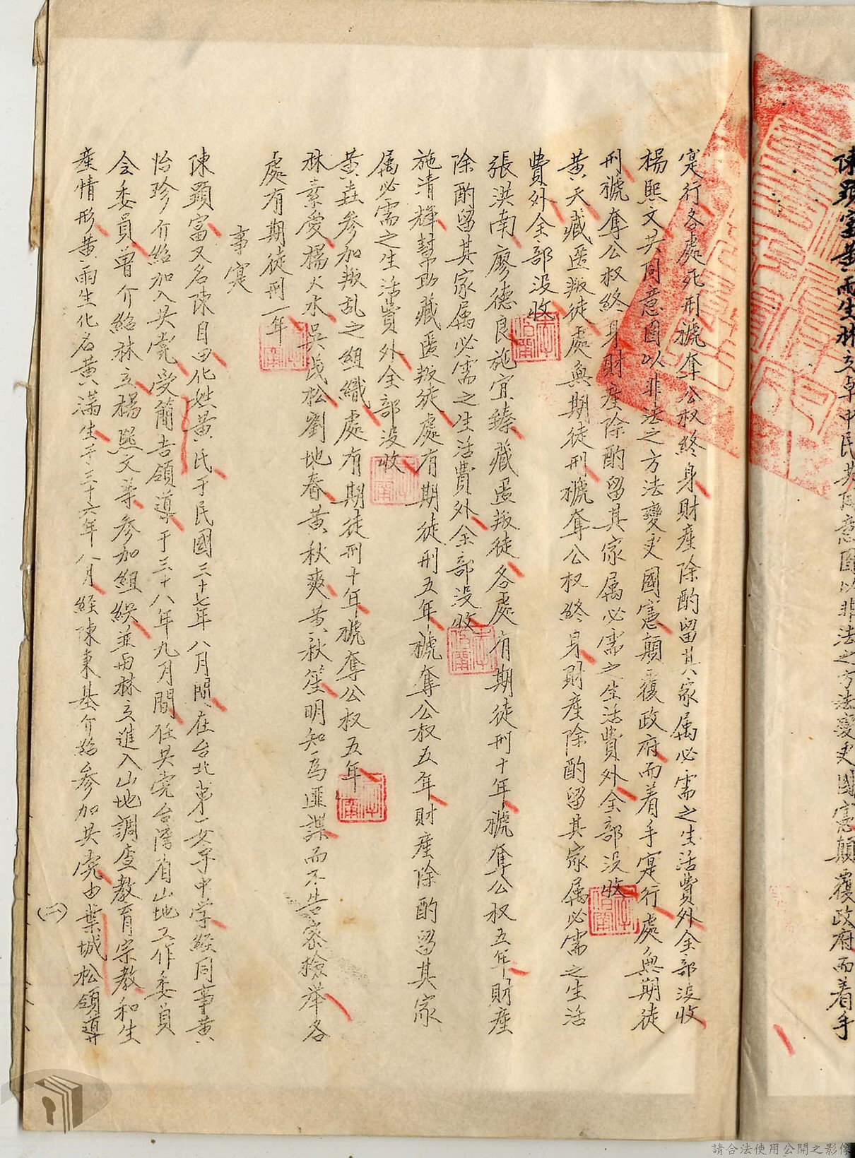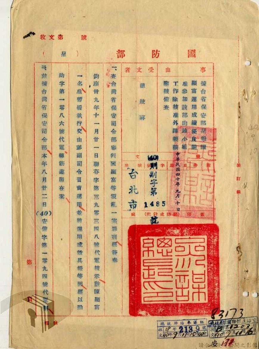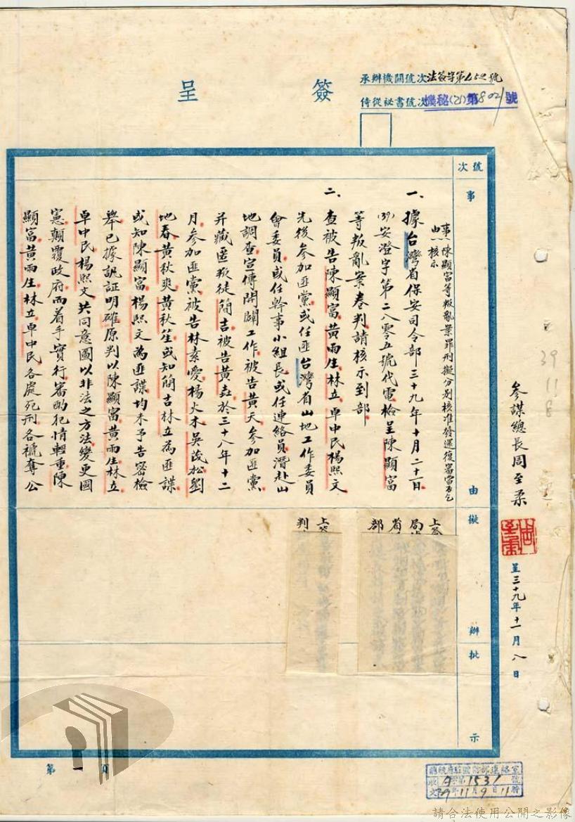 本案為39至43年間,臺灣省保安司令部審理民眾所涉案件,經保安司令部偵查終結予以起訴、判決,並將判決結果函送國防部審查,國防部回復意見或將此結果呈報總統,後國防部依總統指示變更部分被告刑度,並依判決結果通知相關單位執行刑罰手續,及處理當事人後續財產事宜。附判決書等文件資料。