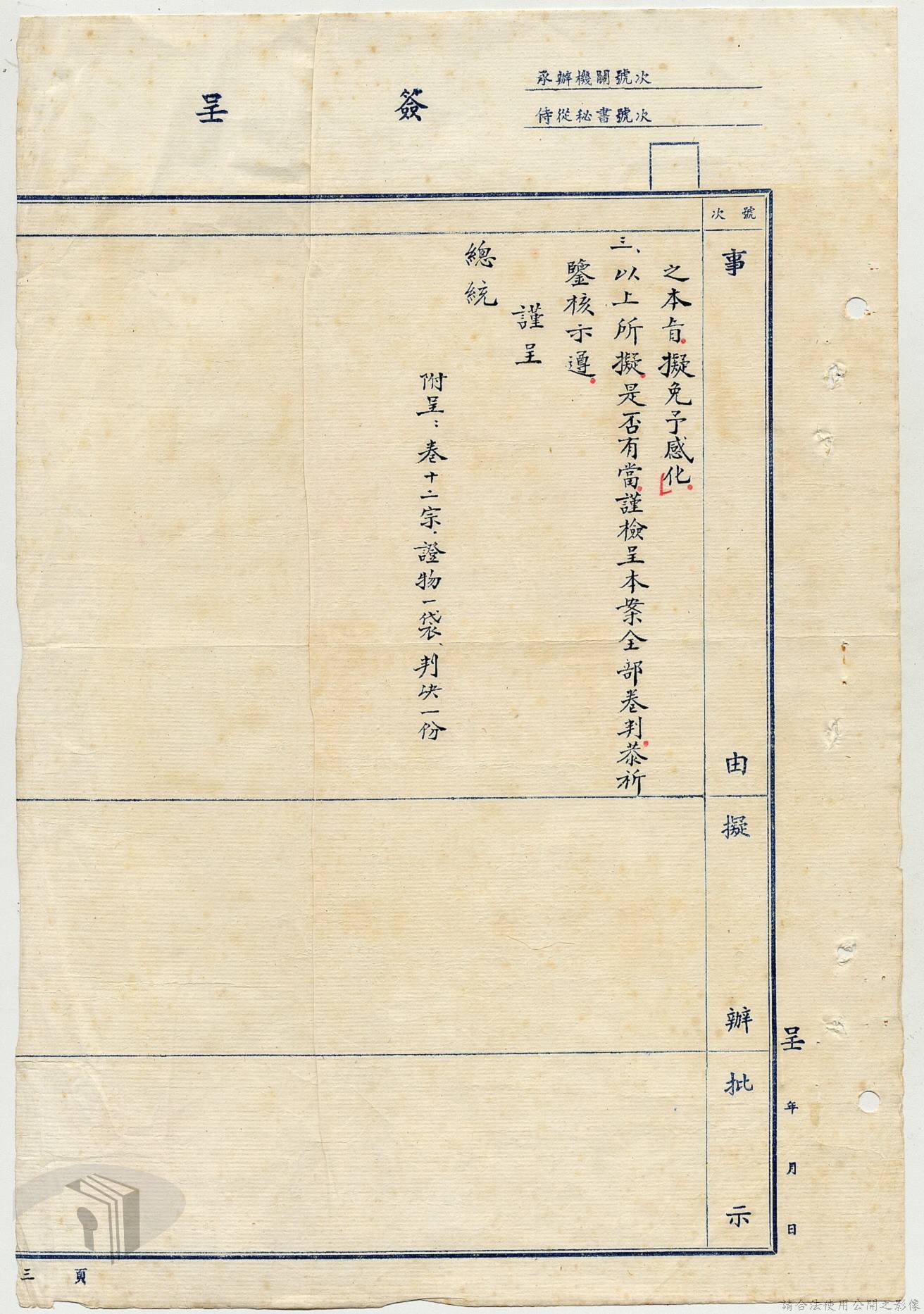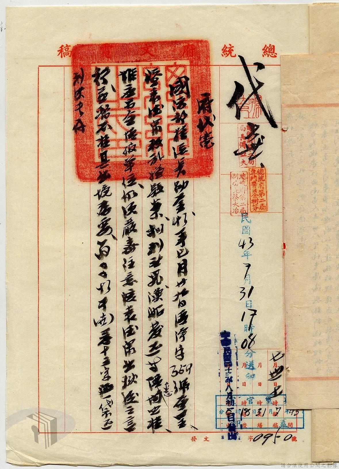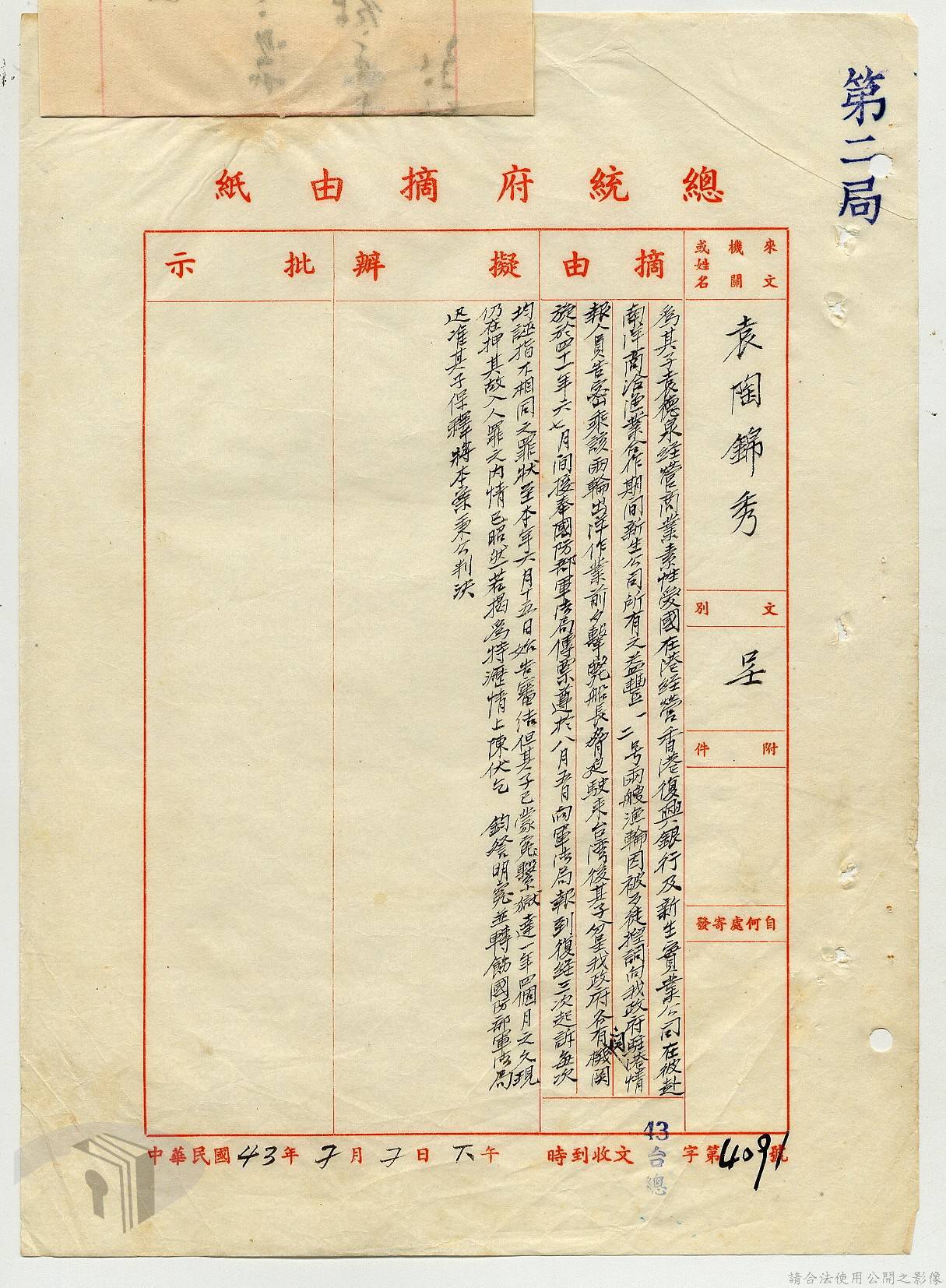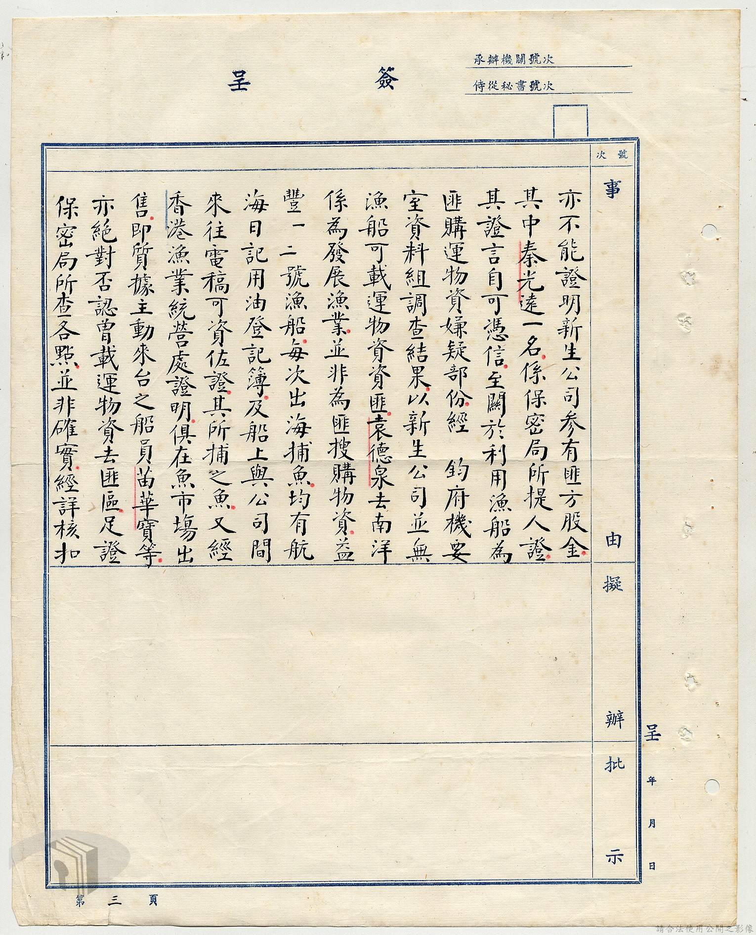 本案為43至53年間,國防部參謀總長因為香港新生實業有限公司總經理所涉案件,獲國防部判決無罪的關係,而將該案處理經過情形、判決結果及審理建議呈報總統,獲總統核示意見;後參謀總長為該員是否繼續控制其出境,而報請總統核示,並獲總統回復意見。