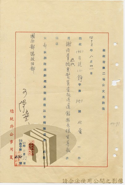本案為45至46年間,國防部據金門防衛司令部報稱第26師77團3營9連哨兵因發現海上有身分不名人士欲游泳投共,經勸阻不聽而開槍將之擊斃,後發現為第19師工兵營中尉人事官,而向總統呈報案情概要、其身分背景及發生原因、處理經過及相關責任人員懲處情形,獲總統同意及指示意見。