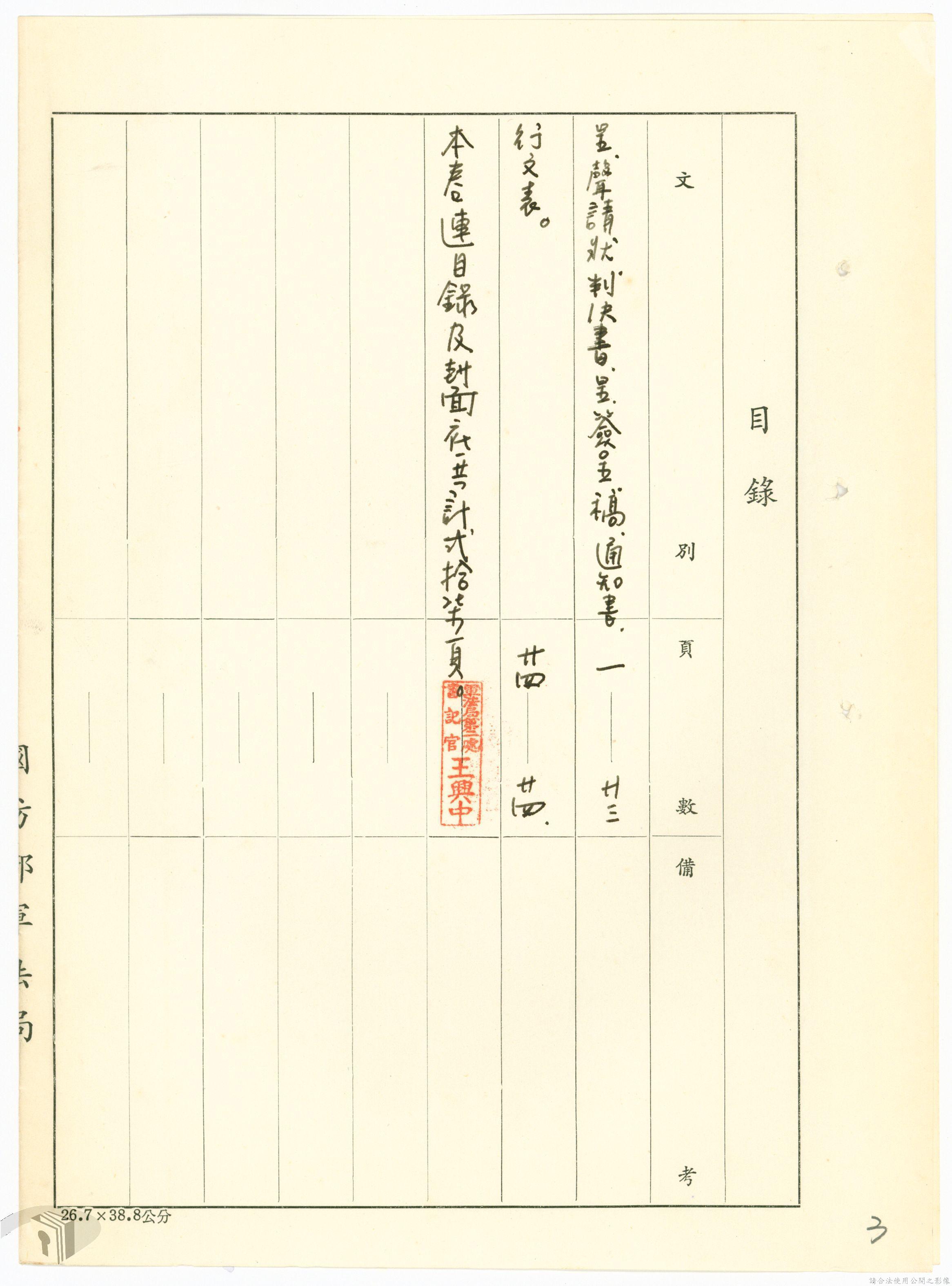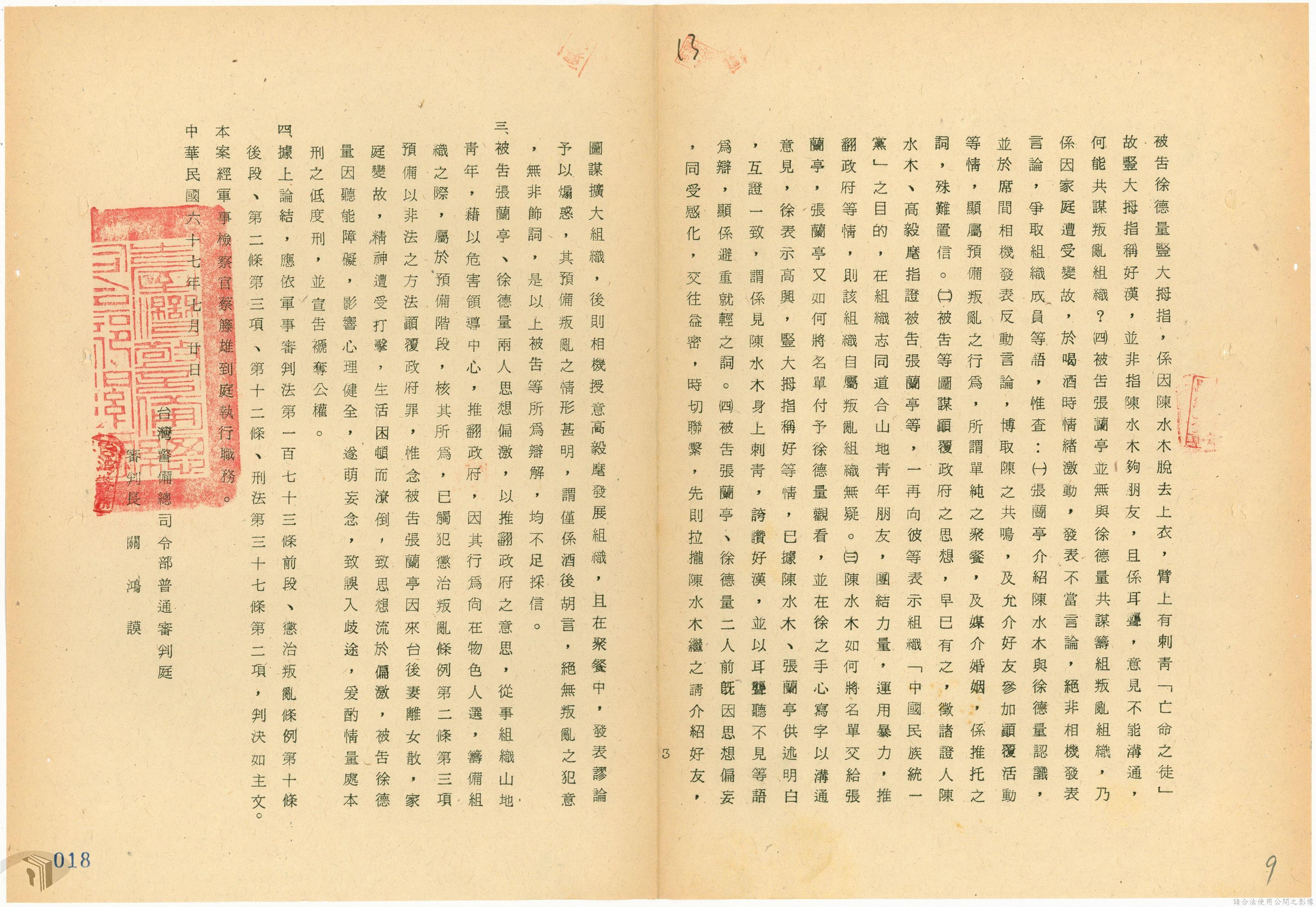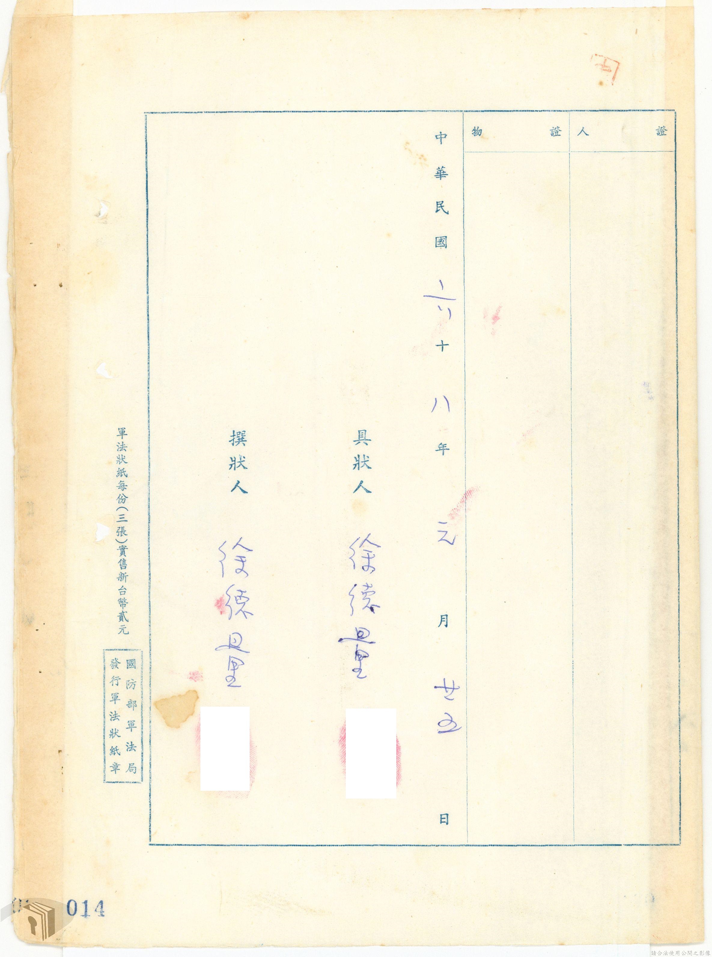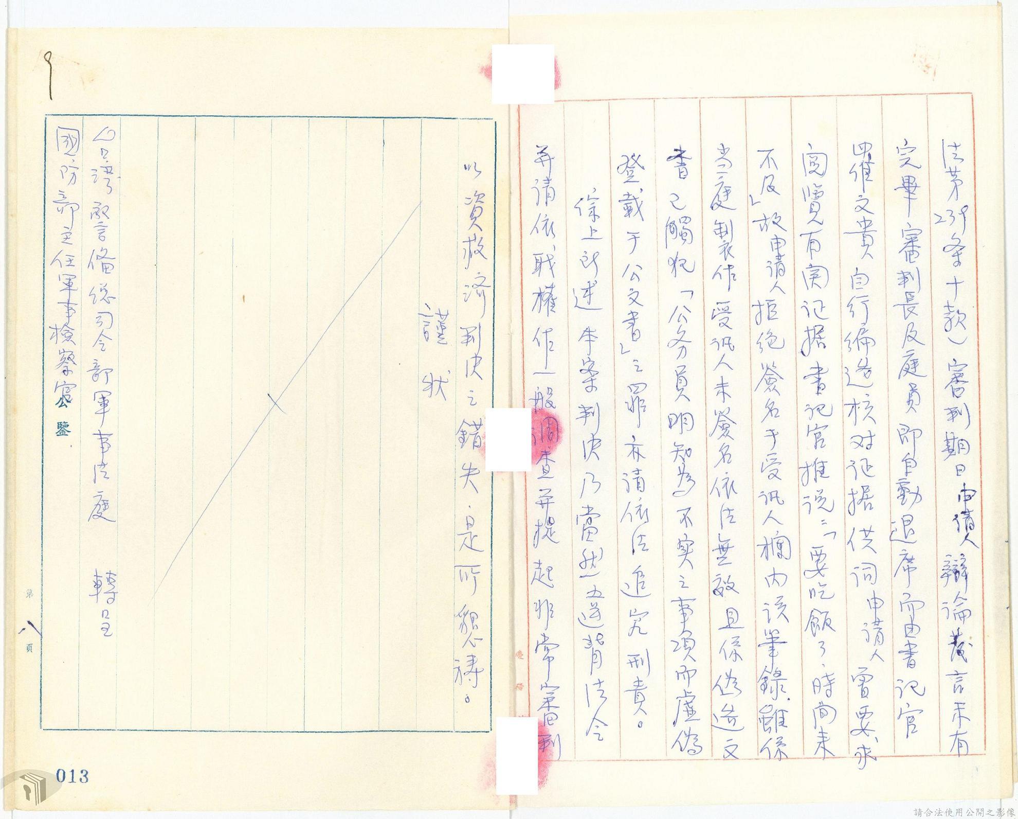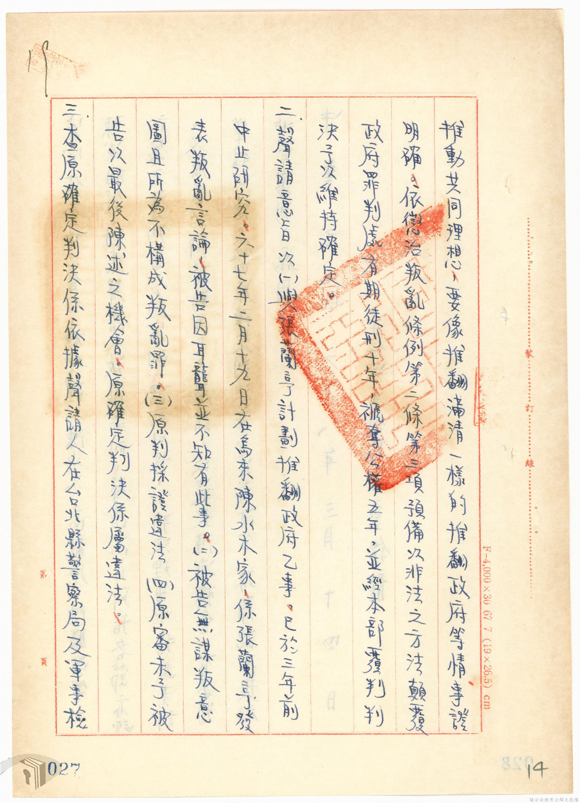 本案為68年間,工人因案經臺灣警備總司令部審訊判決後,被告不服原判決聲請非常審判,臺灣警備總司令部轉陳被告聲請非常審判案給國防部,經國防部予以駁回。附臺灣警備總司令部判決書、軍法聲請提起非常審判狀、國防部主任軍事檢察官通知書等文件資料。