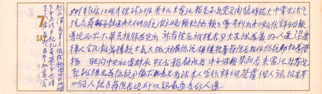 此為吳三連寫於 1978 年 1 月 7 日之日記。吳三連於上午透過吳豐山來電得知國民黨召開臨時擴大中常會,會中決定提名蔣經國競選第六任總統。吳三連經營之《自立晚報》以海報報導,並於報紙上第二版刊載詳細報導,內容較競爭對手《大華晚報》、《民族晚報》更為詳實。晚間吳三連接受中央社、聯合報與中國時報三社電訪蔣經國院長受提名一事,吳表示蔣為當時出任總統之最佳人選。   1978 年中華民國總統選舉時,當時作為行政院院長的蔣經國不僅為蔣介石之子、為其欽定接班人,且更兼任中國國民黨主席。承接蔣介石逝世後餘下任期之嚴家淦雖任總統,然實則權力已被架空。嚴家淦的謙讓、蔣經國的同額競選,在此背景之下,實屬當然。