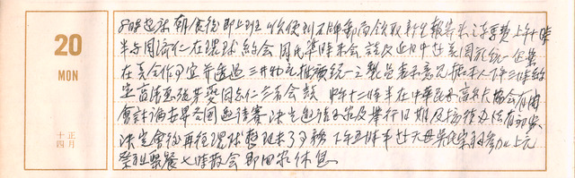 此為吳三連寫於 1978 年 2 月 20 日之日記。上午吳三連領取新生報之車馬費後,即至環球水泥與周濟仁會面,會面中言及赴美之事。吳氏對統一企業在美合作事宜,以及三井物產推廣統一製品等表示意見,並約定與高清愿、張芳夔、同志仁等三者於午後會談。中午出席中華民國高爾夫協會會議,處理世界各國邀請賽一事。   上文提及之高清愿(1929 - 2016),出身臺南縣學甲,為臺南幫重要成員。出身貧寒, 14 歲自國語學校畢業後便至吳修齊與吳尊賢所經營的新和興布行當學徒。高氏的工作態度上進認真,深受吳氏兄弟的賞識。隨著新和興的解散,高清愿和幾位舊日同事,組成「德興布行」,合夥經營布料批發業務。 1955 年南紡成立,在吳尊賢的大力推荐下,高清愿年僅 26 歲便出任了首任南紡業務經理。於南紡期間對吳三連與吳尊賢兄弟學習甚多,奠基了其日後的事業經營理念。1967年,高清愿出面籌畫募股,並延請吳修齊先生擔任董事長,「統一企業股份有限公司」正式成立,主要營運麵粉與飼料的生產,後發展多角化經營,除食品工業外更觸及物流、網路、證券、建設、生醫等各大領域,成為當今台南幫的龍頭企業。
