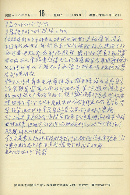 吳三連1979年(民國68年)3月16日日記