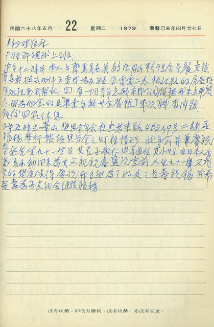 吳三連1979年(民國68年)5月22日日記