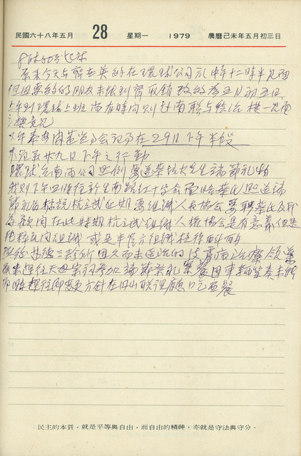 吳三連1979年(民國68年)5月28日日記