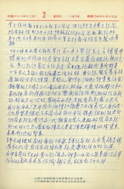 吳三連1979年(民國68年)12月2日日記