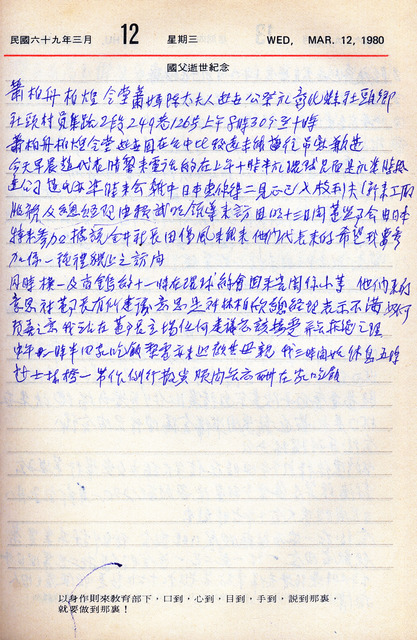吳三連1980年(民國69年)3月12日日記