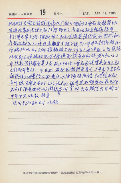 西曆日期:1980/4/19/他類日期:民國69年4月19日