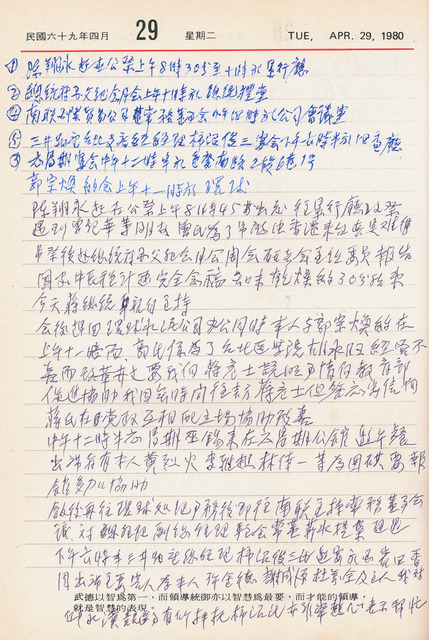 吳三連1980年(民國69年)4月29日日記