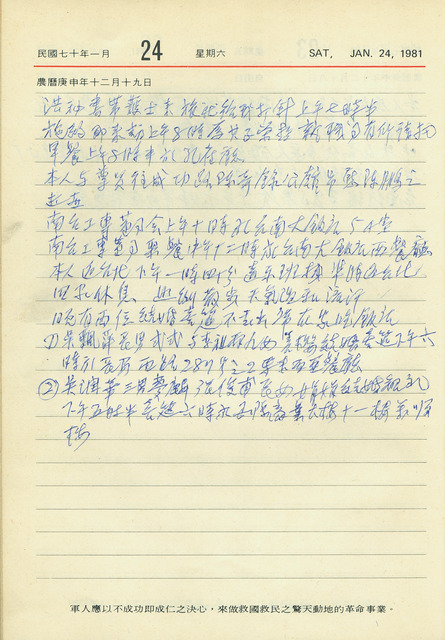 西曆日期:1981/1/24/他類日期:民國70年1月24日