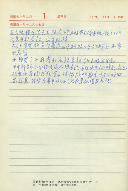 西曆日期:1981/2/1/他類日期:民國70年2月1日