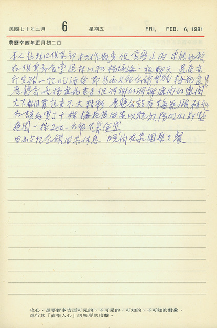 西曆日期:1981/2/6/他類日期:民國70年2月6日