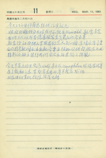 西曆日期:1981/3/11/他類日期:民國70年3月11日
