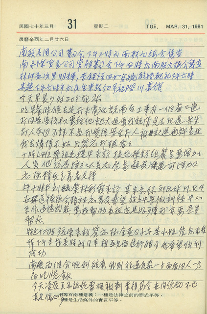西曆日期:1981/3/31/他類日期:民國70年3月31日