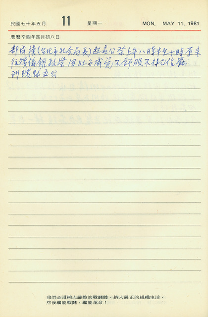 西曆日期:1981/5/11/他類日期:民國70年5月11日