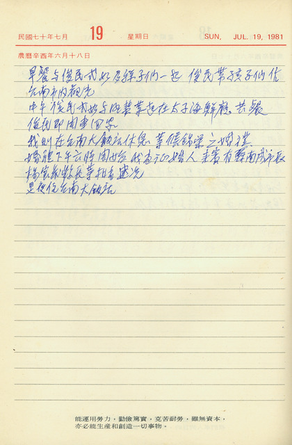 西曆日期:1981/7/19/他類日期:民國70年7月19日