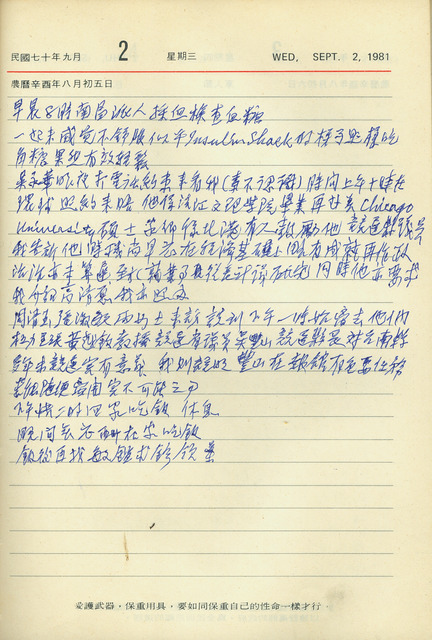 西曆日期:1981/9/2/他類日期:民國70年9月2日