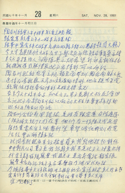 西曆日期:1981/11/28/他類日期:民國70年11月28日