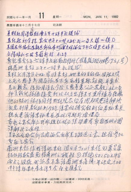 西曆日期:1982/1/11/他類日期:民國71年1月11日