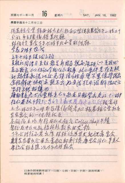 吳三連1982年(民國71年)1月16日日記