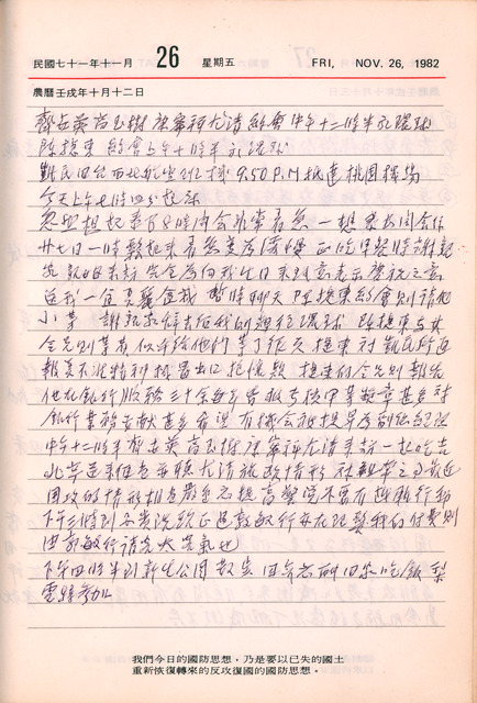 西曆日期:1982/11/26/他類日期:民國71年11月26日