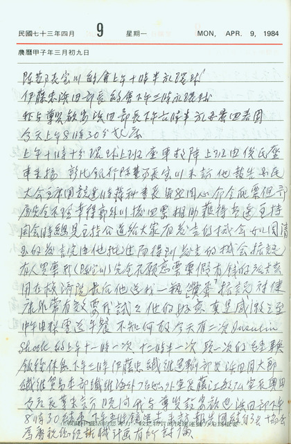 吳三連1984年(民國73年)4月9日日記