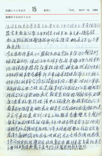 西曆日期:1984/5/15/他類日期:民國73年5月15日