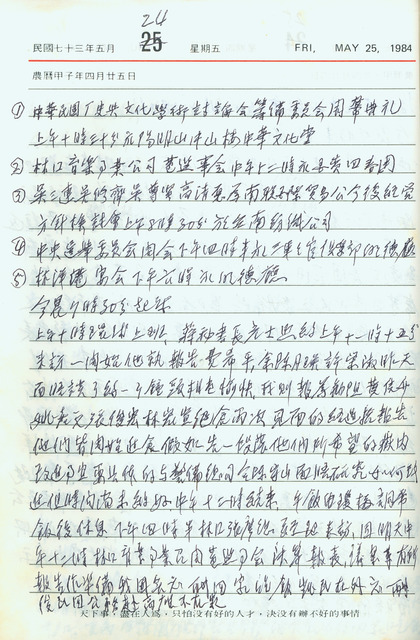 吳三連1984年(民國73年)5月24日日記