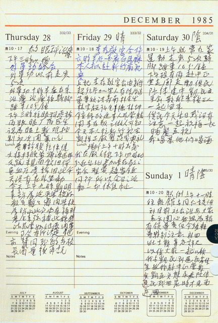 此係吳三連寫於1985年11月29日日記,上午,赴新竹視察凱得工廠落成典禮,在工廠休息後,趕回台北,參加李存敬在國賓飯店舉行的宴會。   日記中提到的李存敬出身高雄,台南師範學校畢業後,投身教育界。1961年,投入第五屆高雄市議員選舉,並當選,由此開啟他的政治生涯。1968年,當選台灣省第四屆省議員,同時擔任省議會教育委員會召集人及黨團書記,1973年當選監察委員,1987年受延攬為省府建設廳長,並在任內退休。又,凱得公司由的三子凱民成立,長子逸民擔任總經理。公司成立之初,交通銀行亦參與投資,公司以製作硬碟機運盤的DISK為主要業務,該技術自美國帶回,公司在新竹科學園區設廠。這天上午先赴新竹參加落成典禮,後又趕回台北出席李存敬主辦的宴會,出席者有陳啟清、黃尊秋、林金生、洪壽南、林坤鐘等人,可以看見吳三連在政、商界的人際網絡。